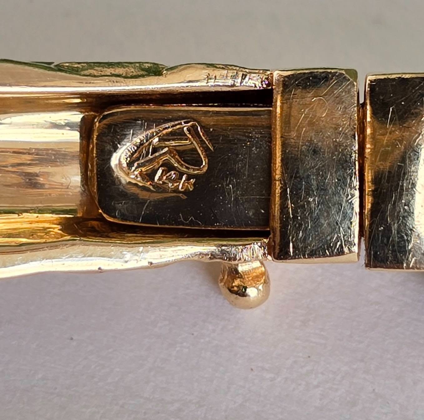 Prezintă marcaj "14K" pentru puritate aur și marcaj de atelier.