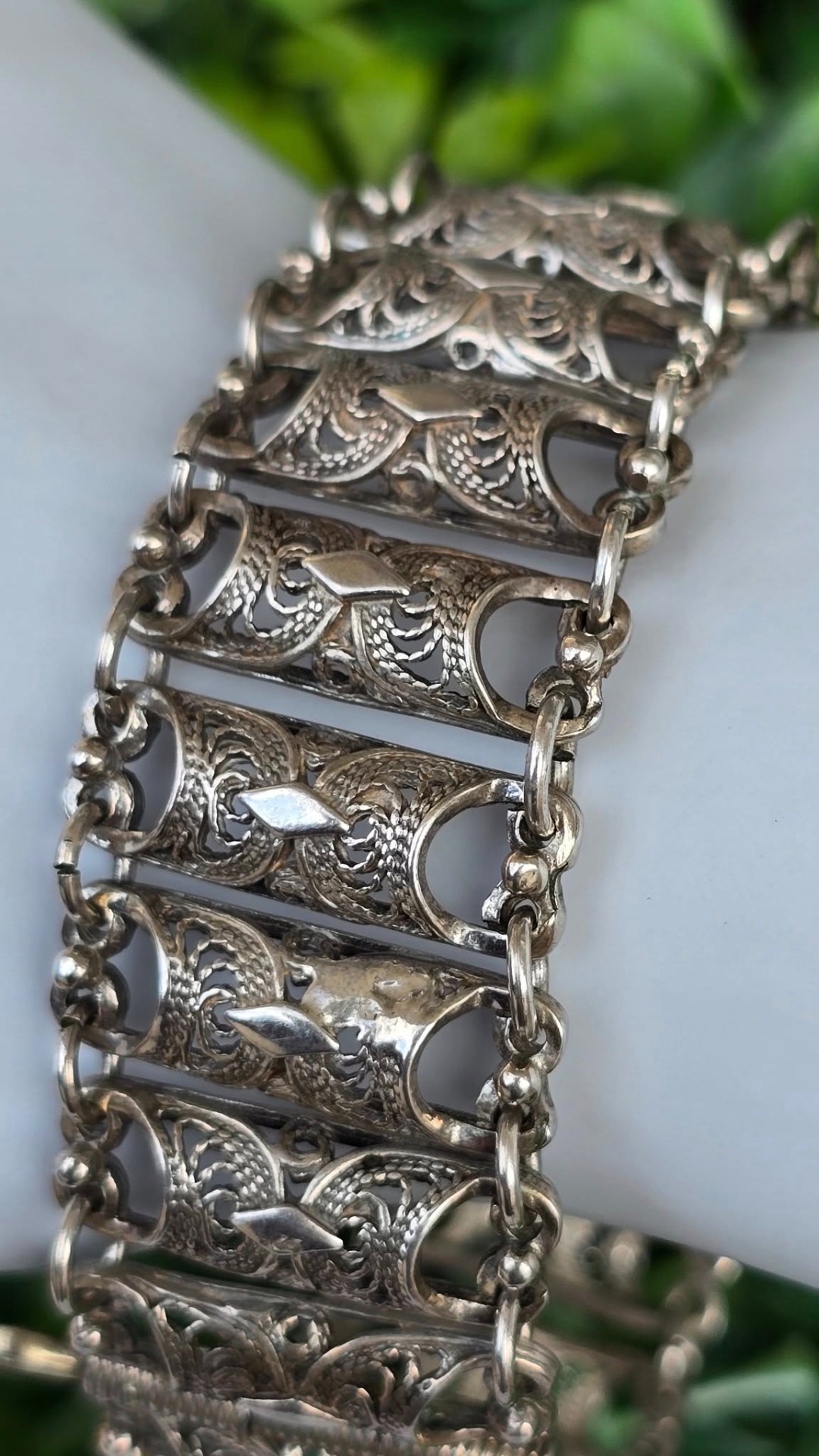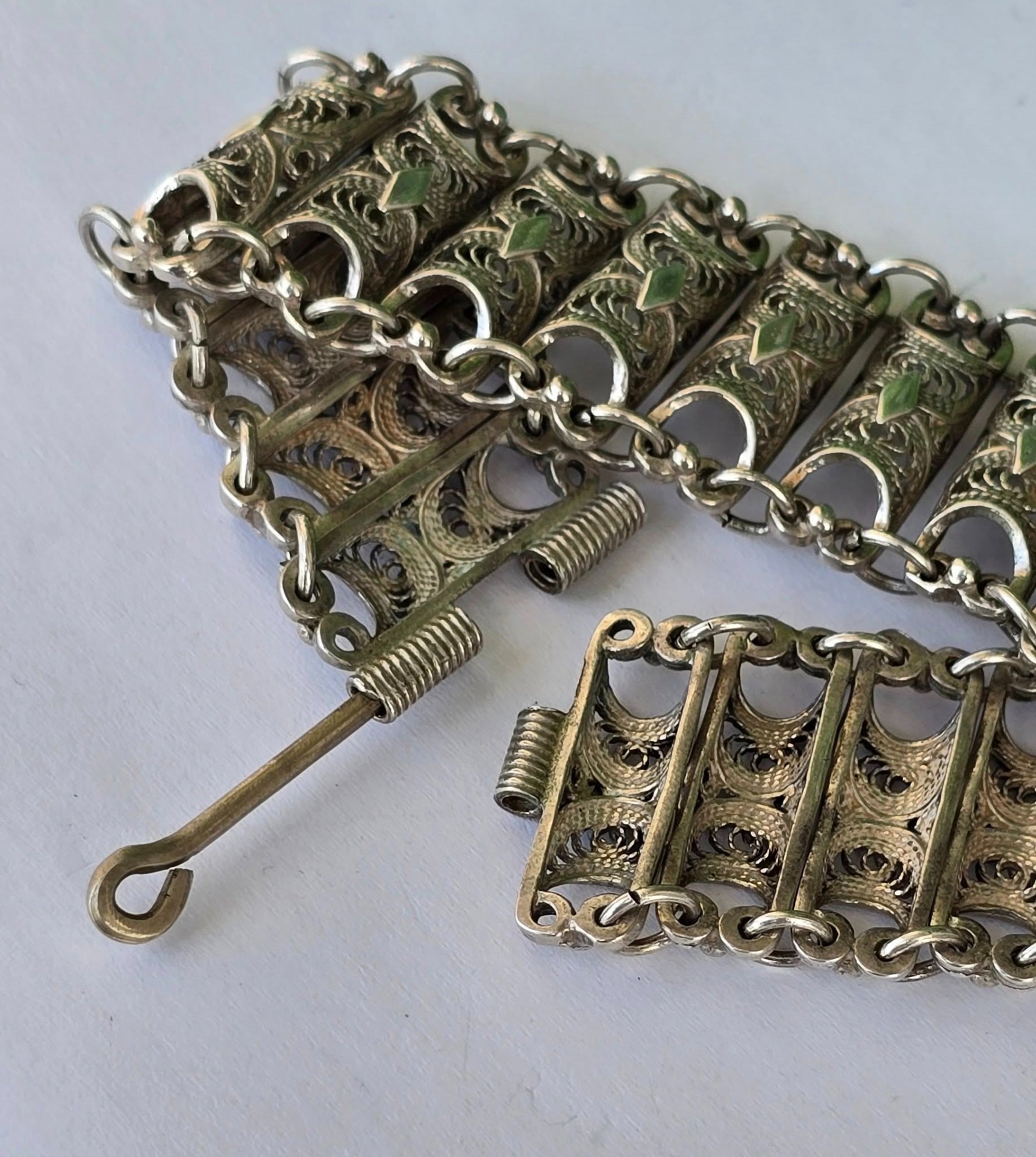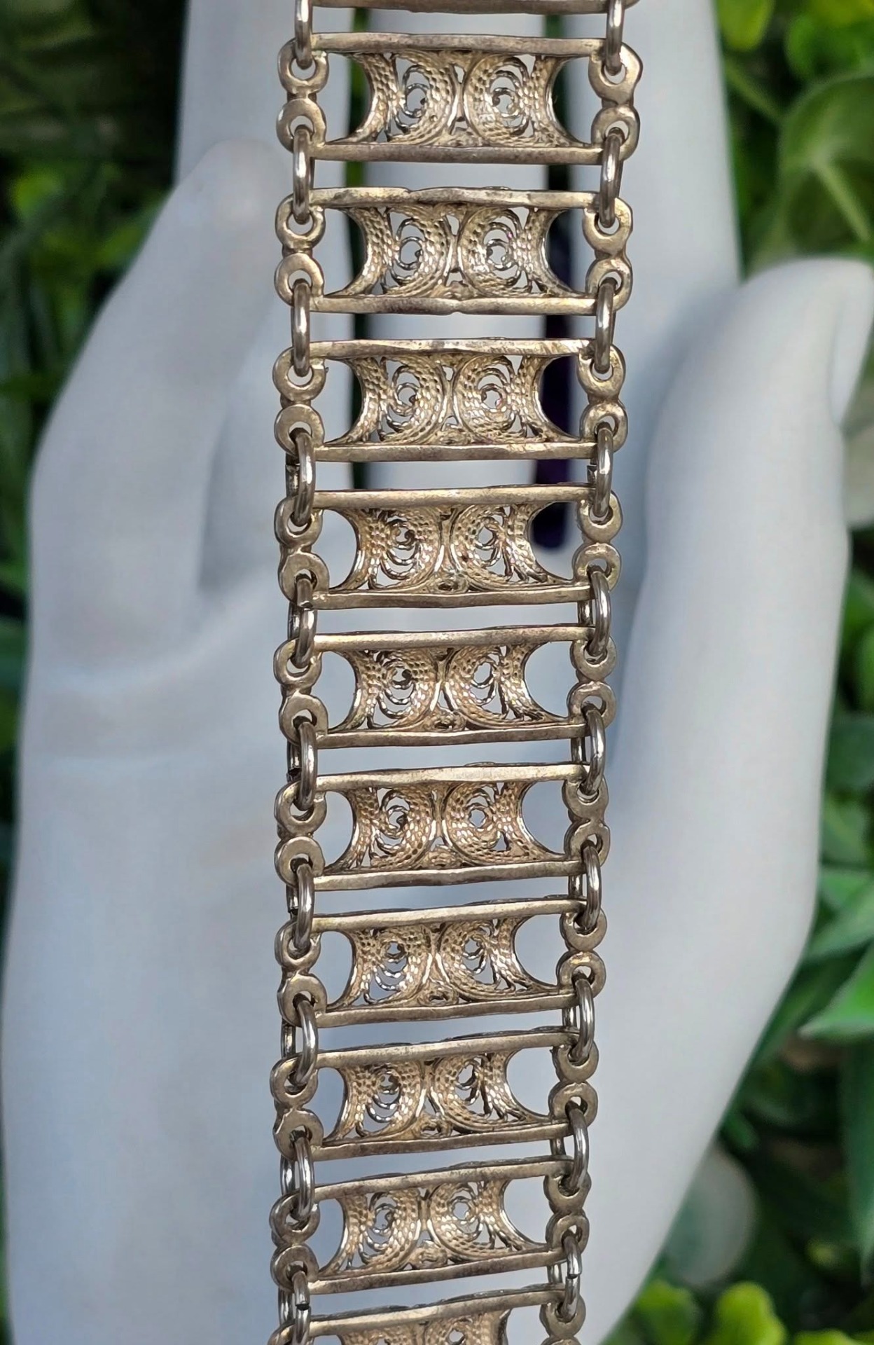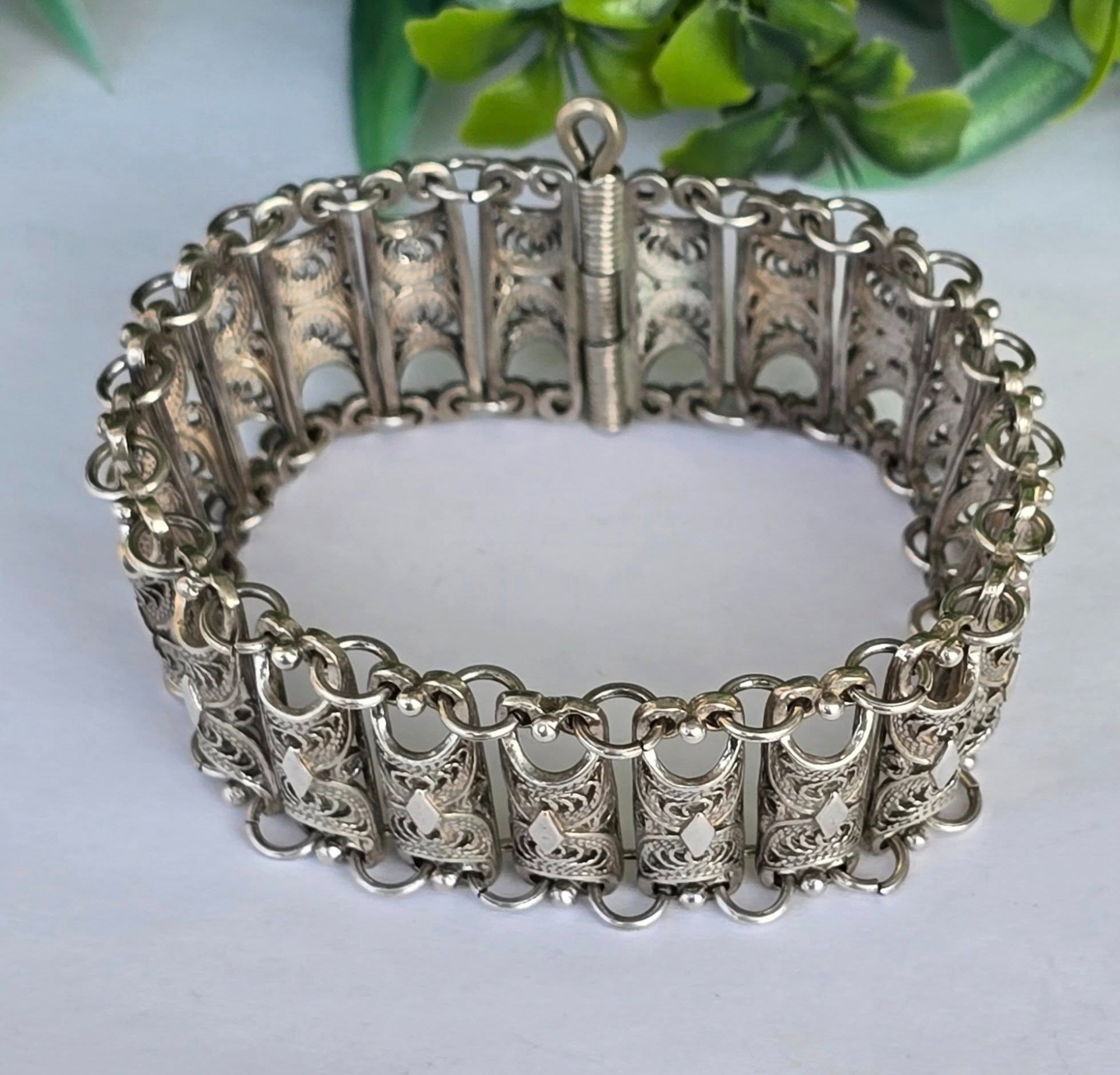 Brățară veche spectaculoasă, din argint, manufactură excepțională în filigran.