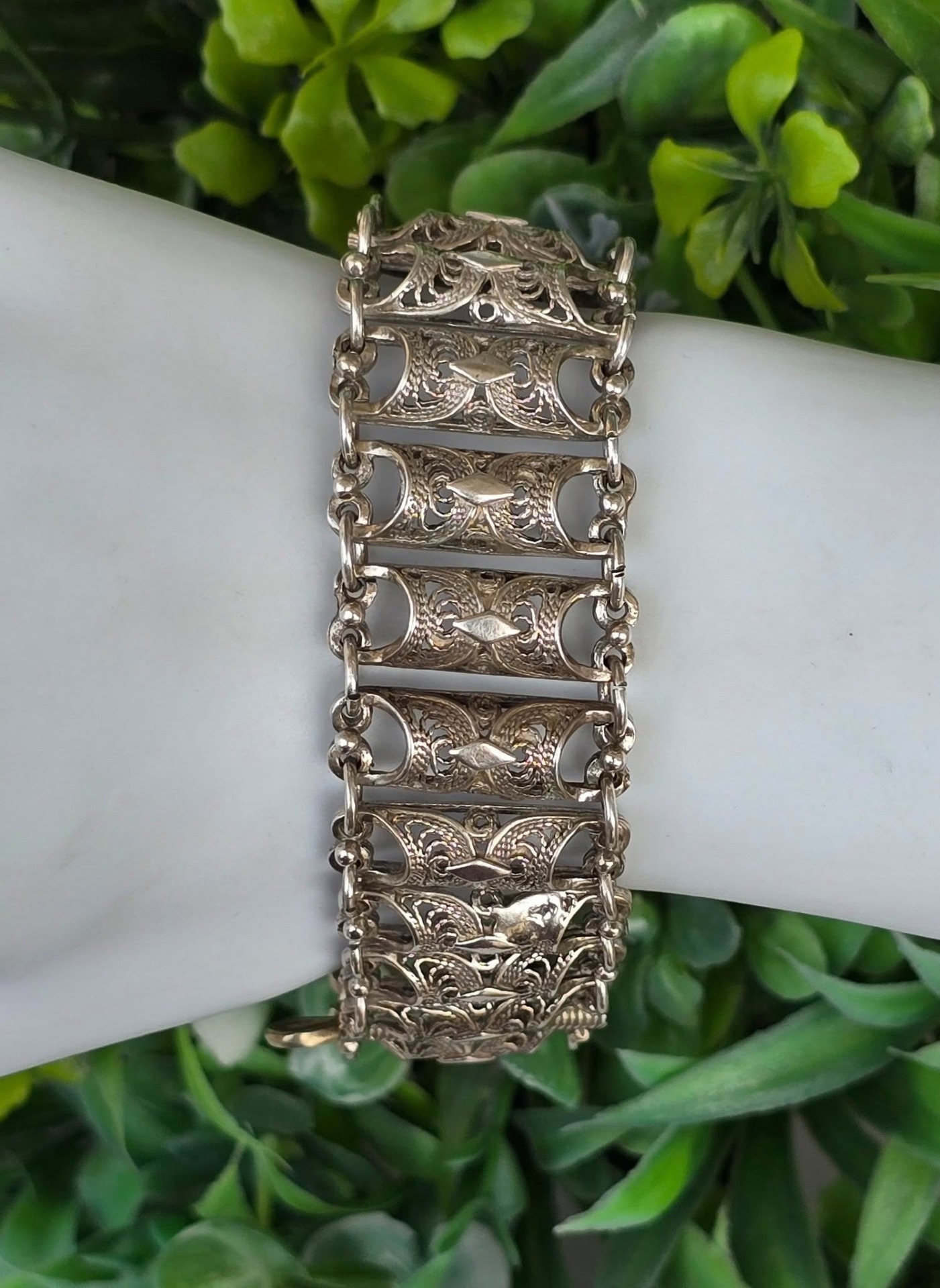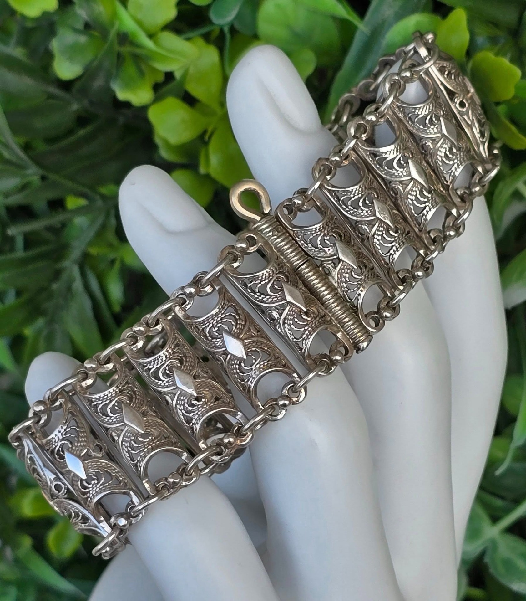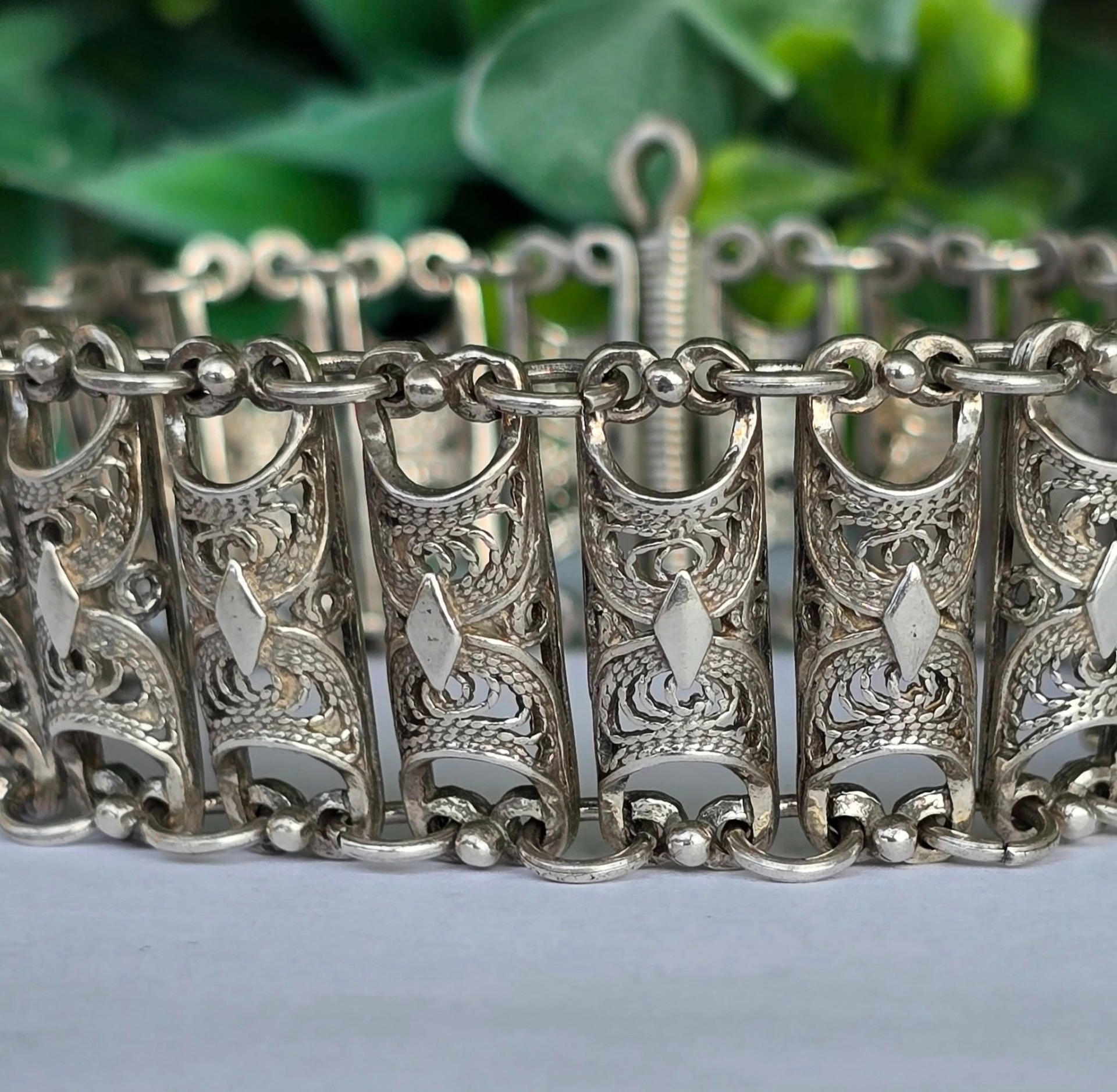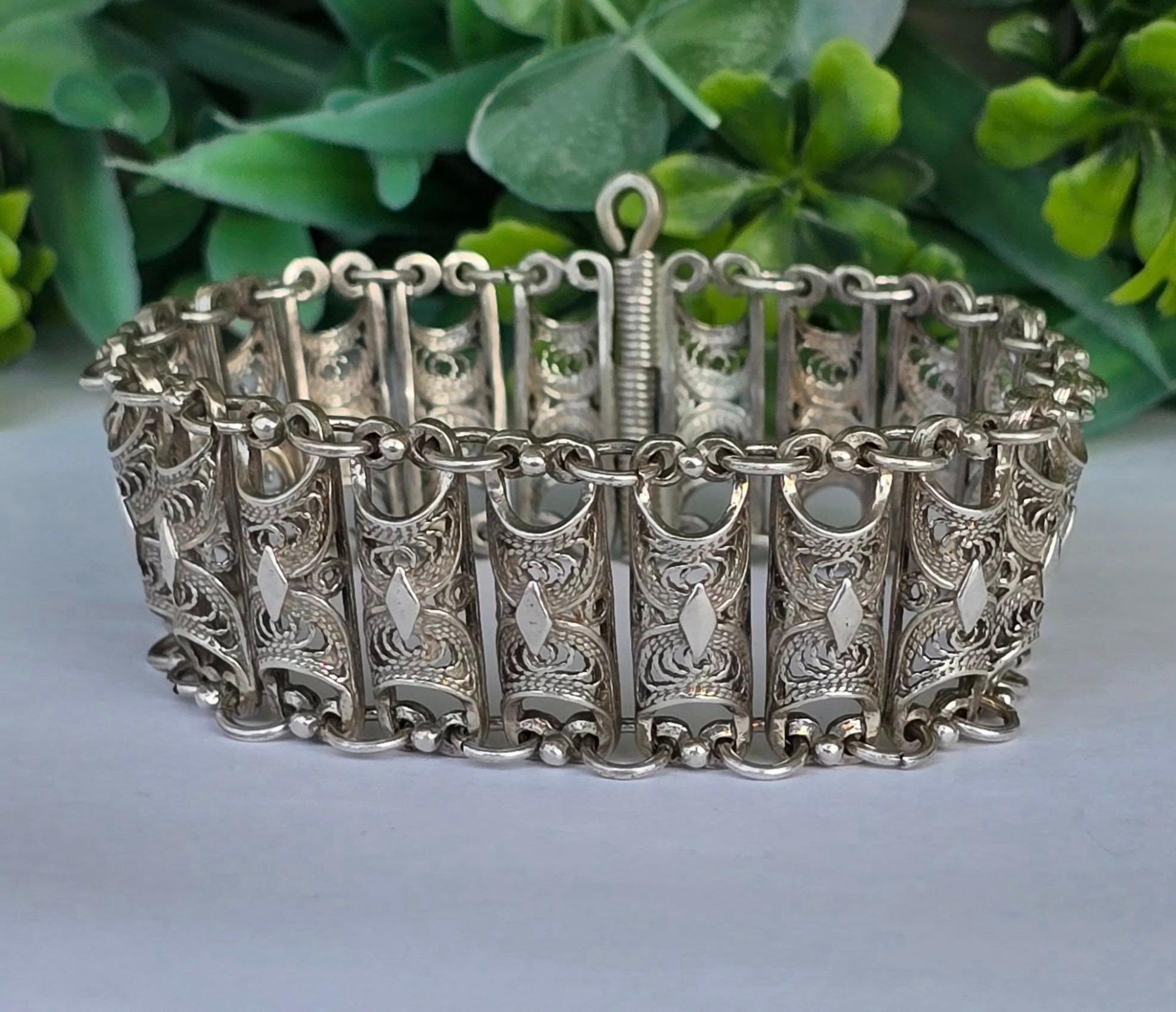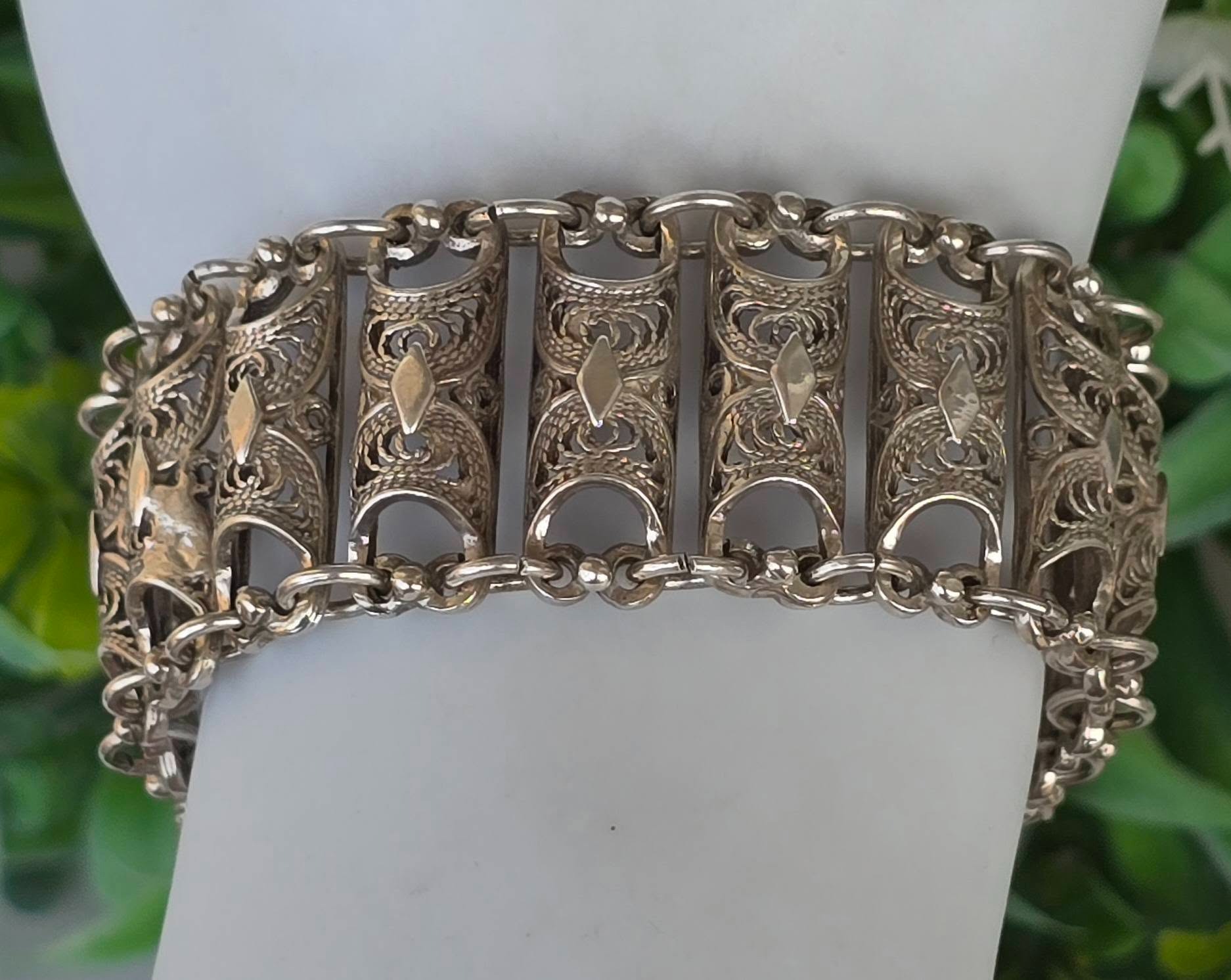 Brățară veche spectaculoasă, din argint, manufactură excepțională în filigran.