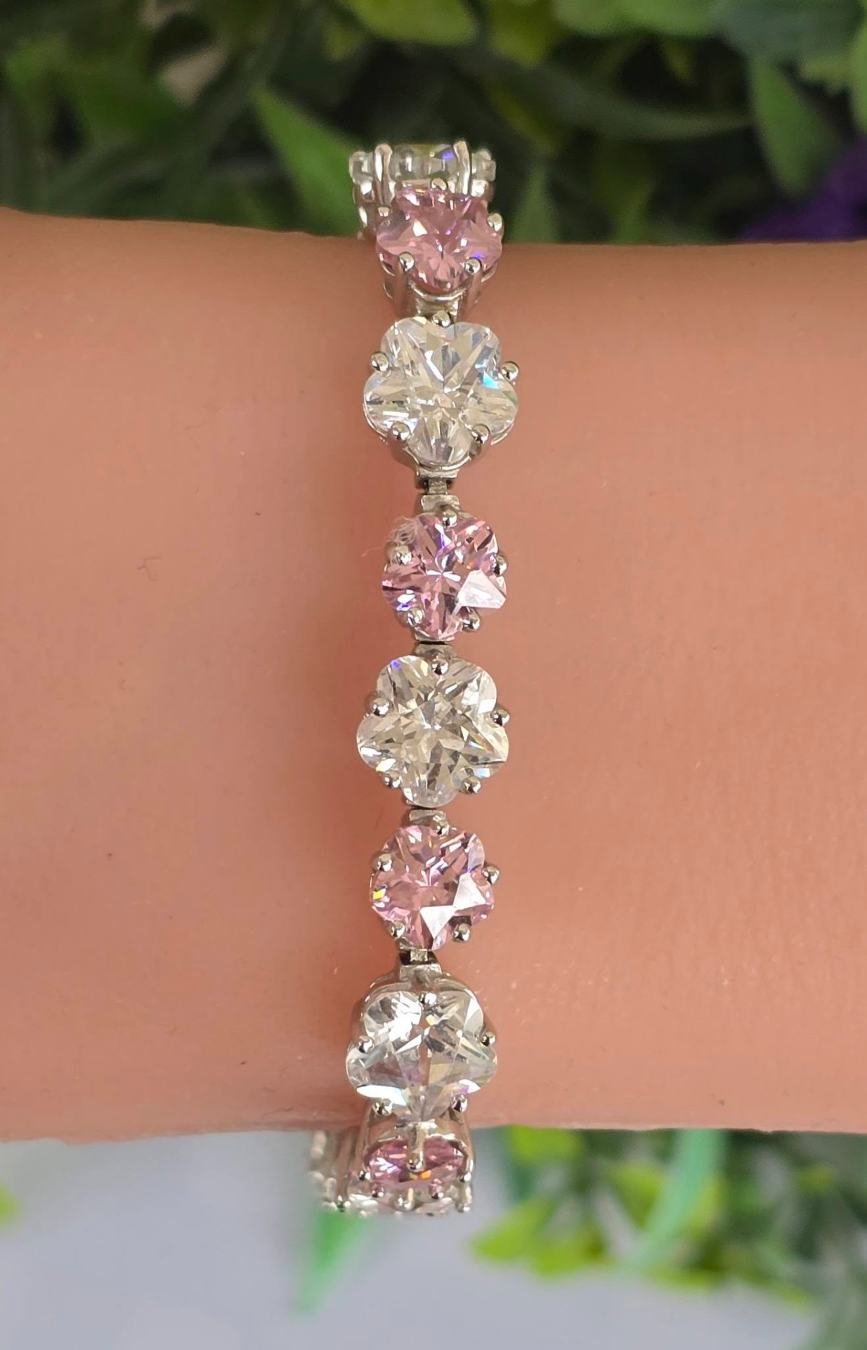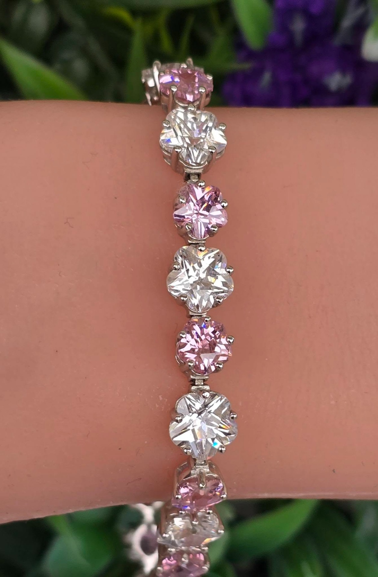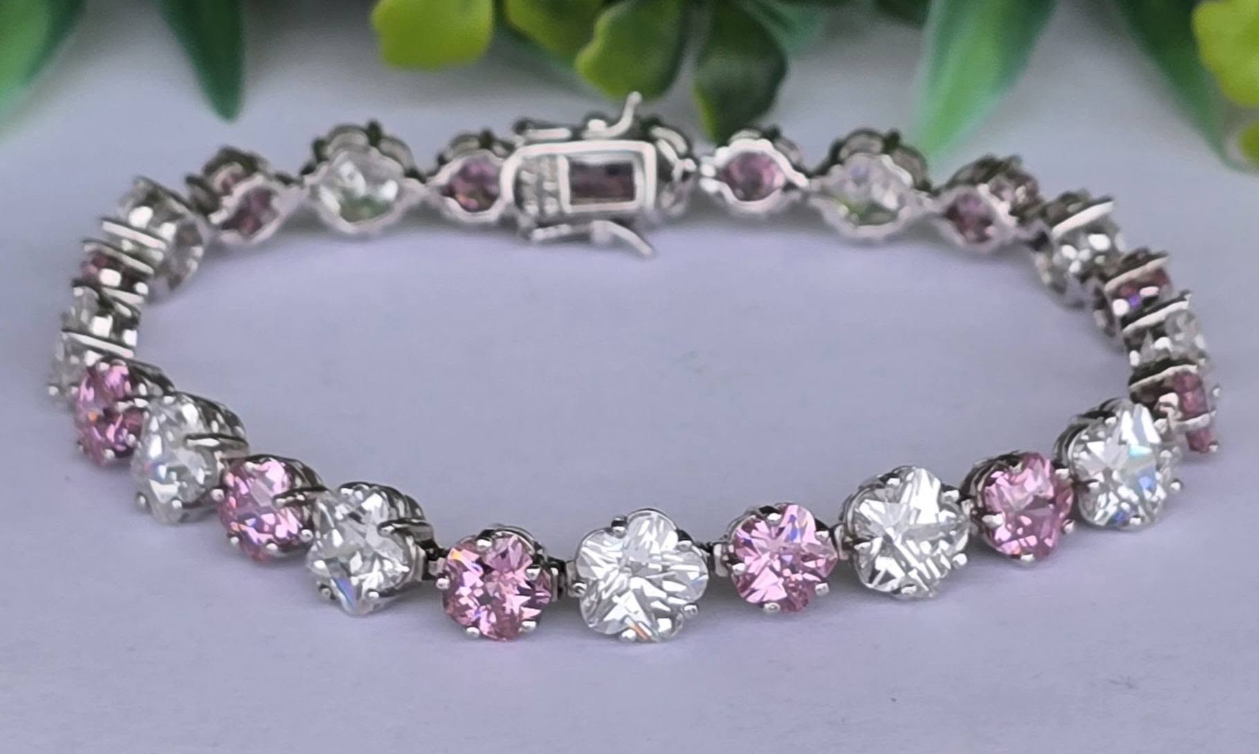Brățară veche strălucitoare, din argint, cu pietre cubic zirconia.
