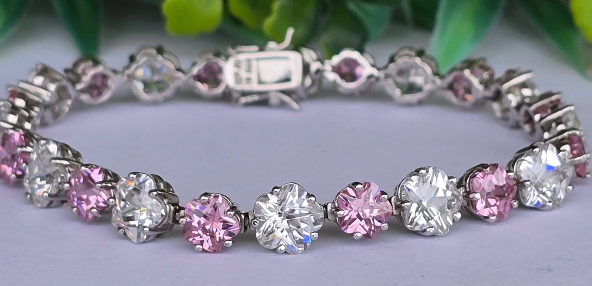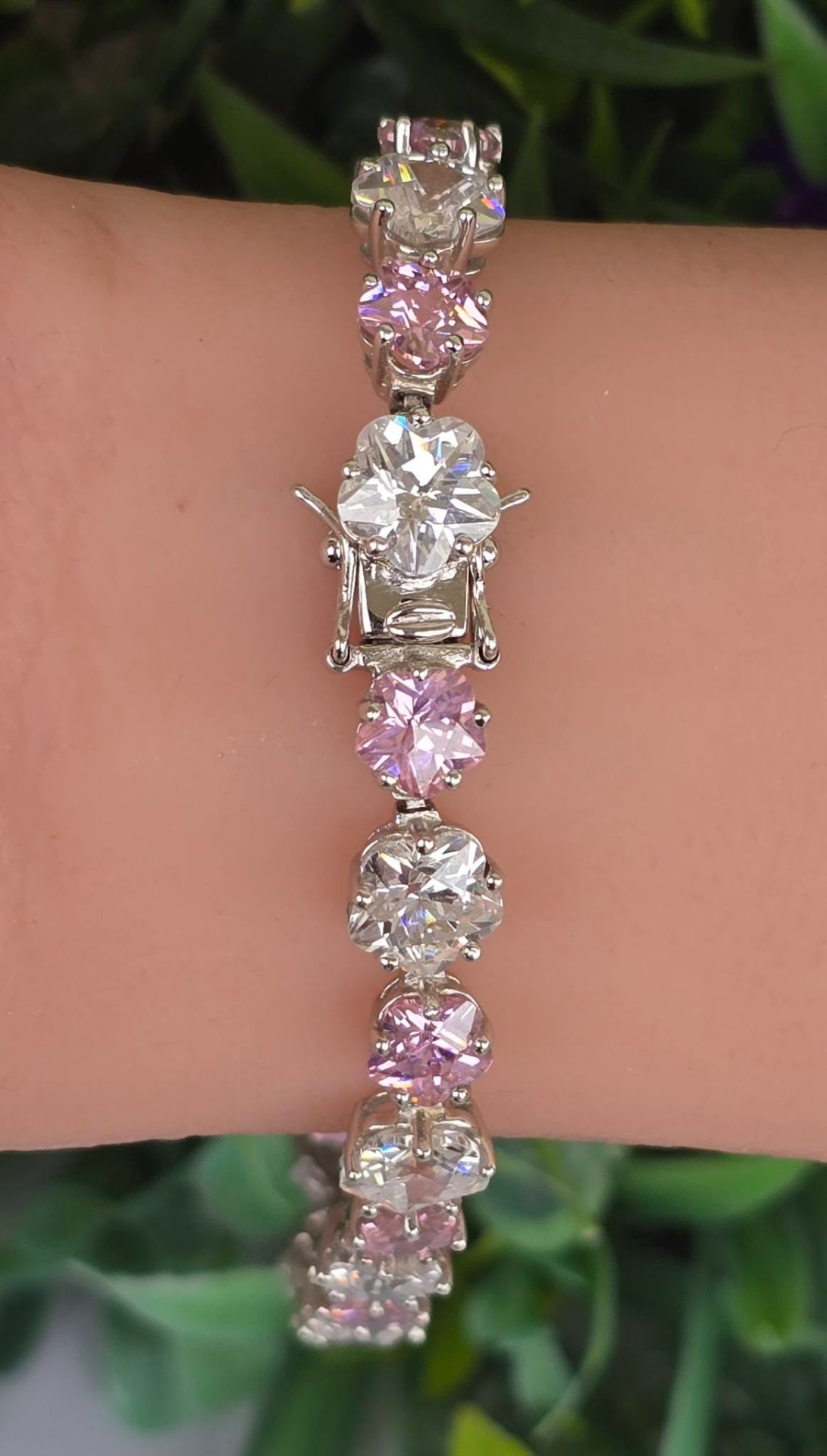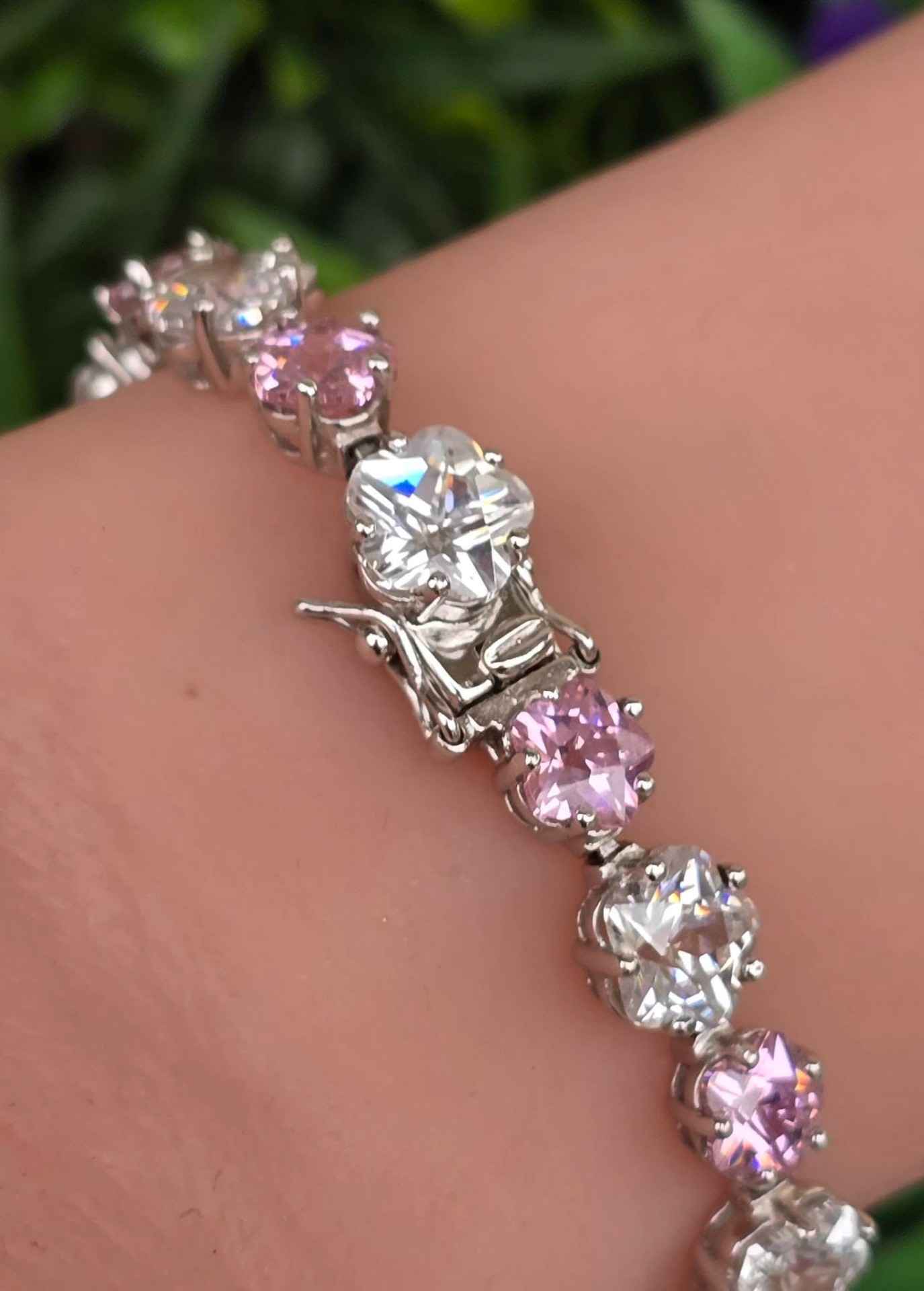 Brățară veche strălucitoare, din argint, cu pietre cubic zirconia.