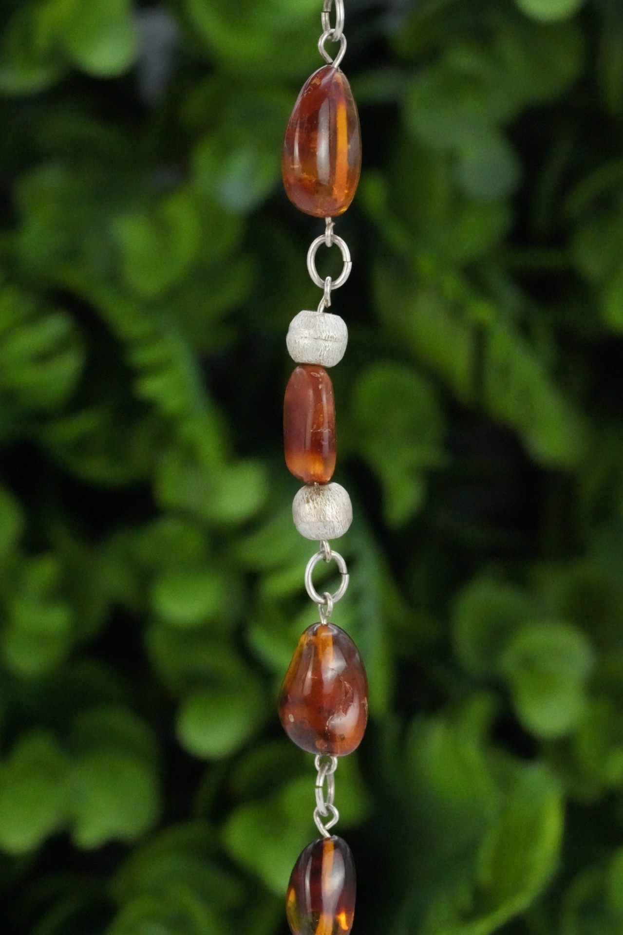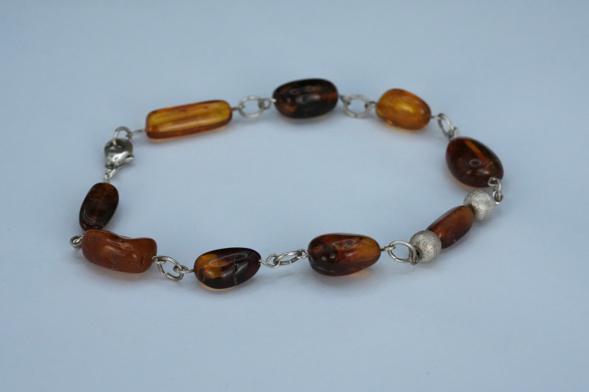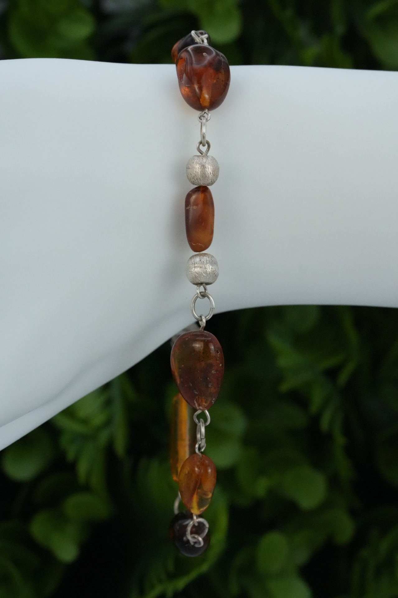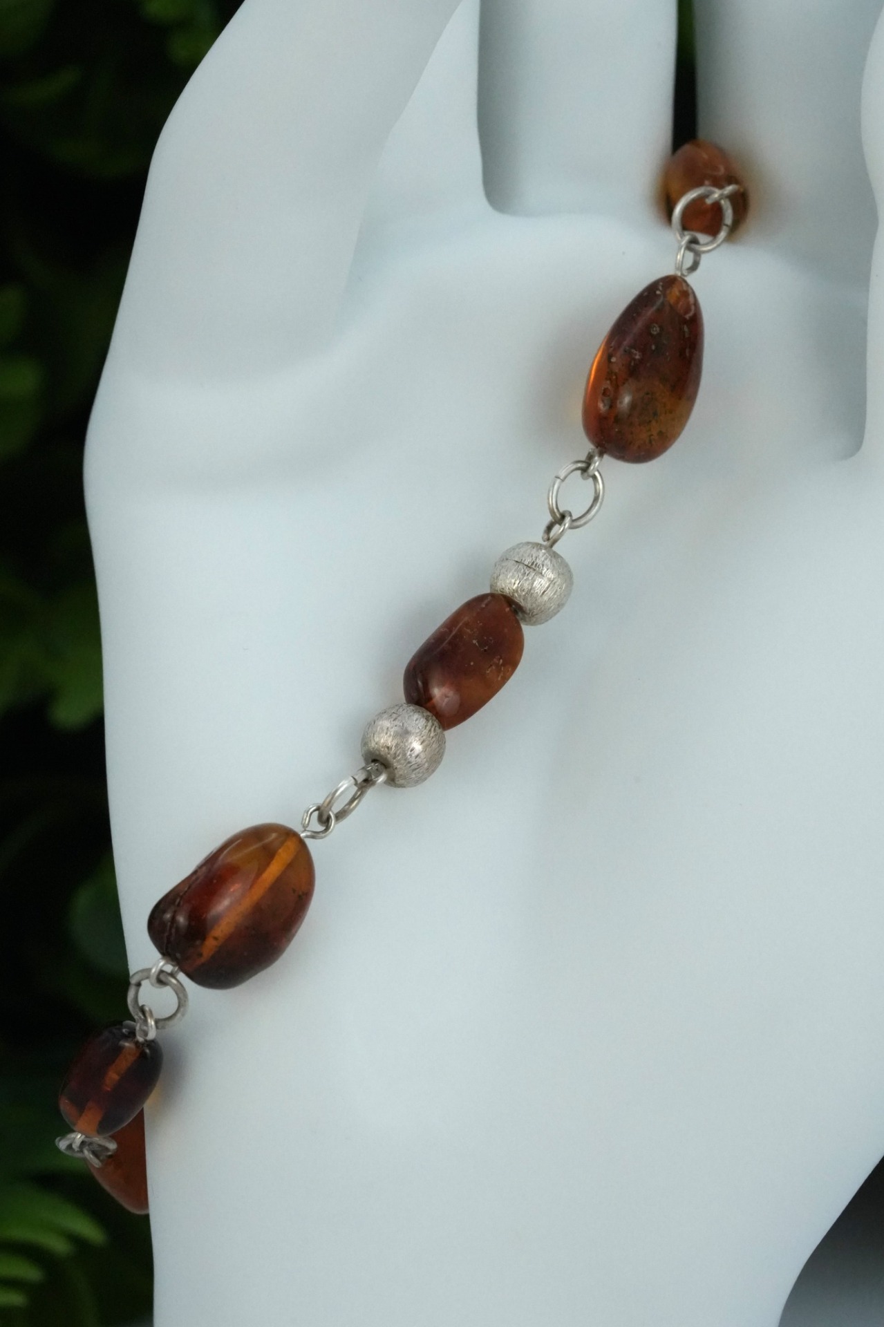 Brățară veche superbă, din argint, cu chihlimbar natural și perle naturale de cultură.
