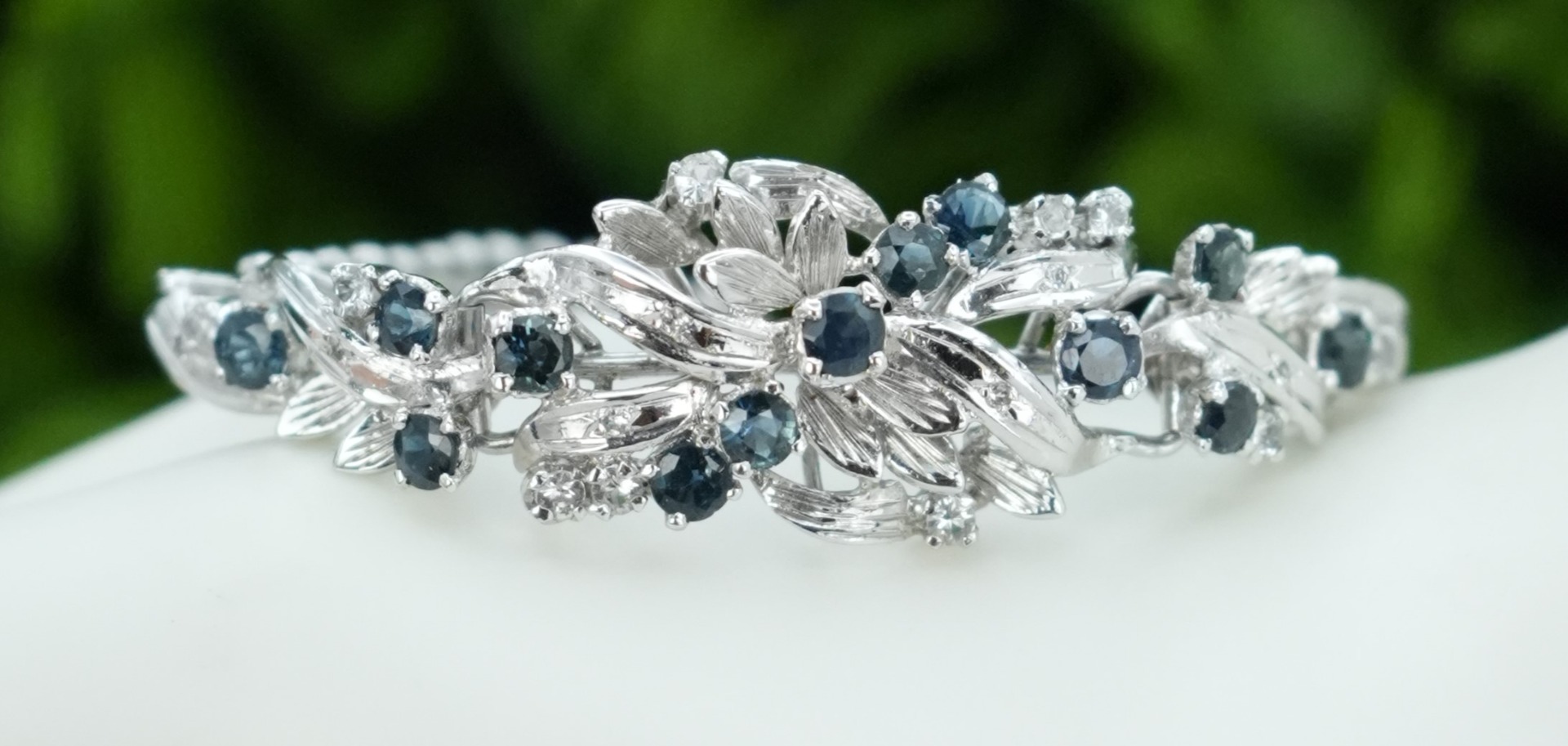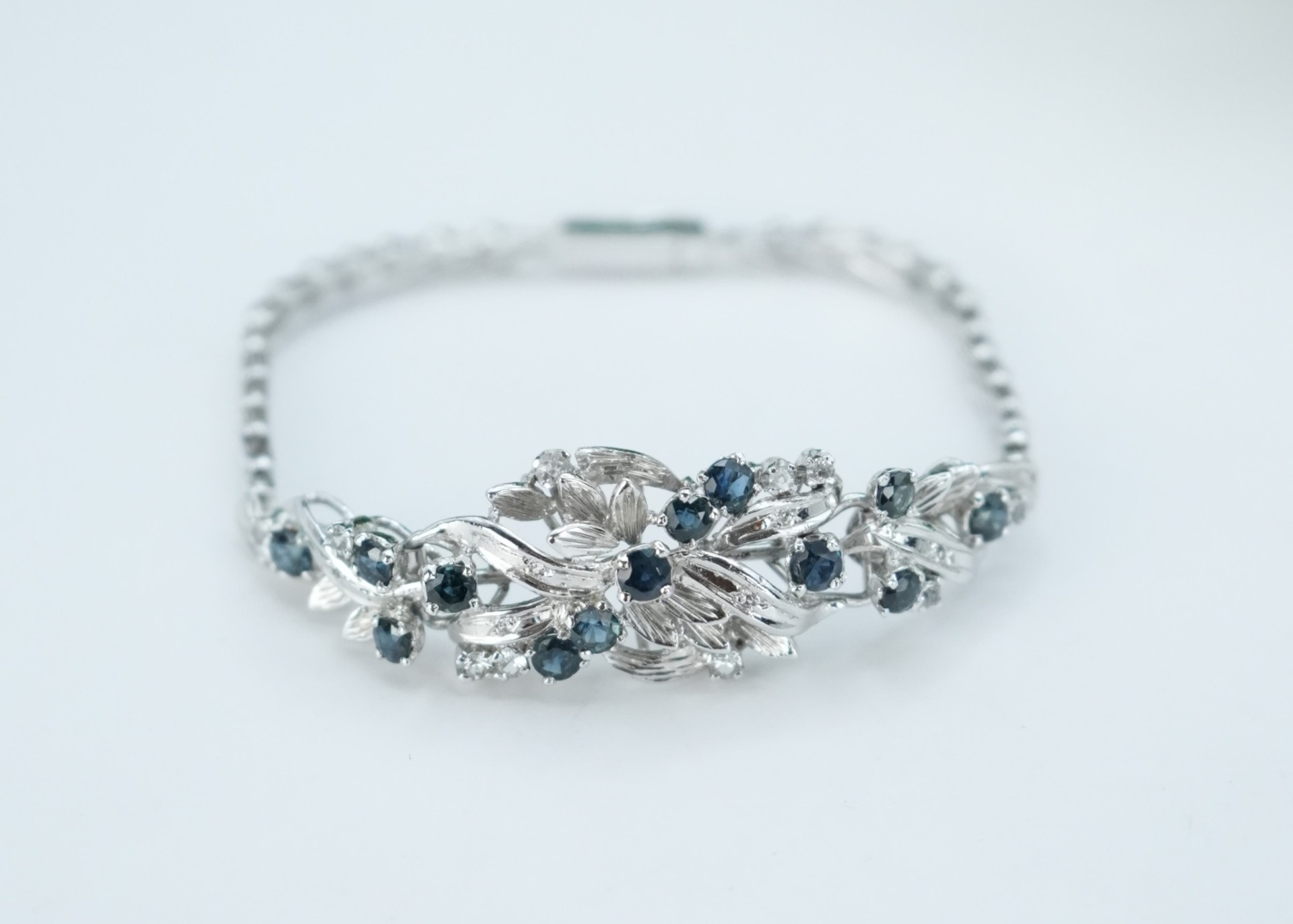 Brațară veche superbă, din argint, cu safire si topaze naturale.