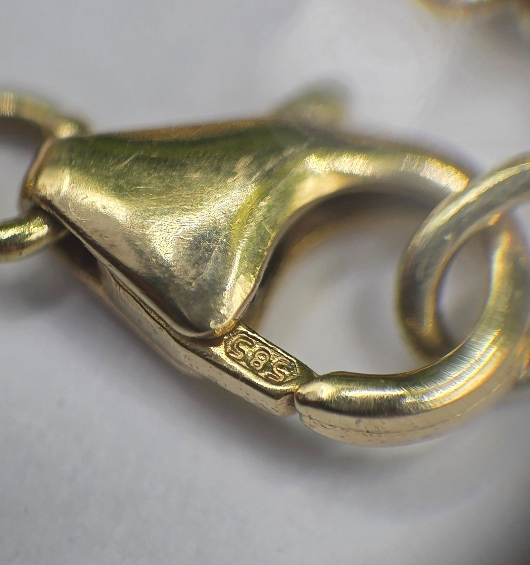 Prezintă marcaj 375 pentru puritate aur de 9K și marcaj 585 pentru puritate aur de 14K.