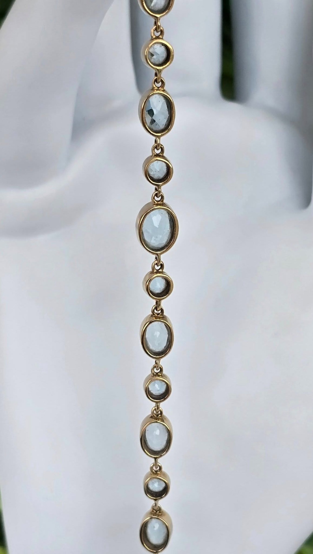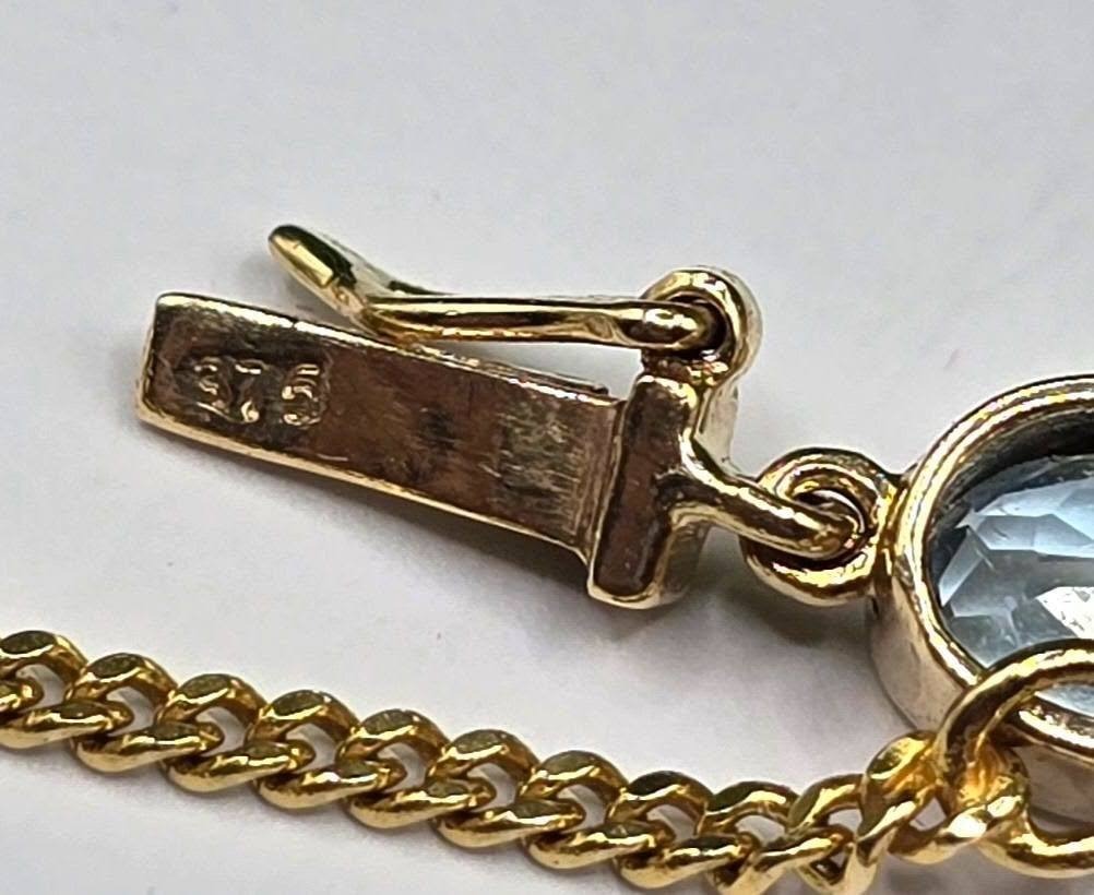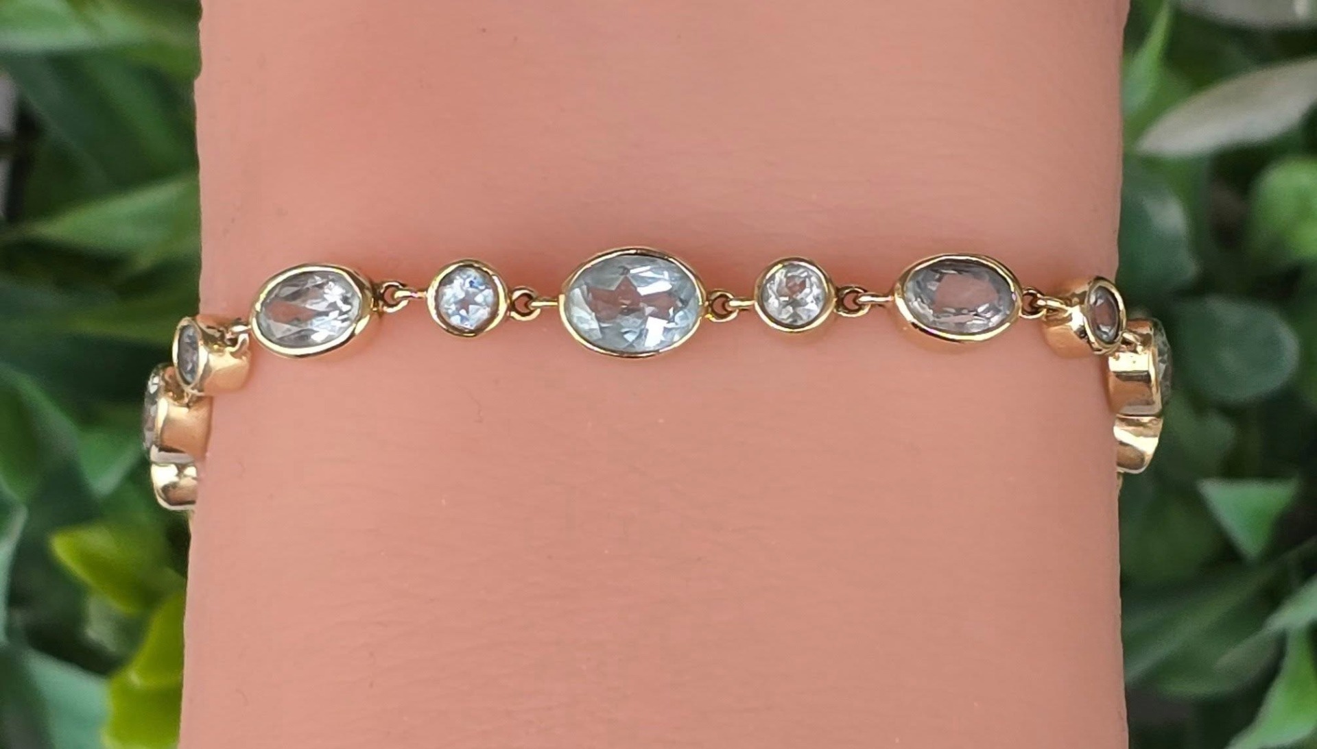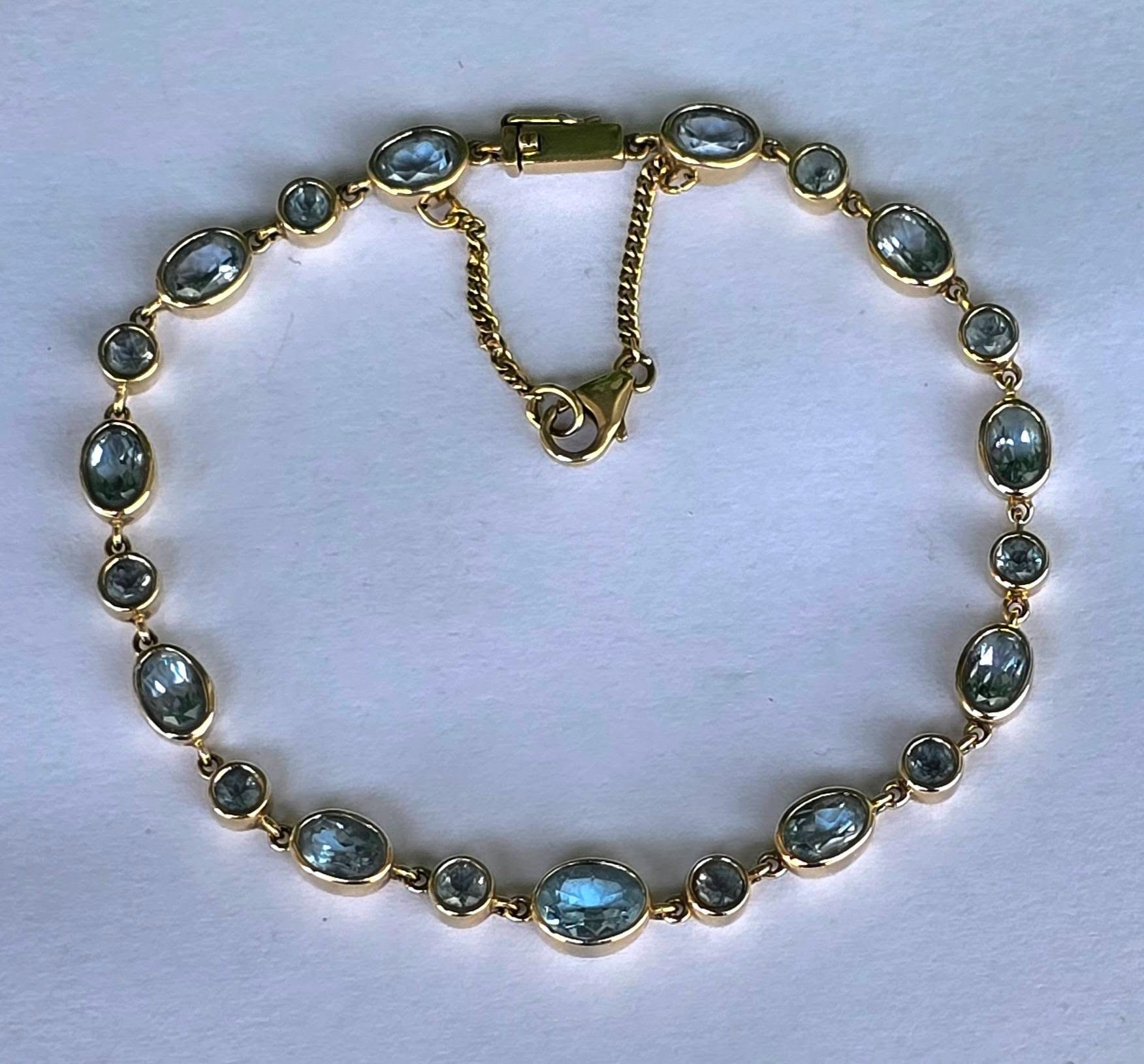 Brățară veche superbă, din aur de 9K, cu 21 topaze "sky blue" naturale și lănțișor de siguranță din aur de 14K.