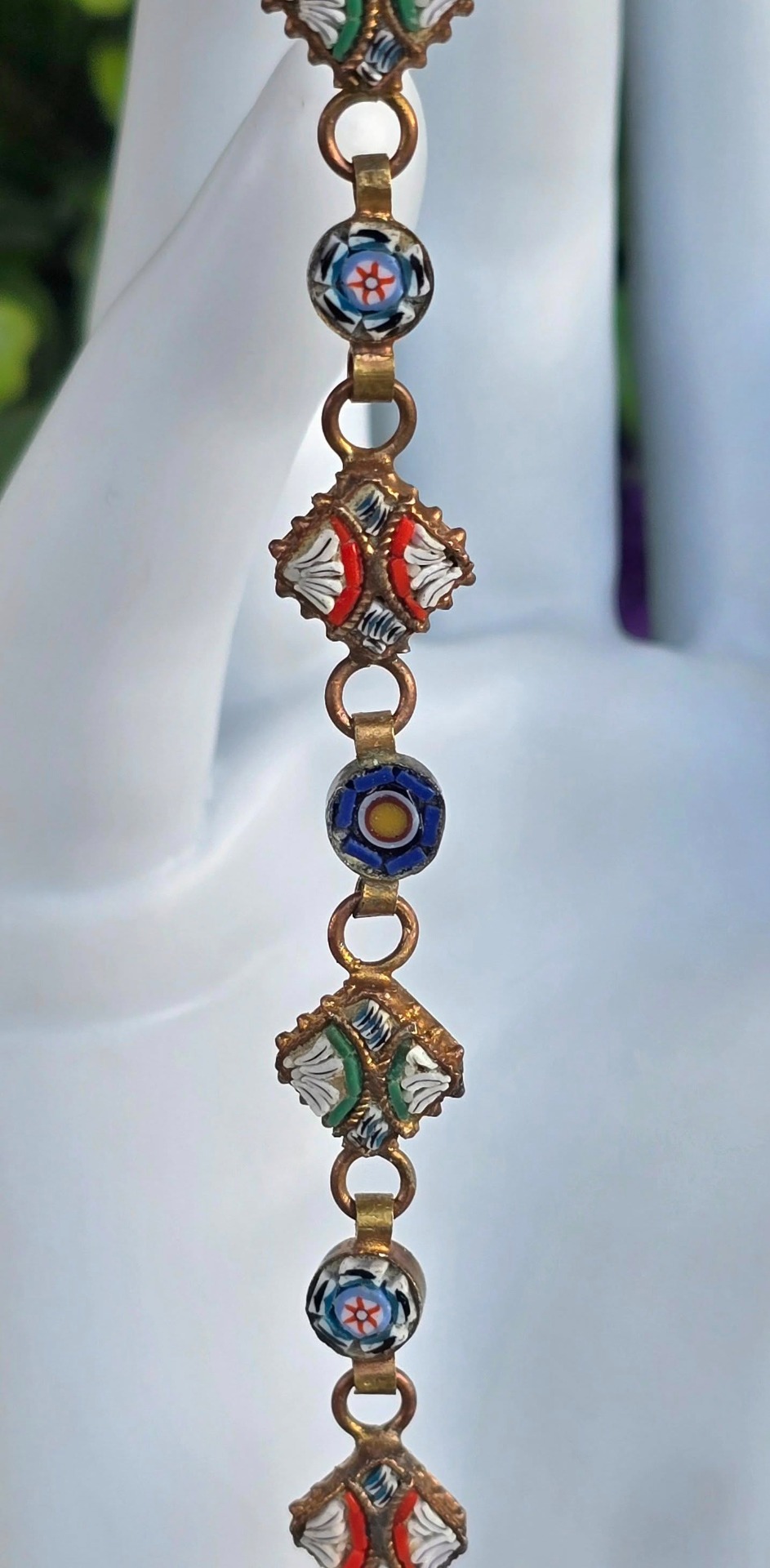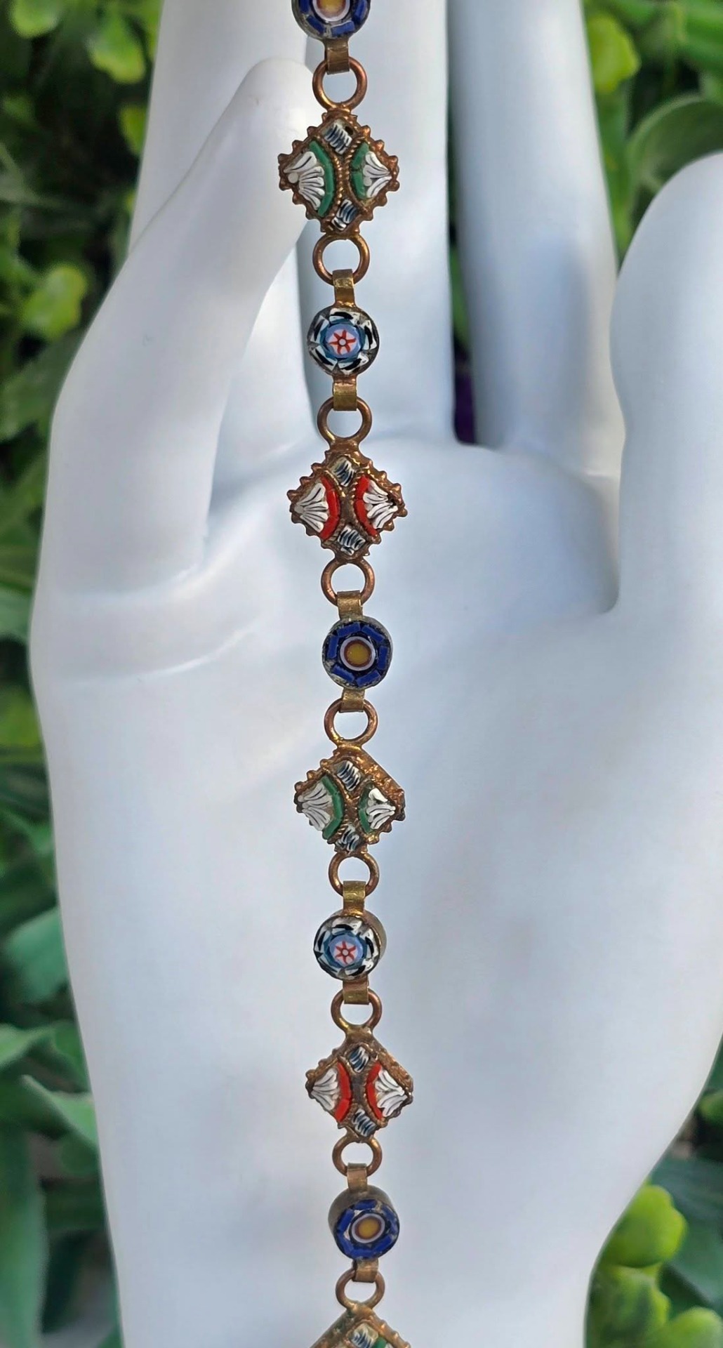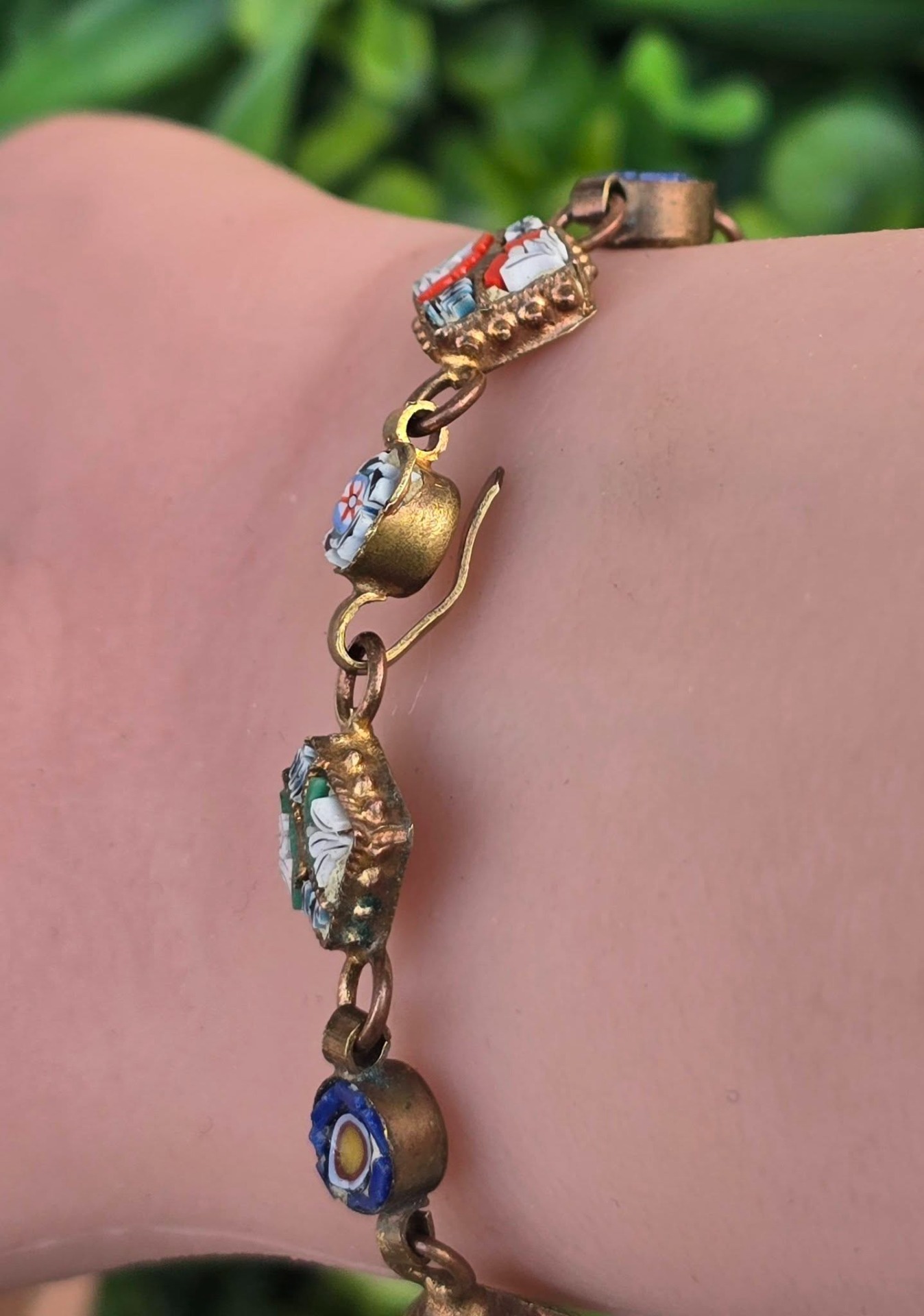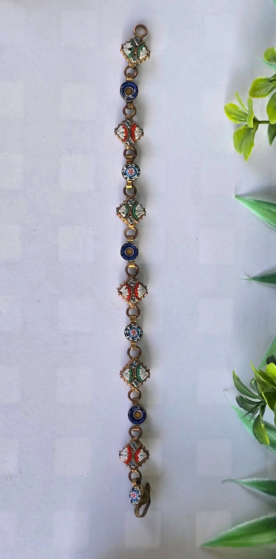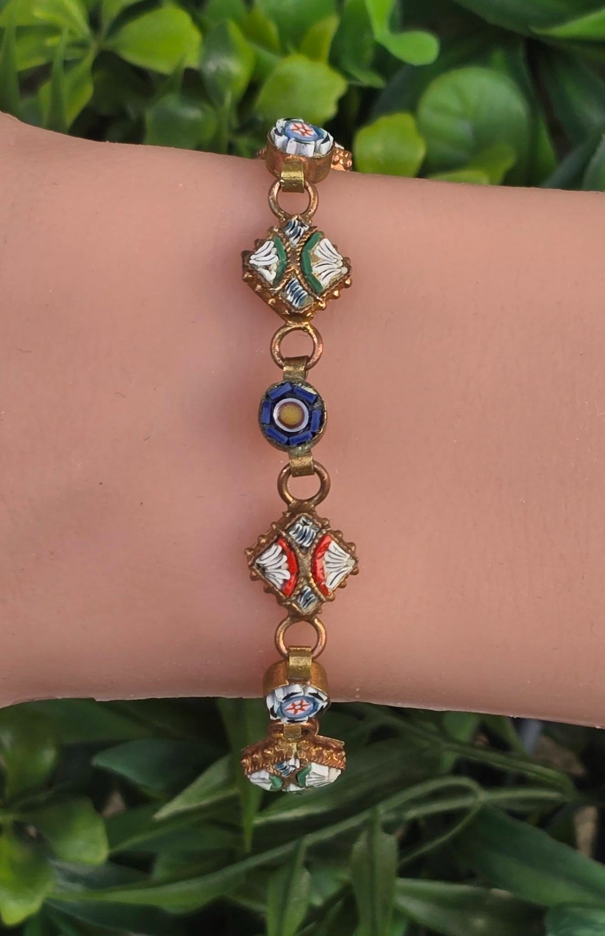 Brățară vintage din alamă, cu micromozaic "Millefiori", manufactură deosebită în motiv floral (anii 1970, Italia).