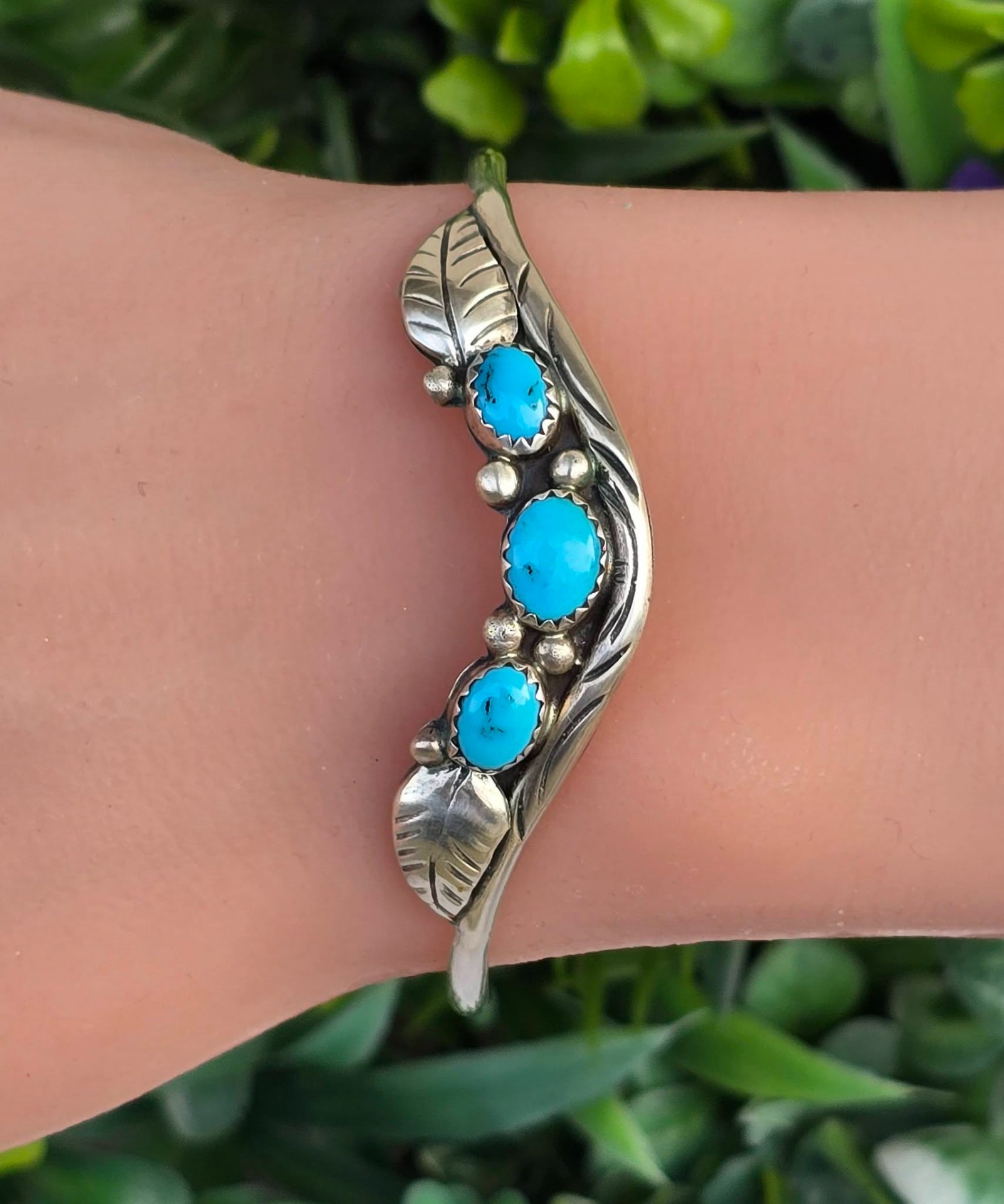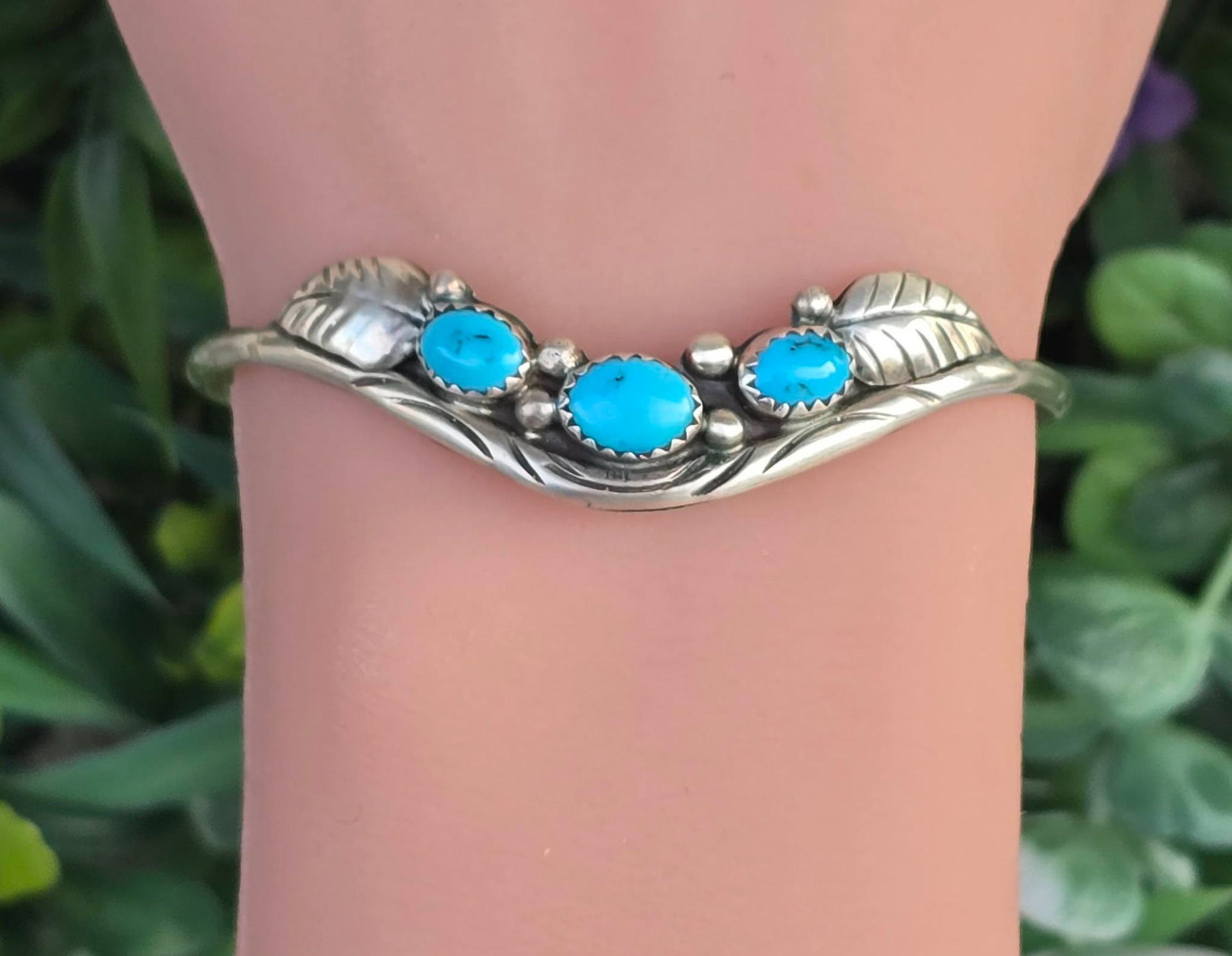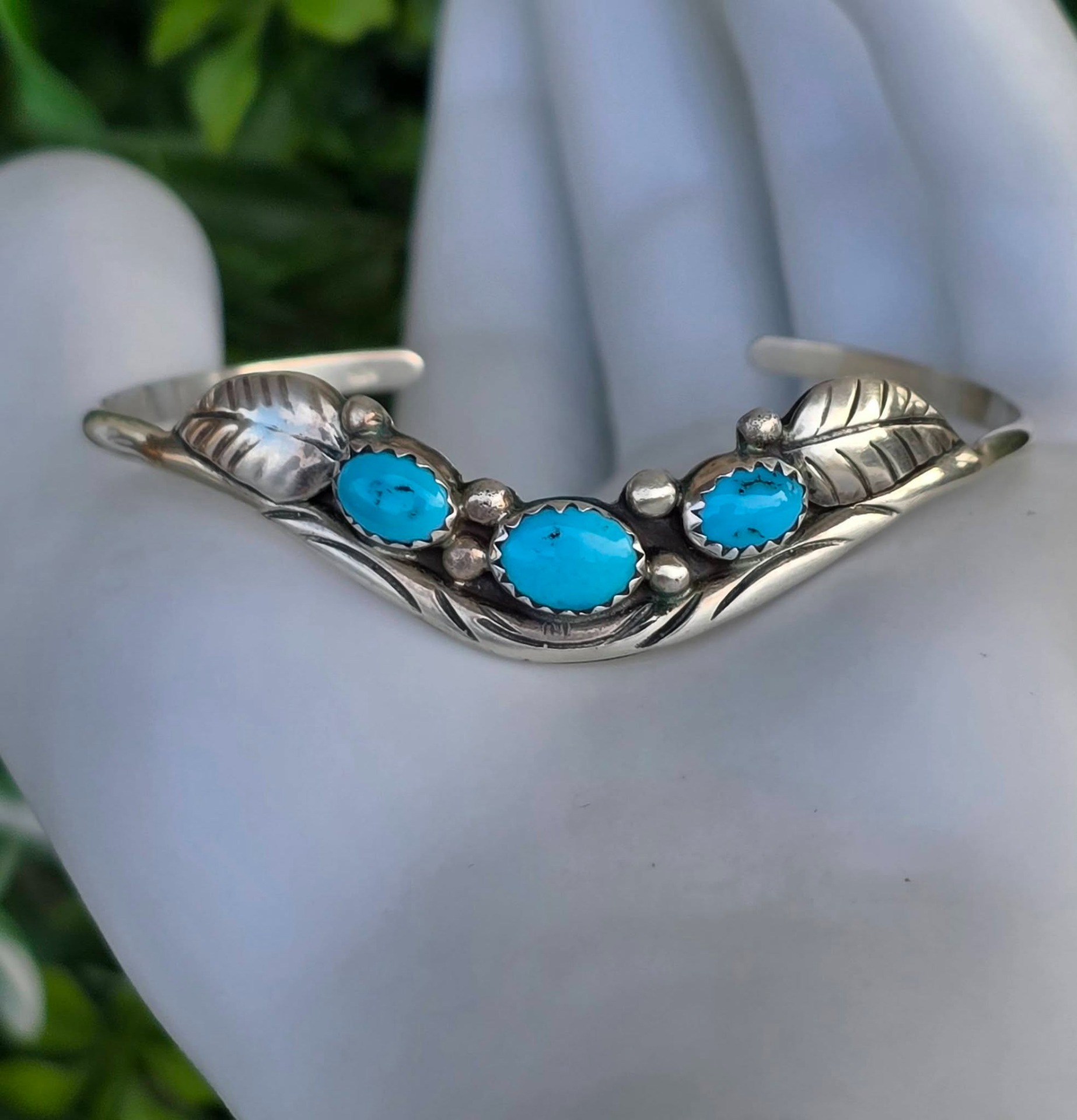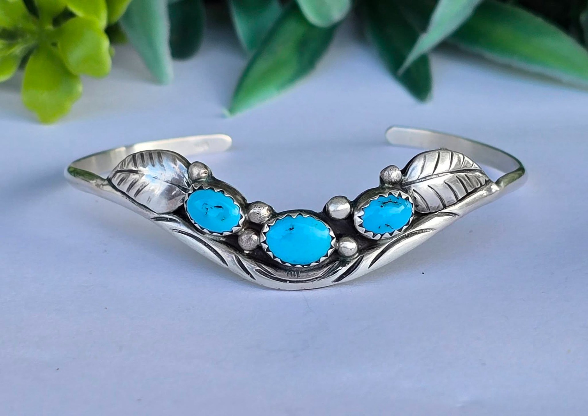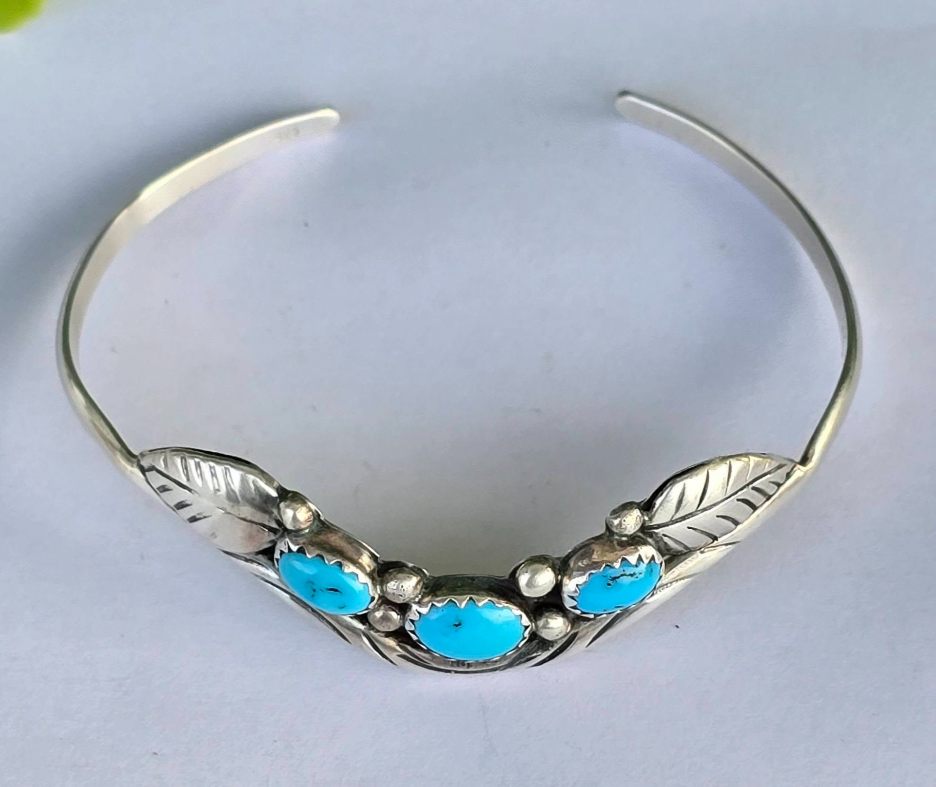 Brățară vintage Navajo, din argint, cu turcoaz natural, cu detalii specifice de manufactură amerindiană (anii 1970, SUA).