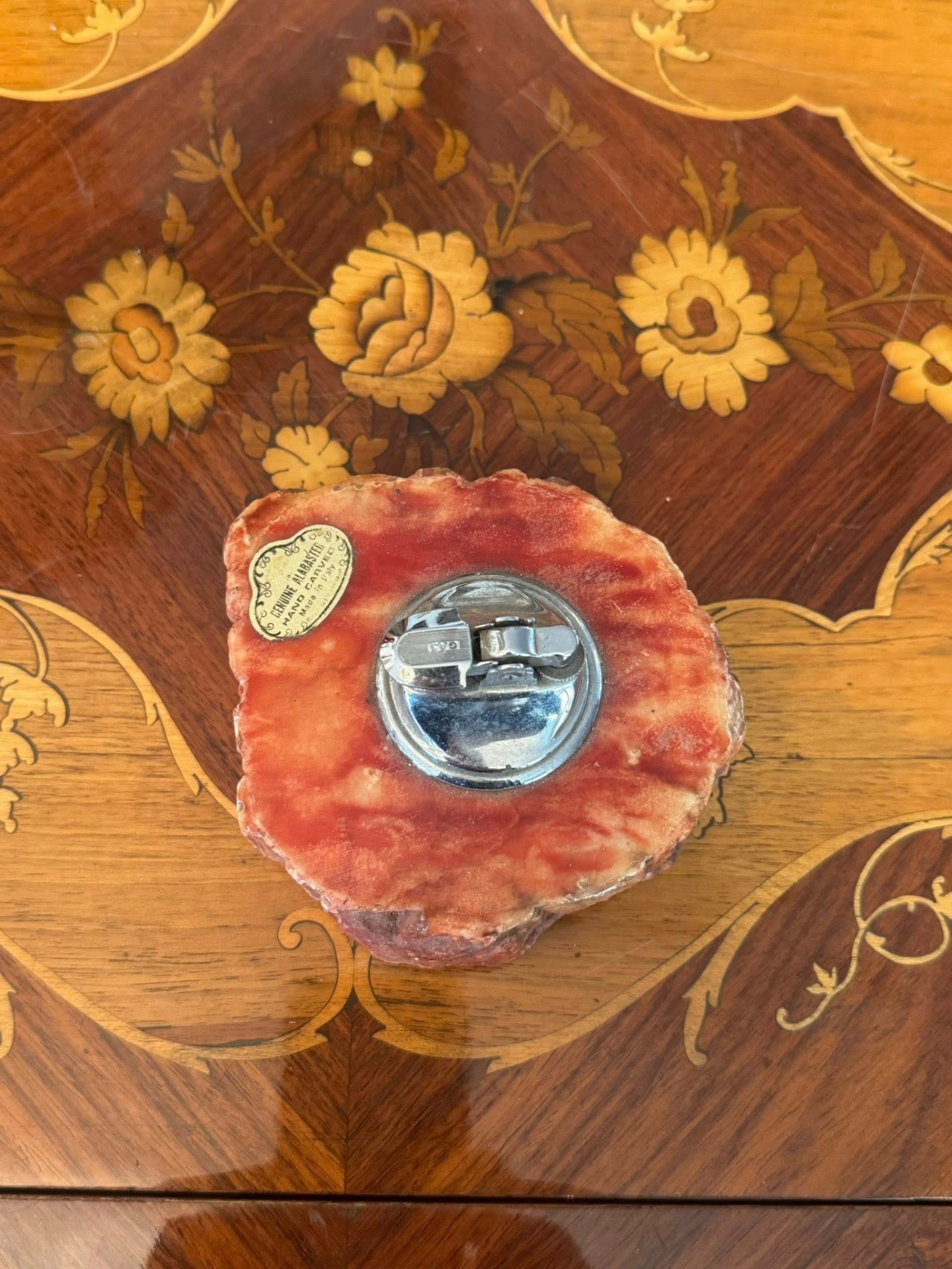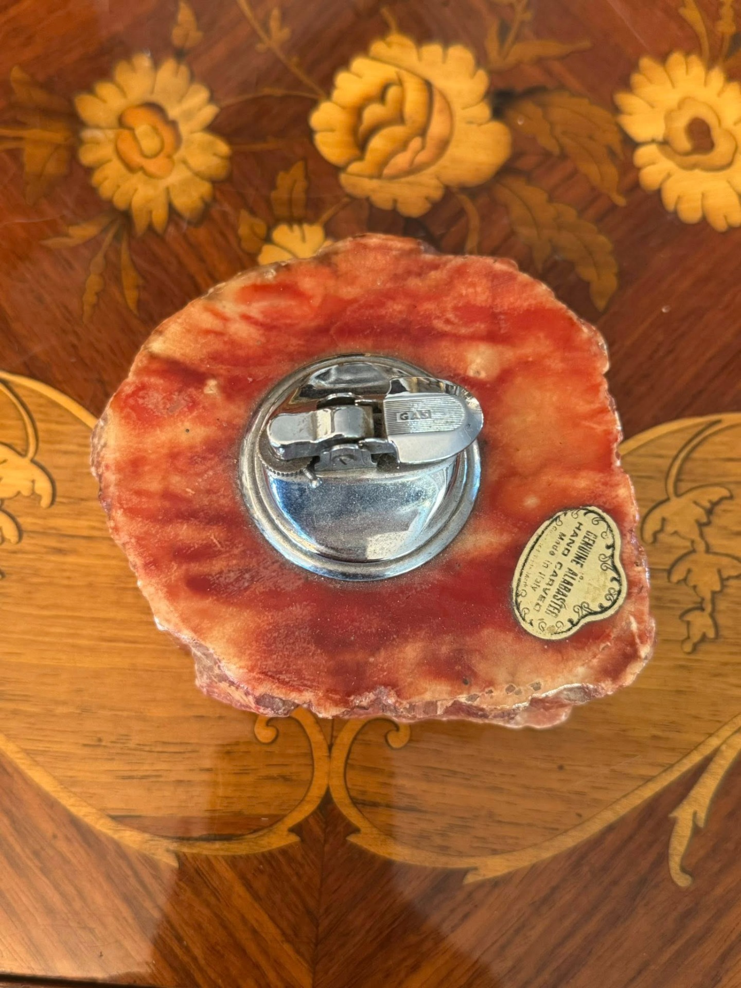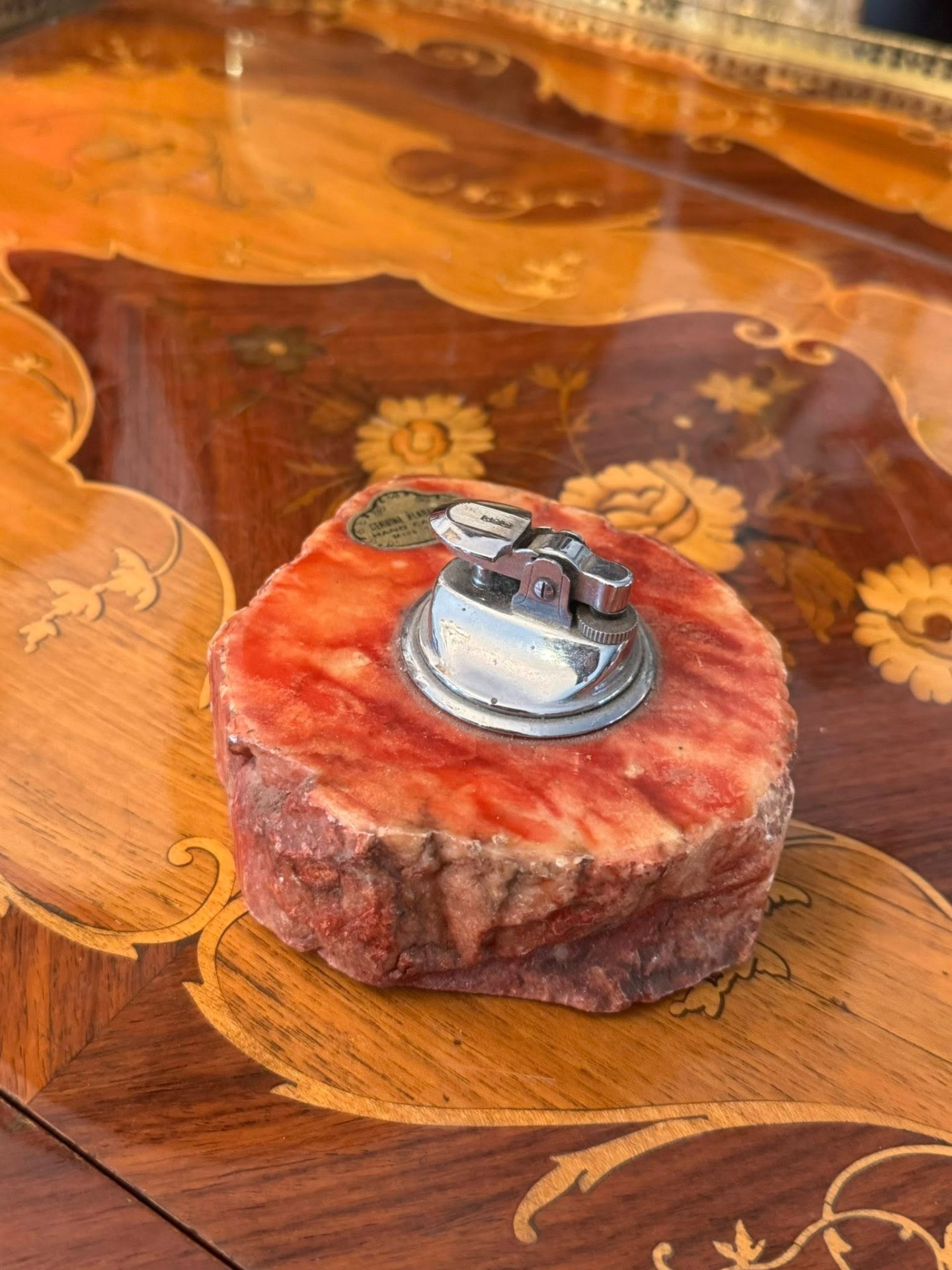 Brichetă din alabastru sculptat manual, funcționează cu gaz. (Italia, cca 1960)