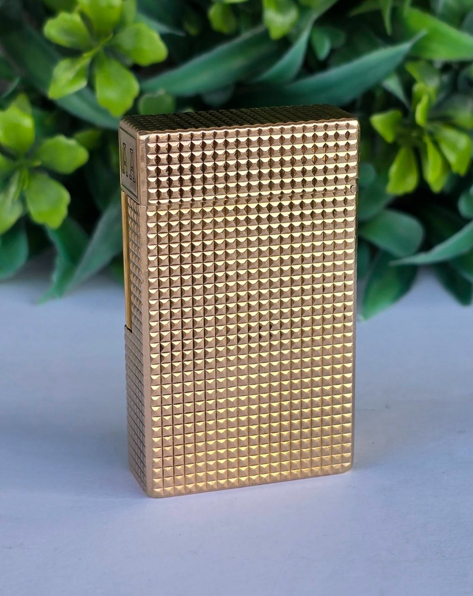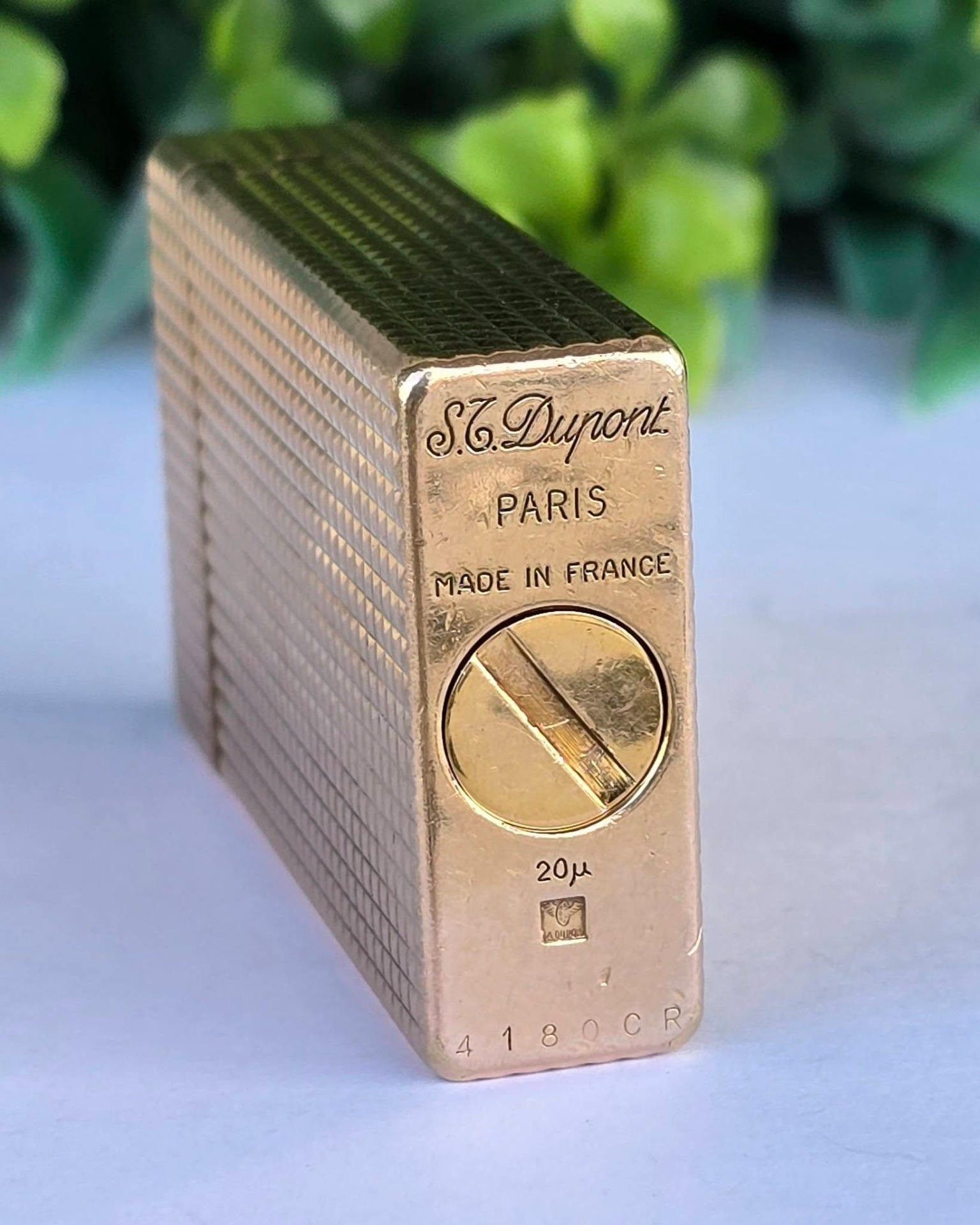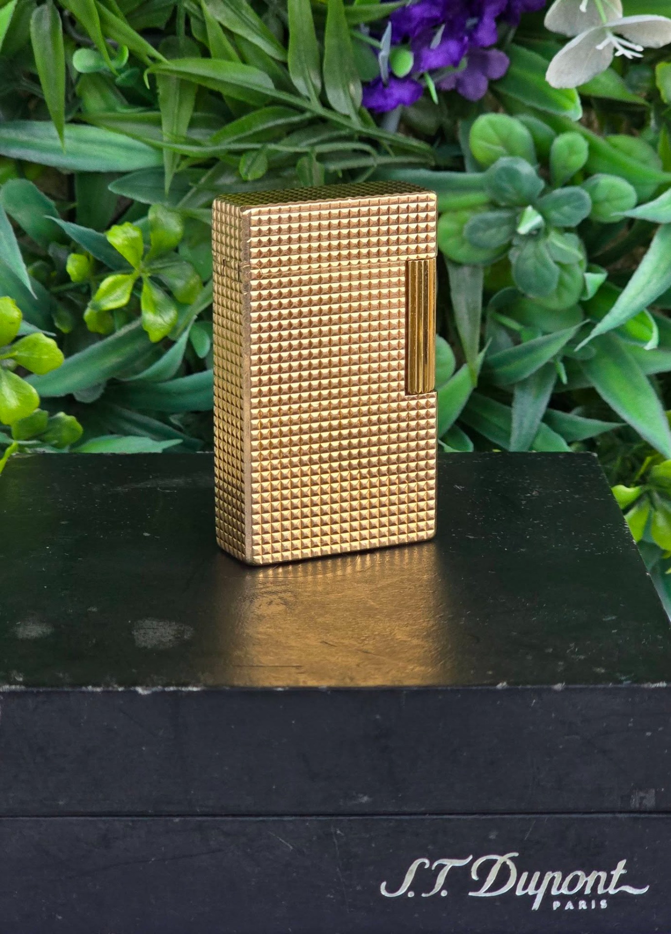 Brichetă vintage S.T. DUPONT autentică, de colecție, placată cu aur (20 microni), pe gaz, funcțională, în stare bună, cu foarte puține urme de uzură, în cutie