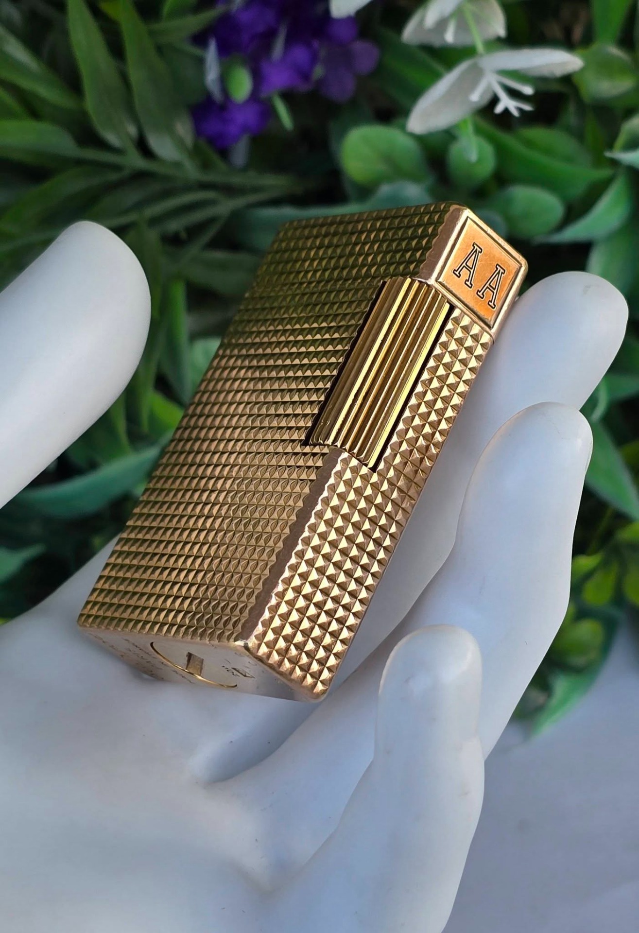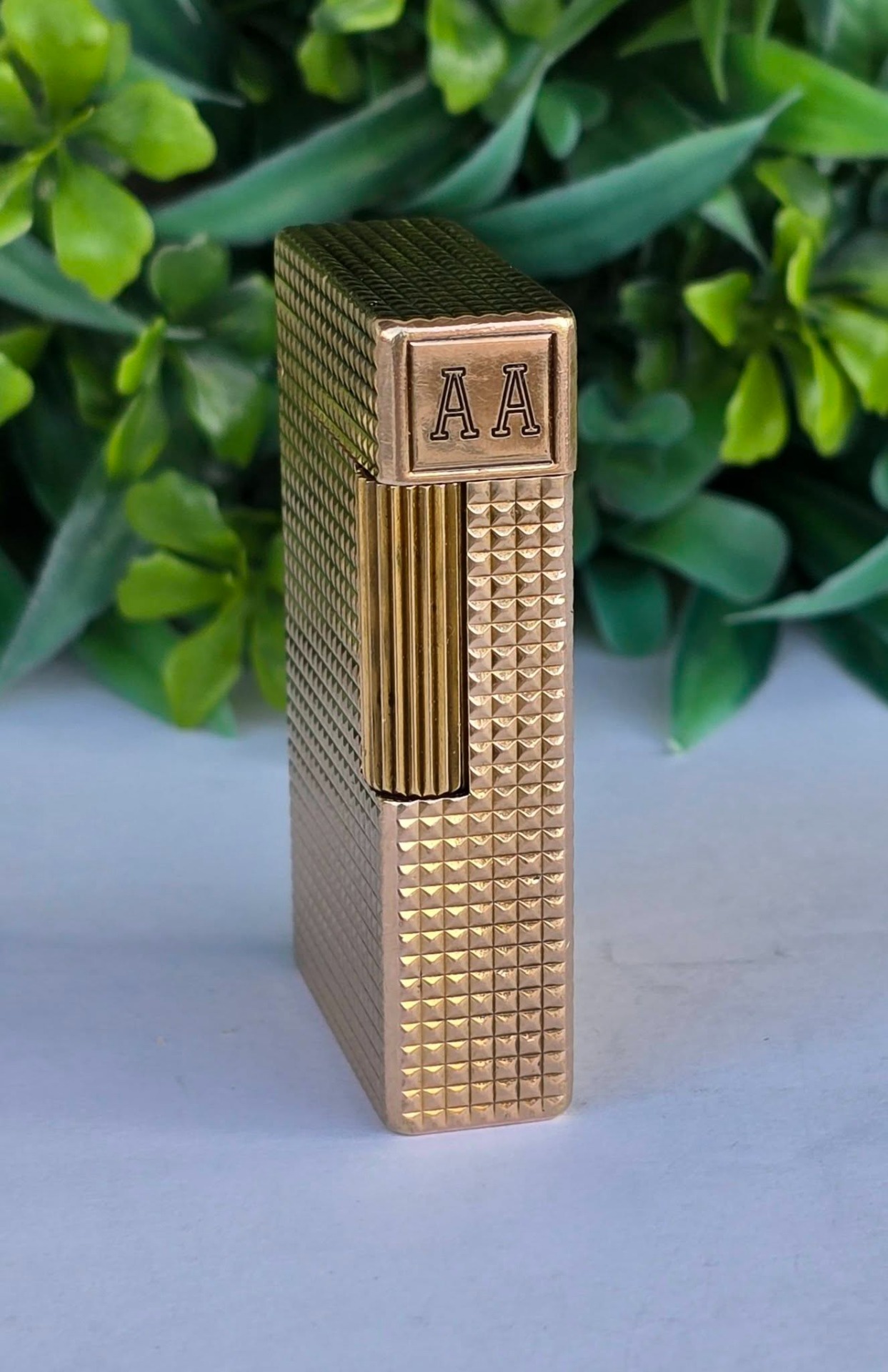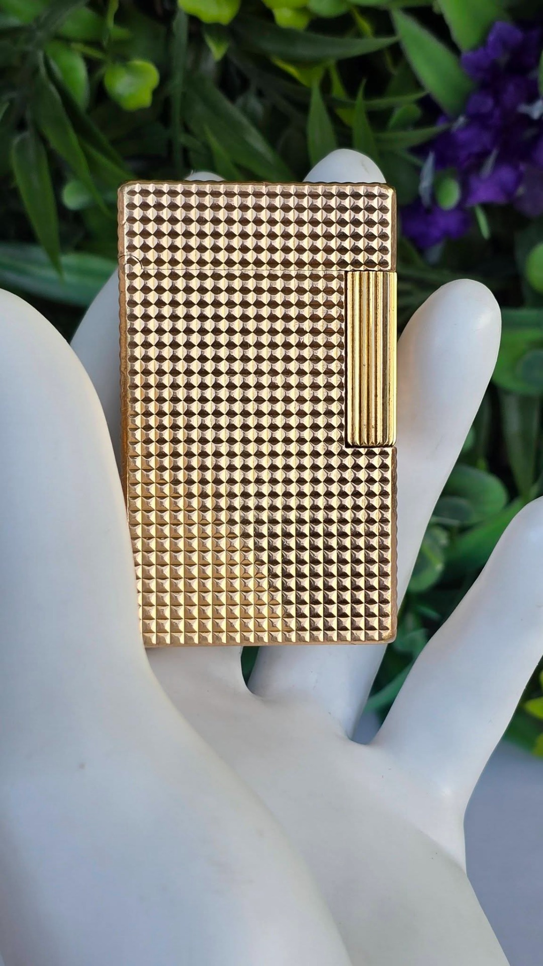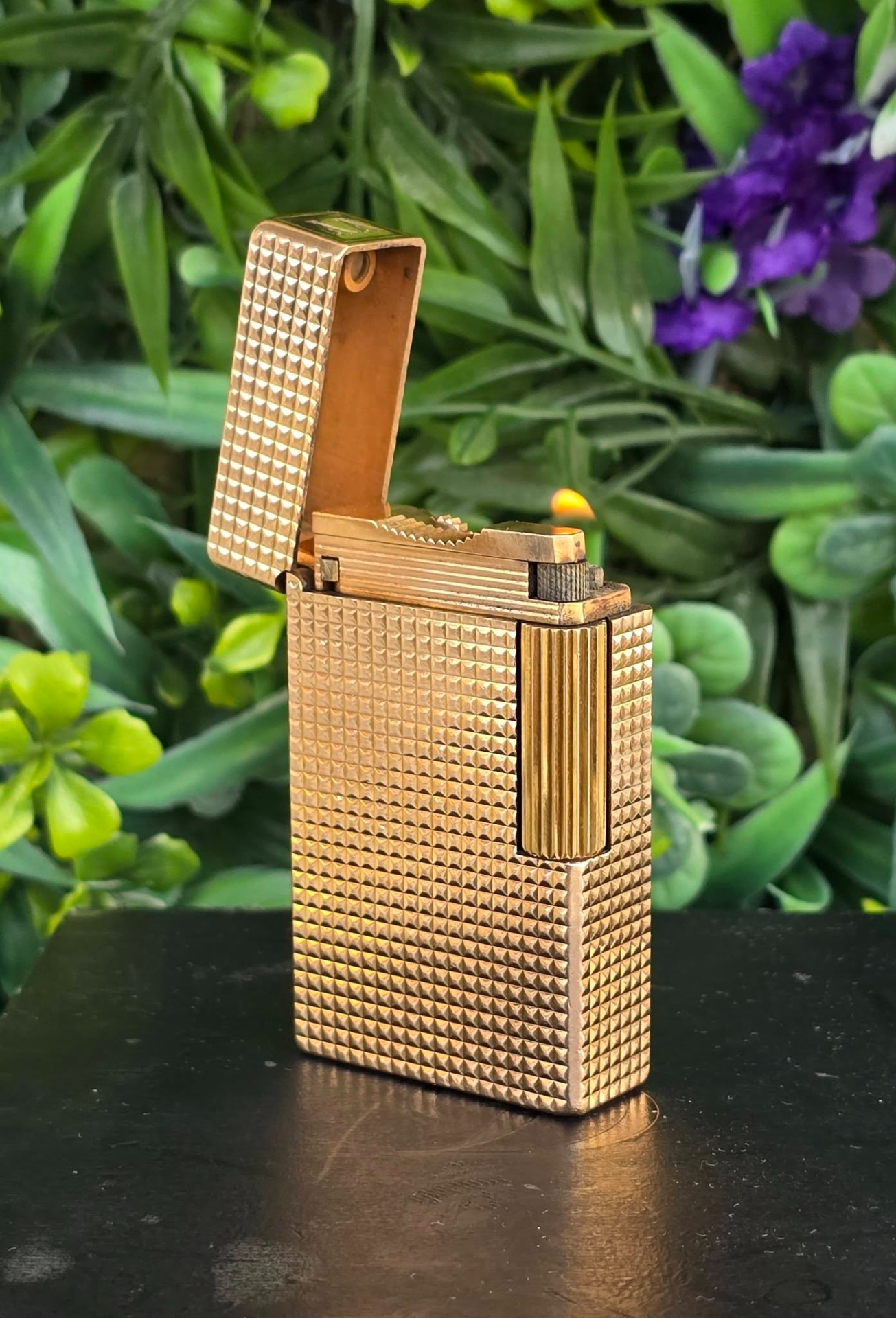 Brichetă vintage S.T. DUPONT autentică, de colecție, placată cu aur (20 microni), pe gaz, funcțională, în stare bună, cu foarte puține urme de uzură, în cutie