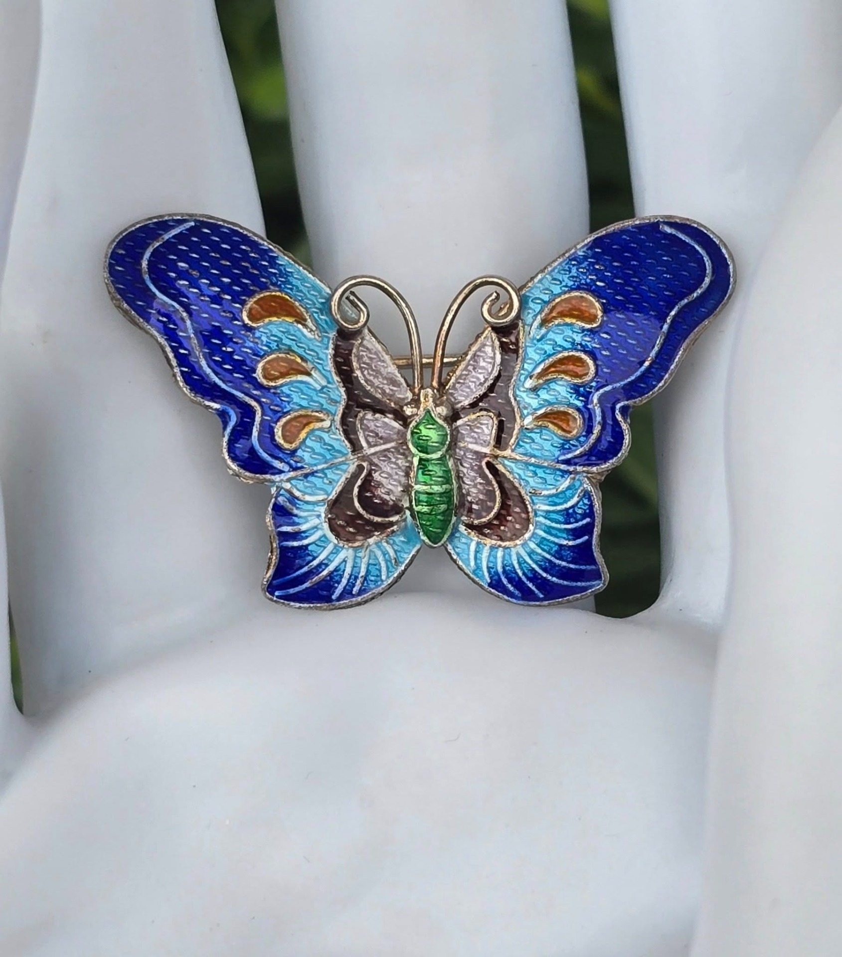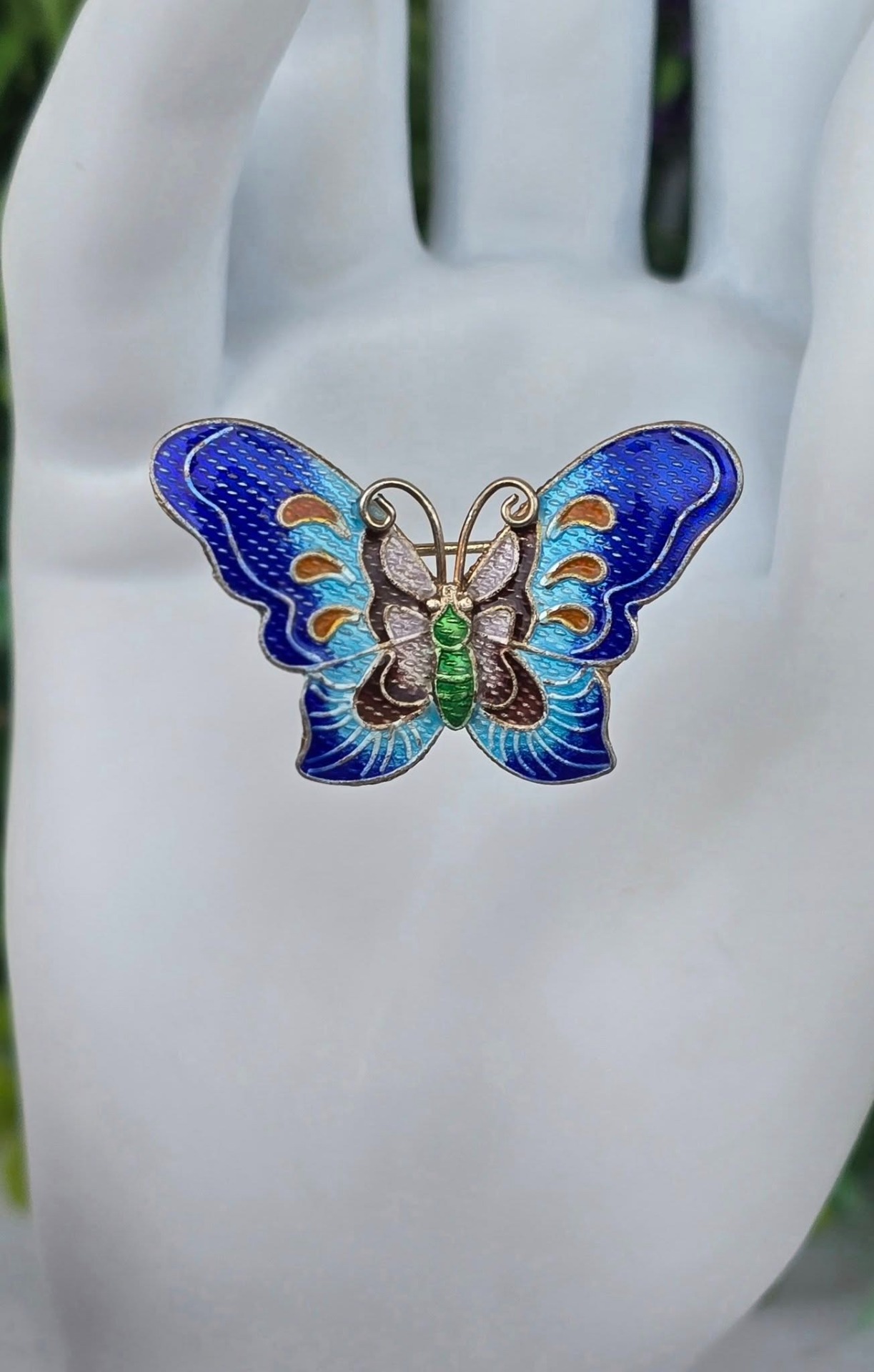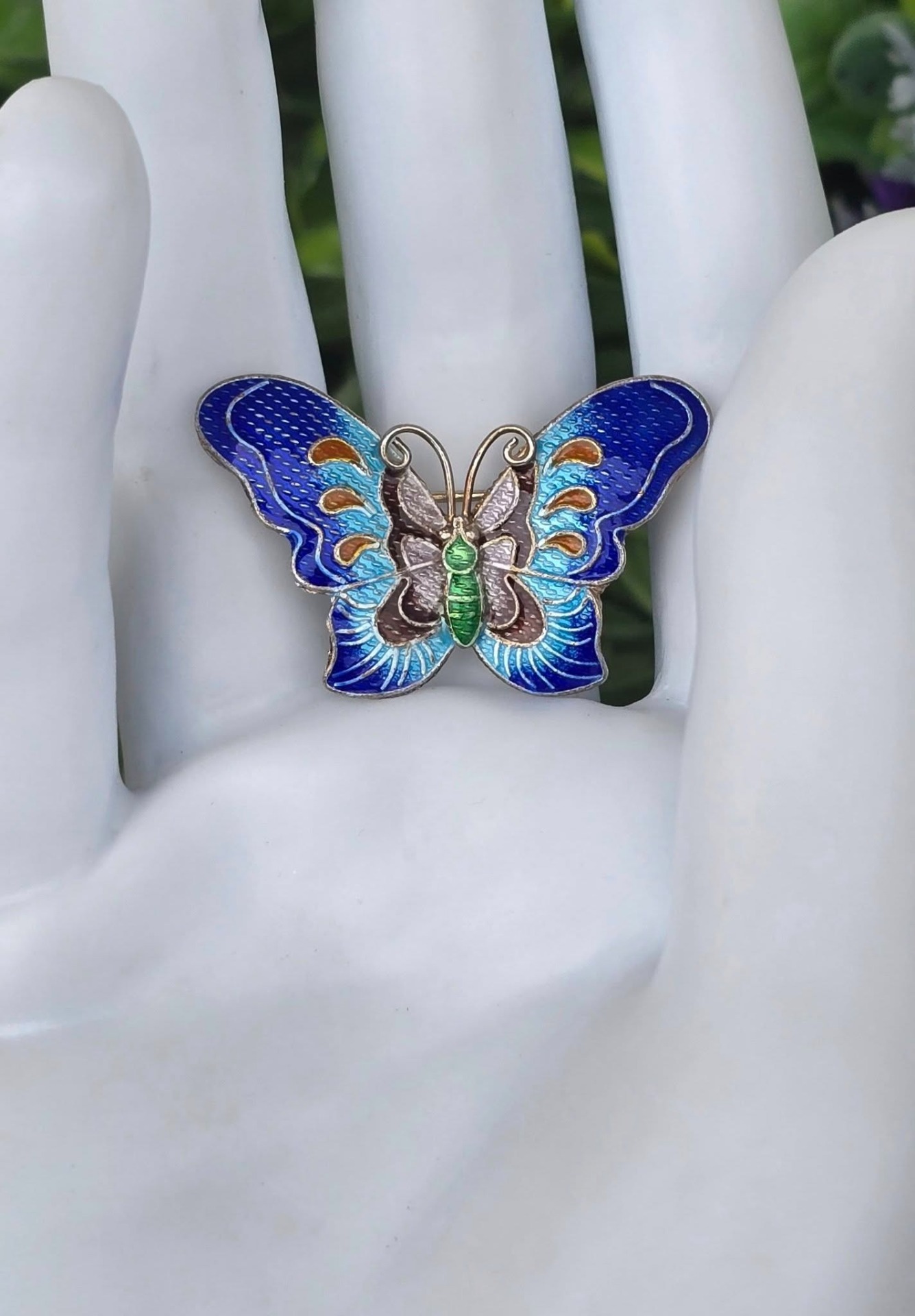 Broșă veche "cloisonné", din argint, cu email, manufactură deosebită.