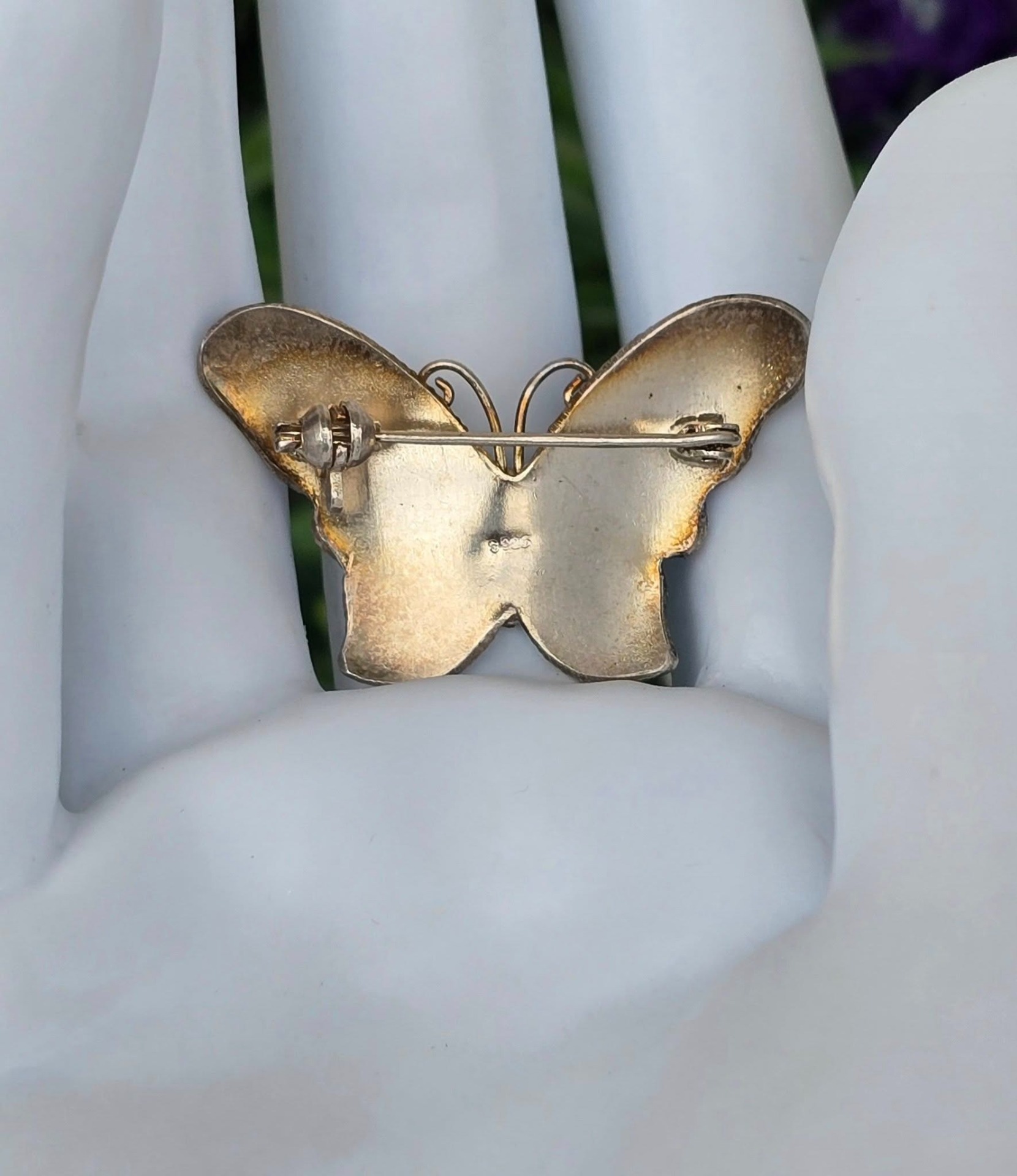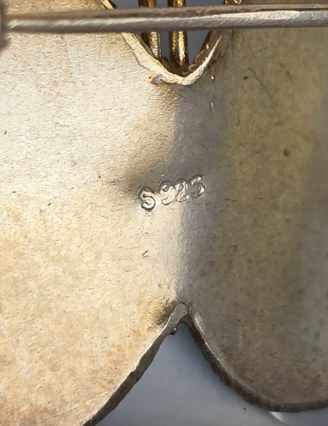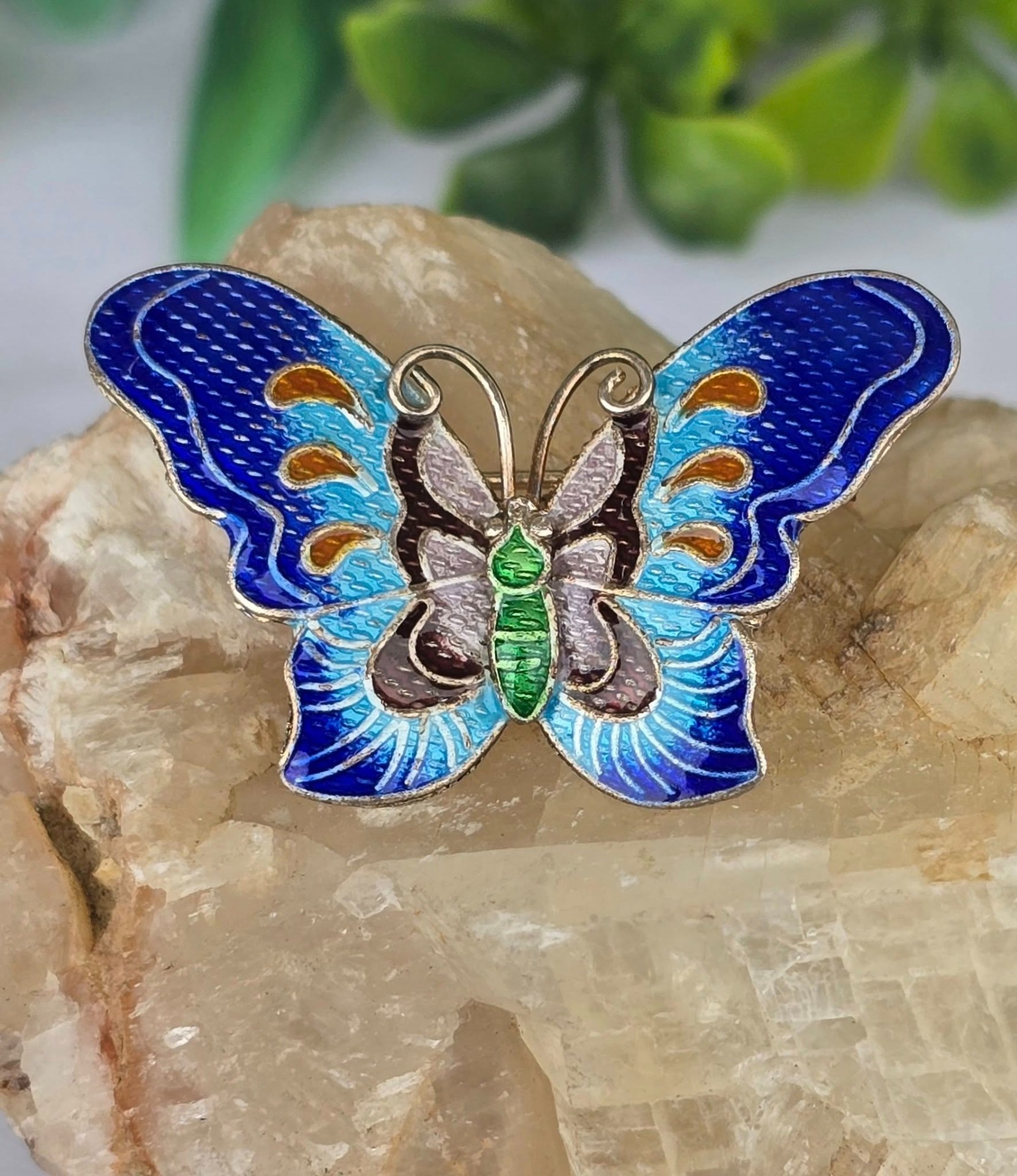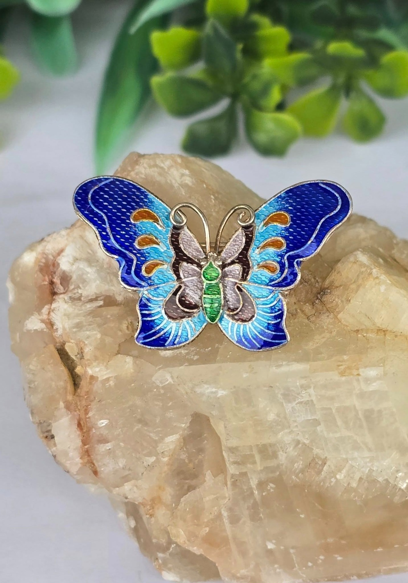 Broșă veche "cloisonné", din argint, cu email, manufactură deosebită.