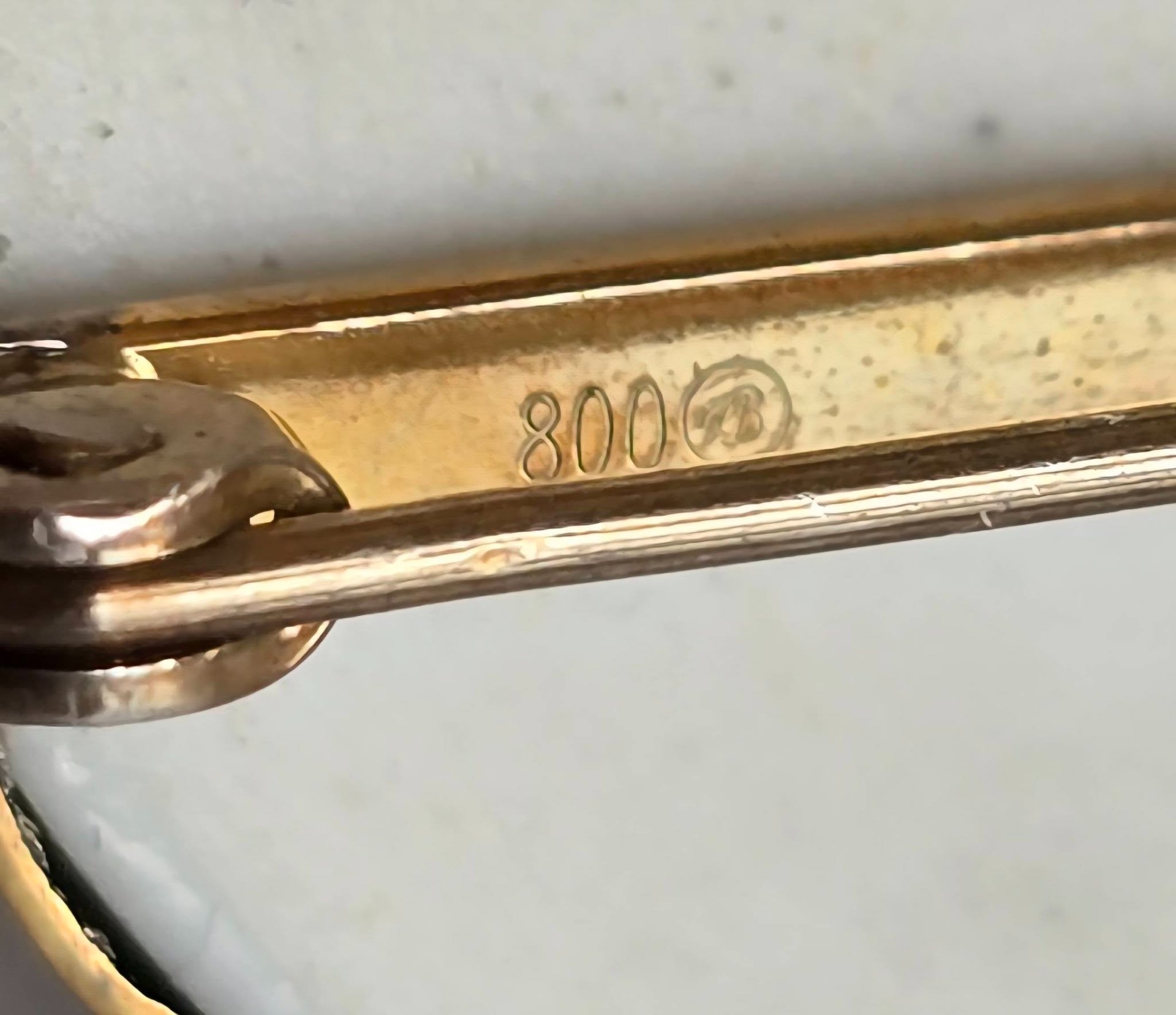 Prezintă marcaj de argint 800 și marcaj de meșter.