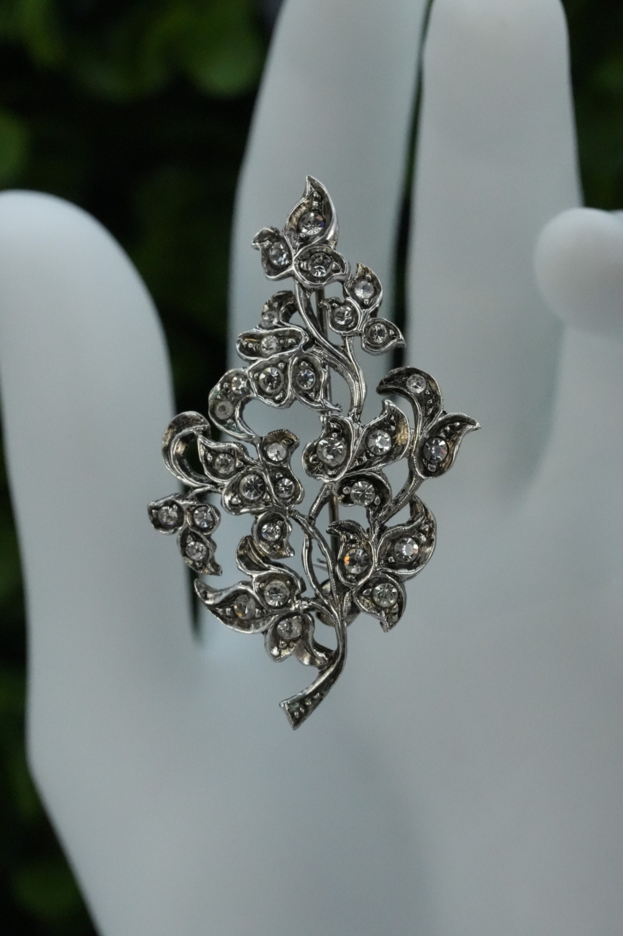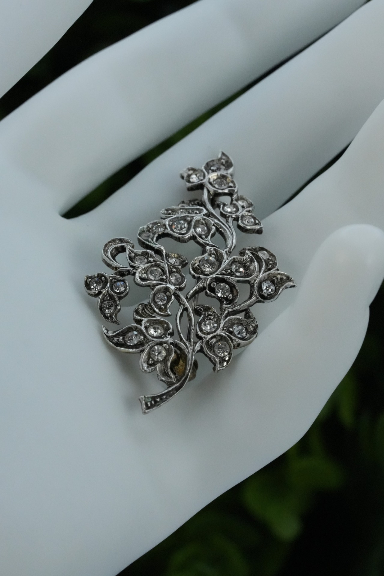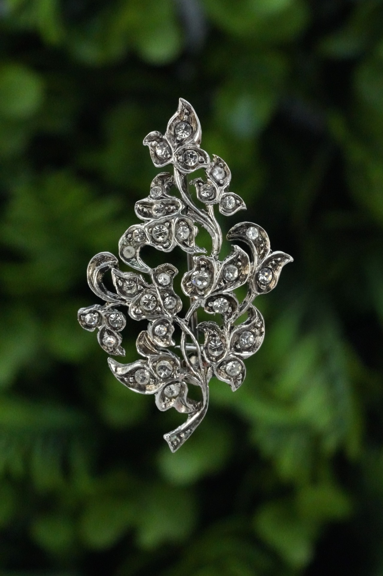 Broșă veche din argint, cu pietre cubic zirconia.