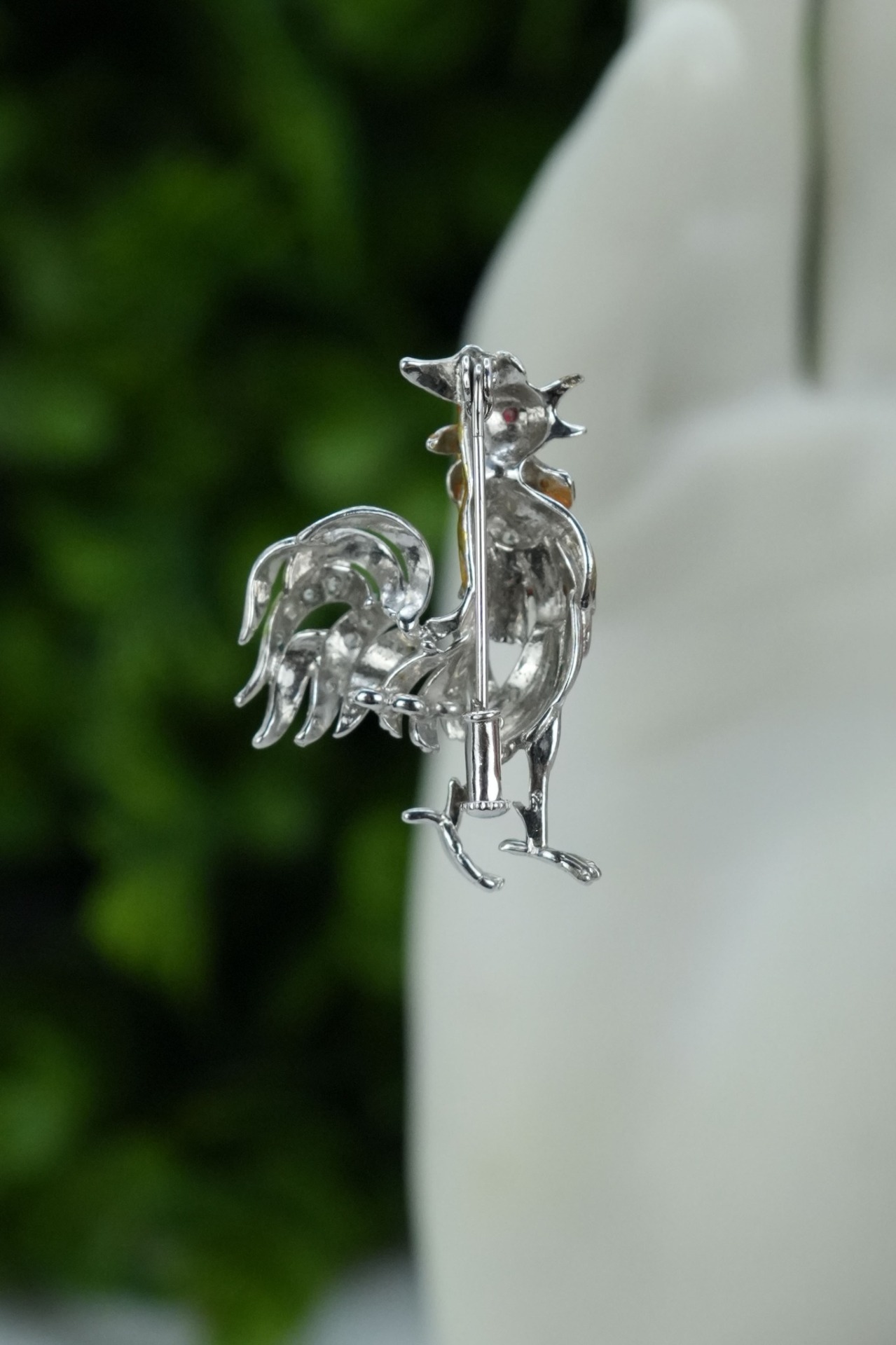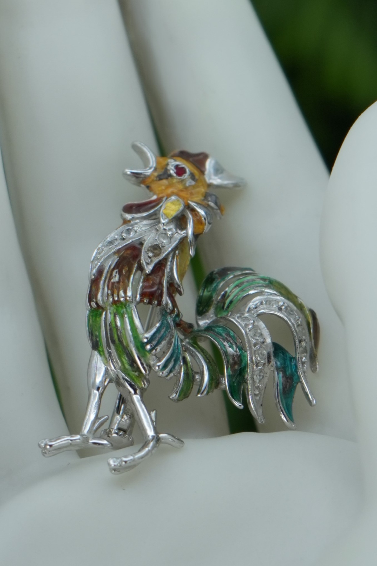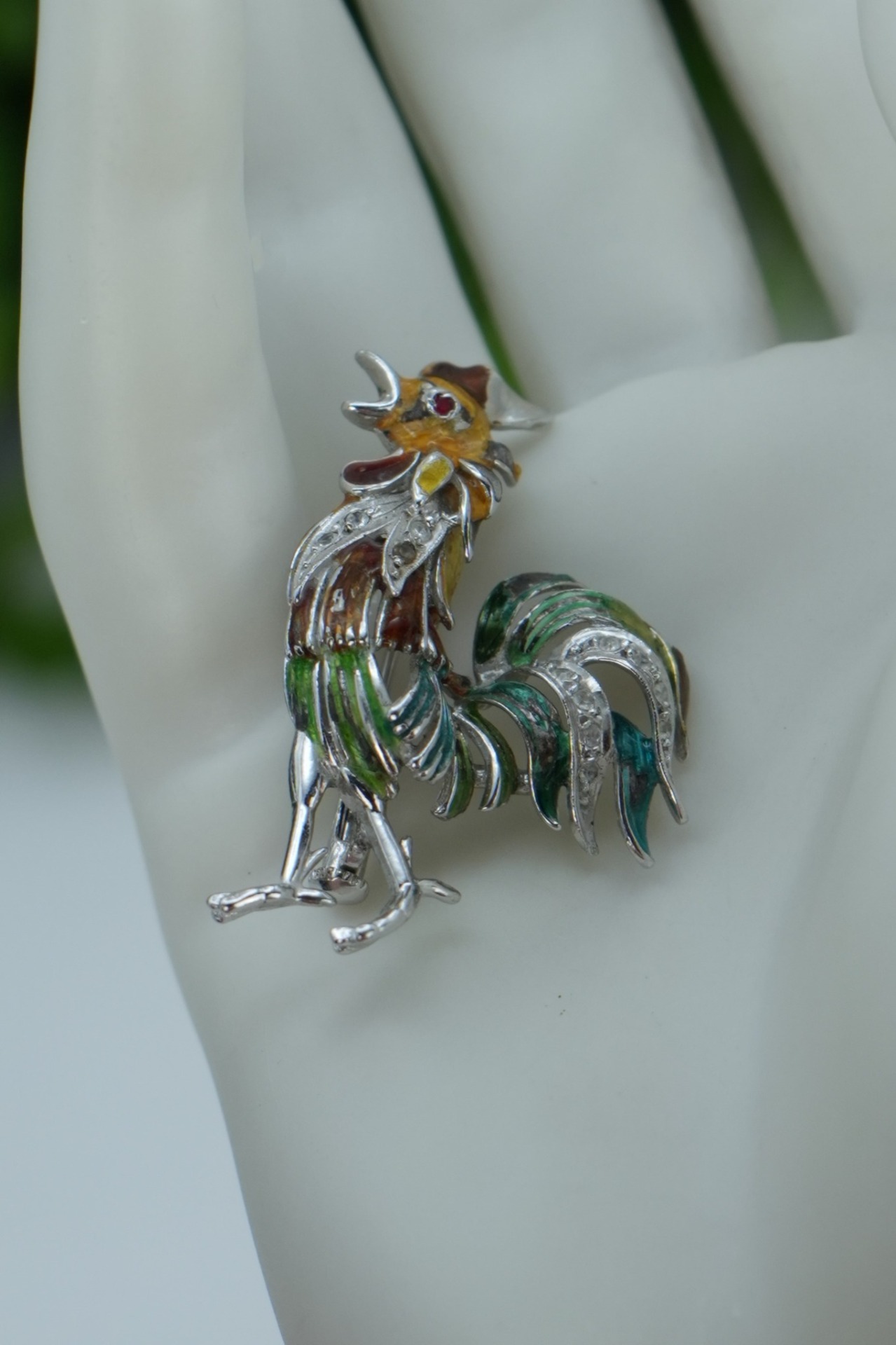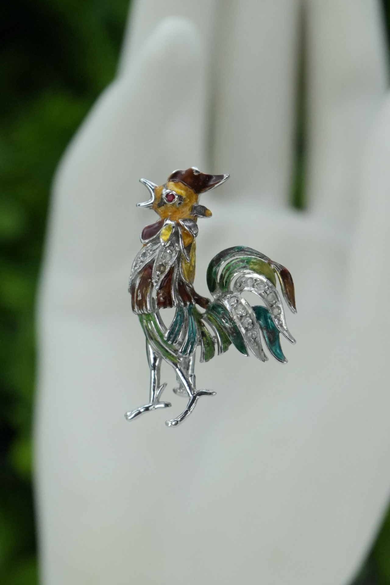 Broșă veche din argint deosebita, cu email și pietre cubic zirconia.