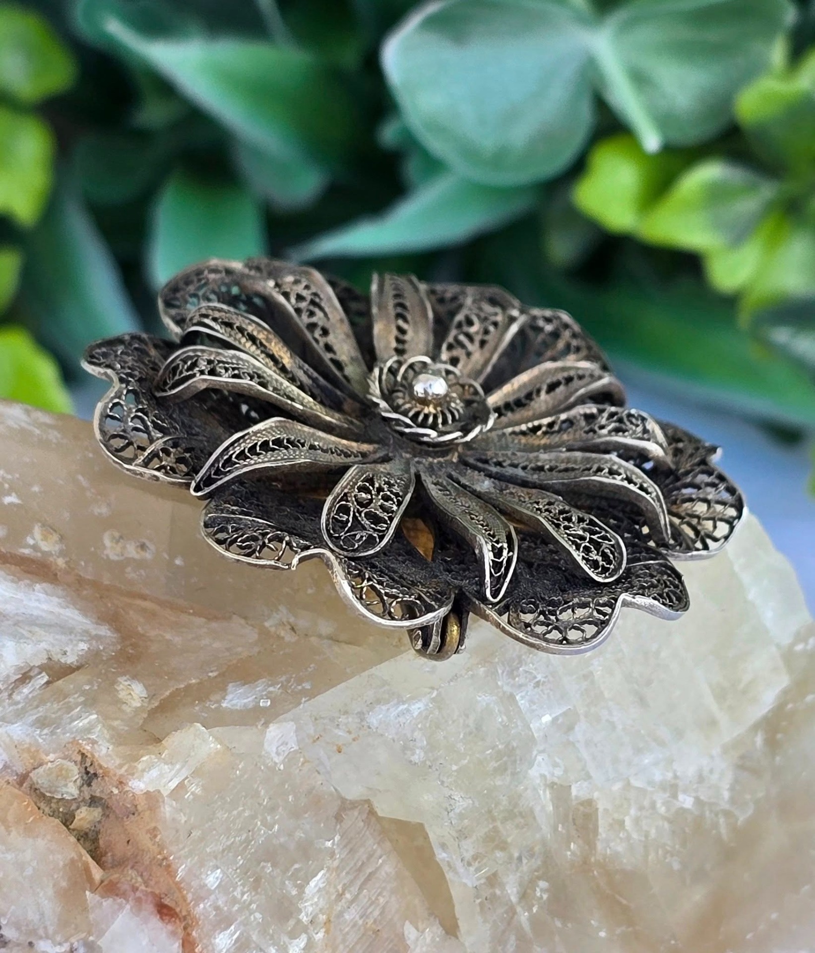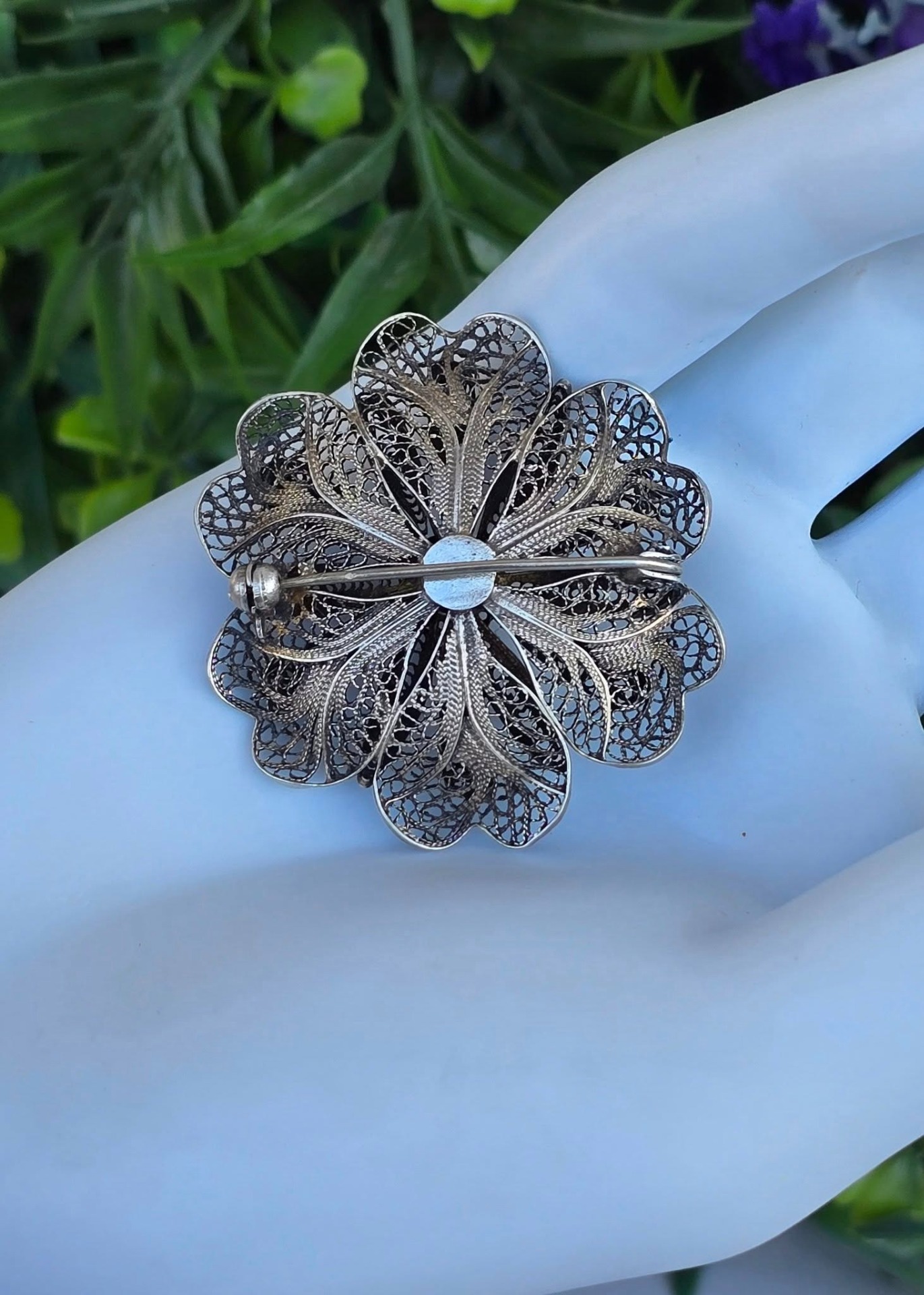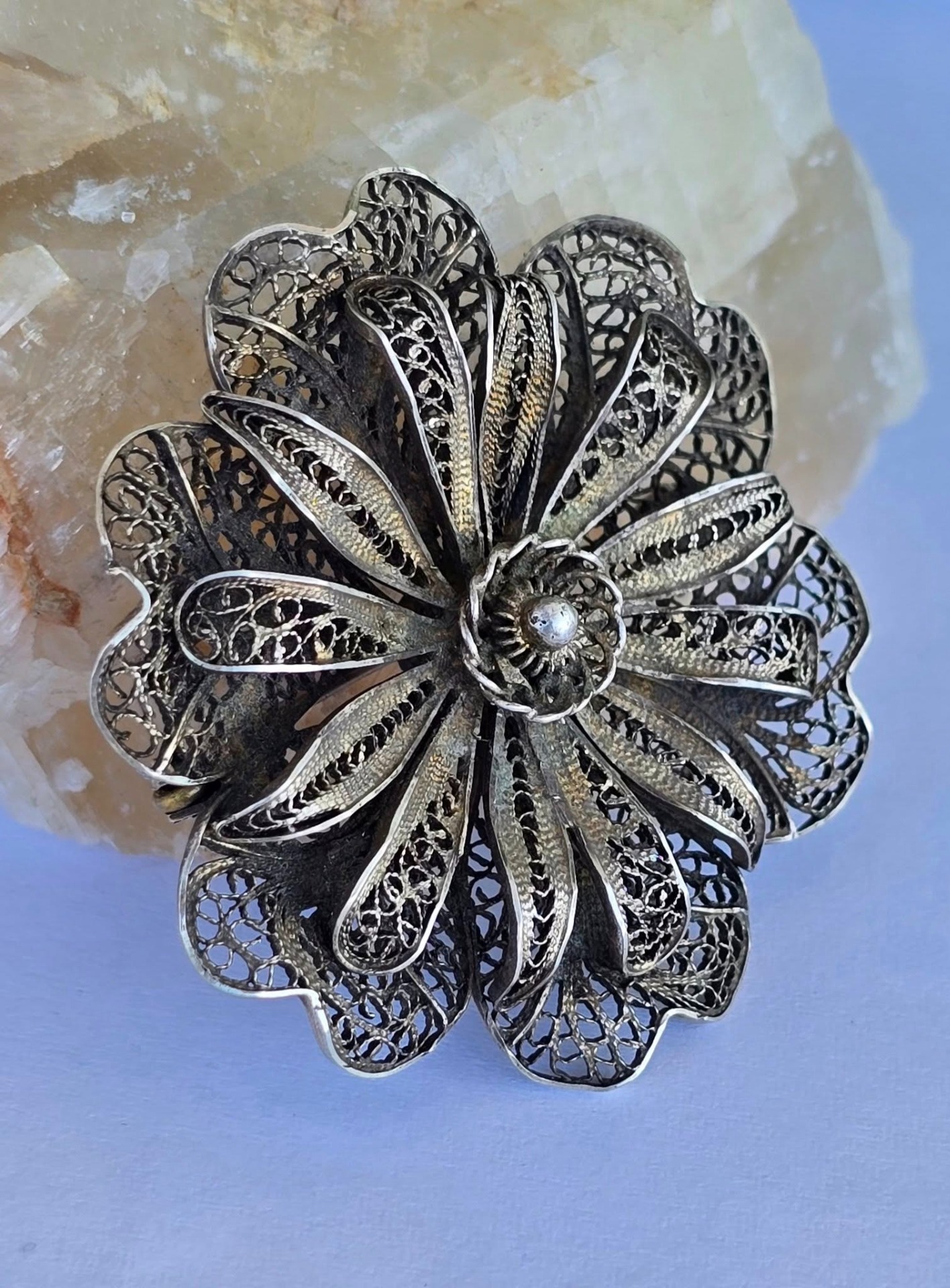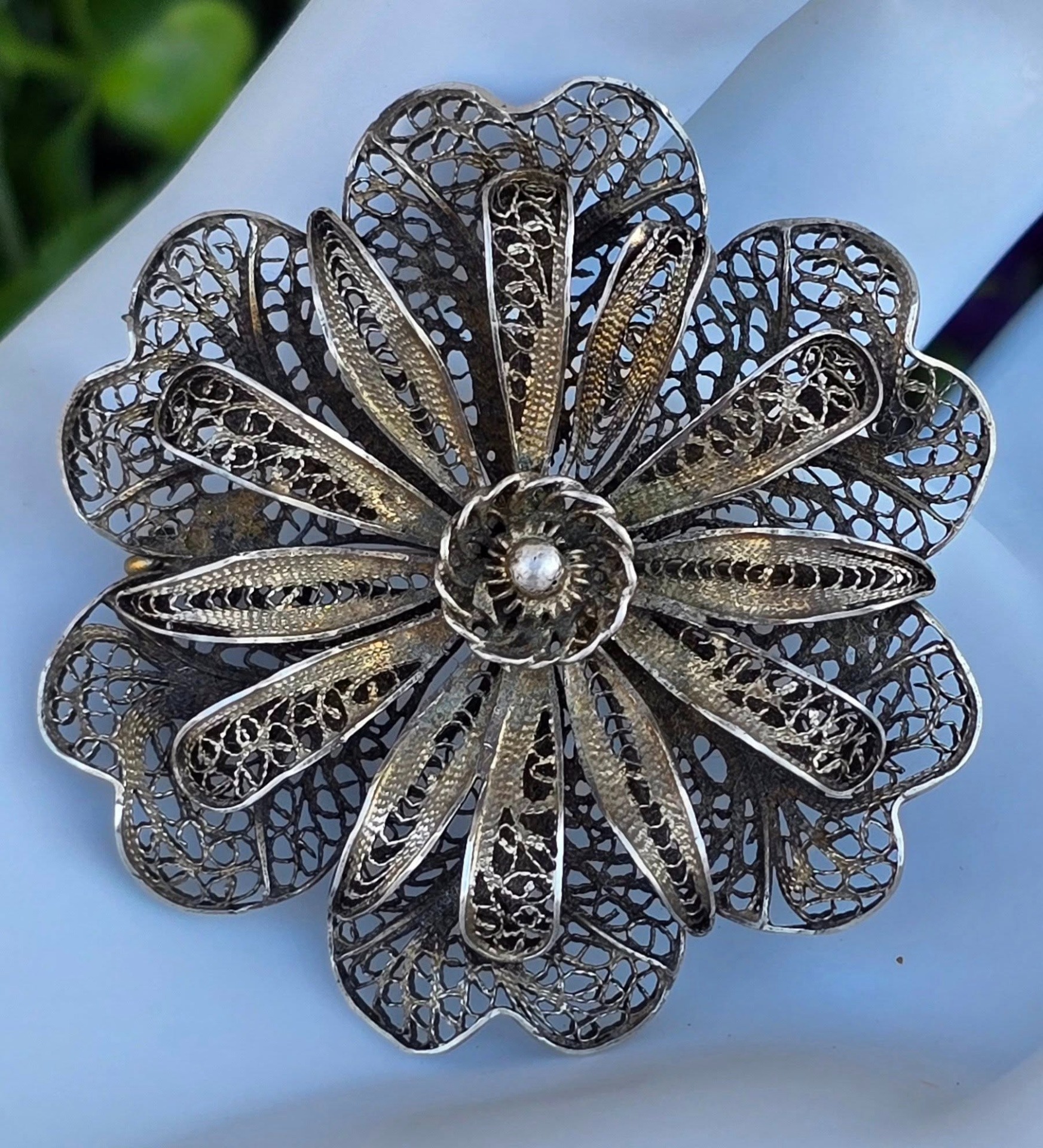 Broșă veche din argint, manufactură de excepție în filigran.