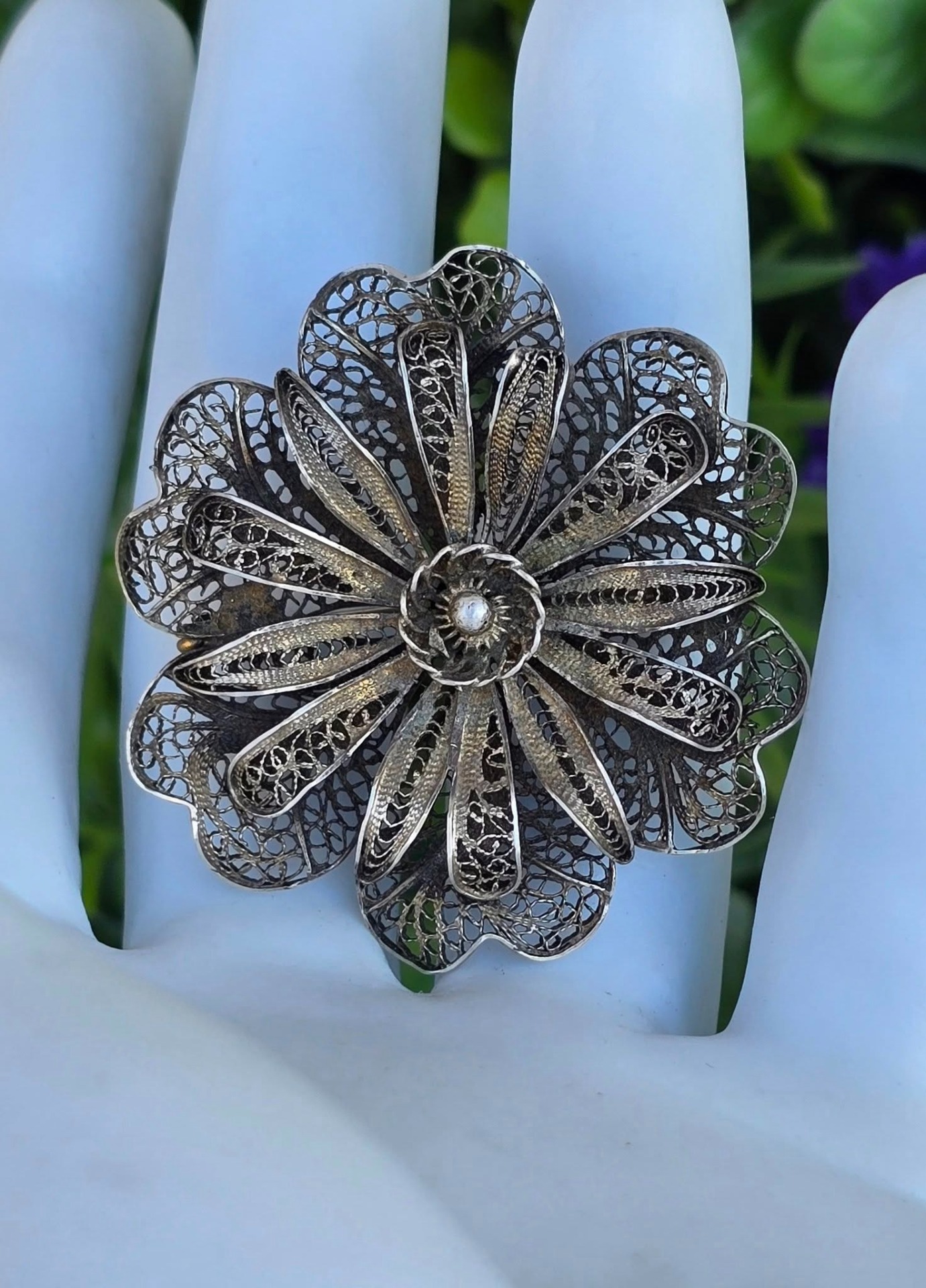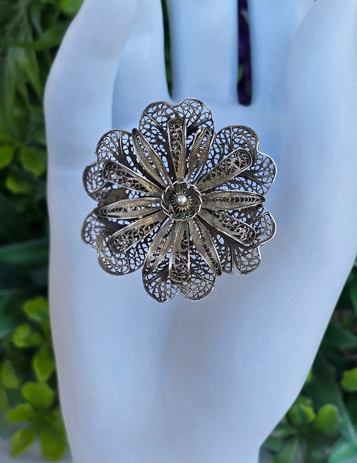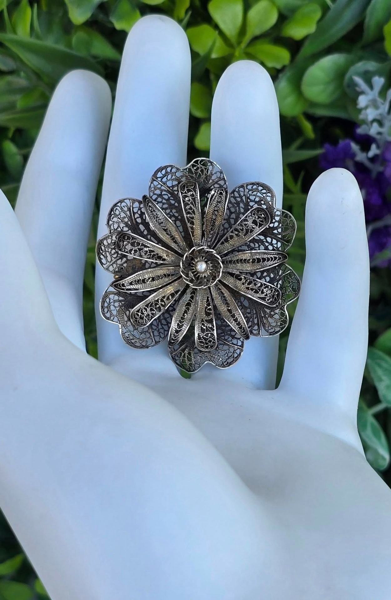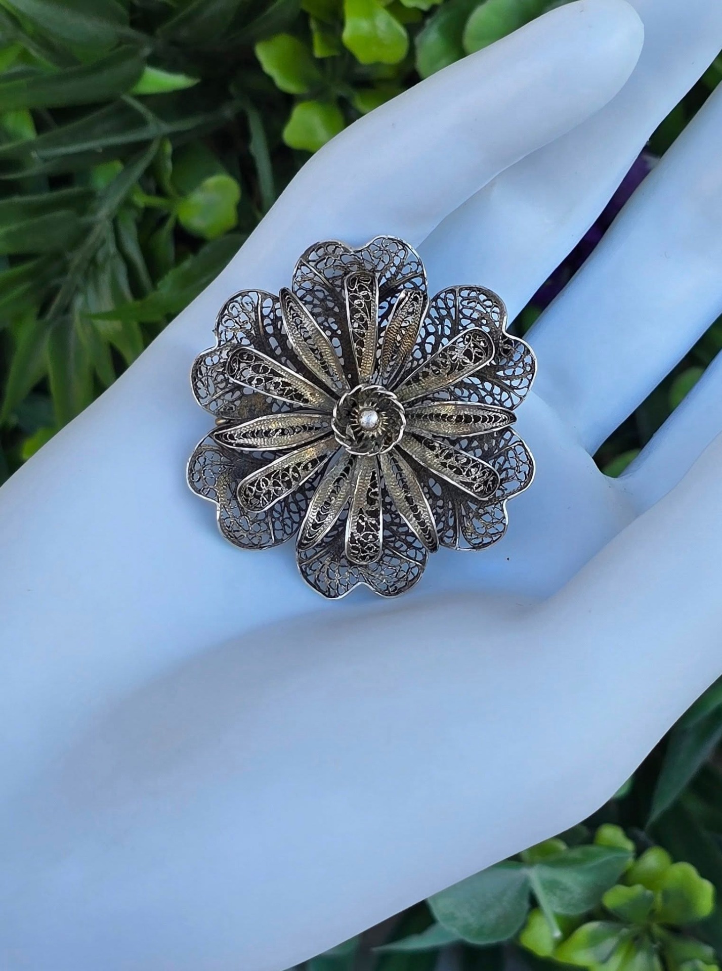 Broșă veche din argint, manufactură de excepție în filigran.