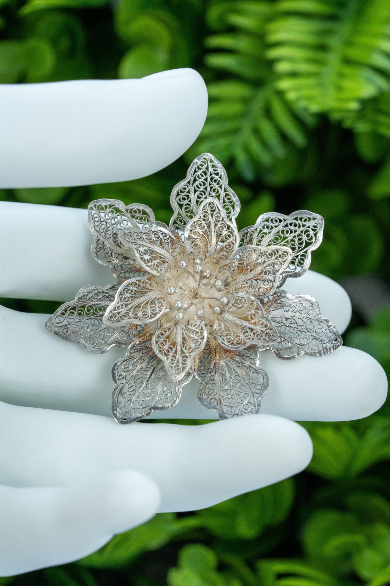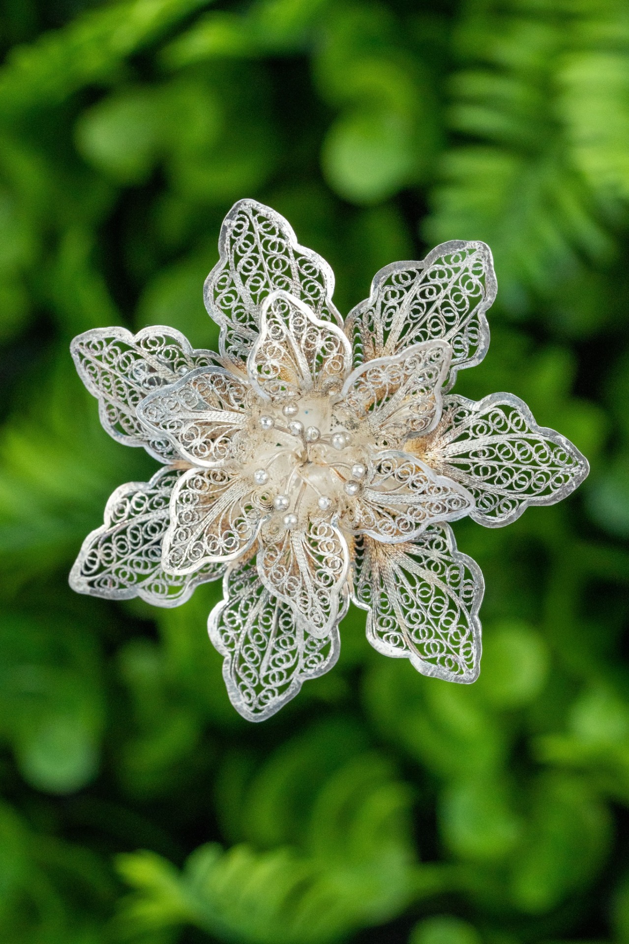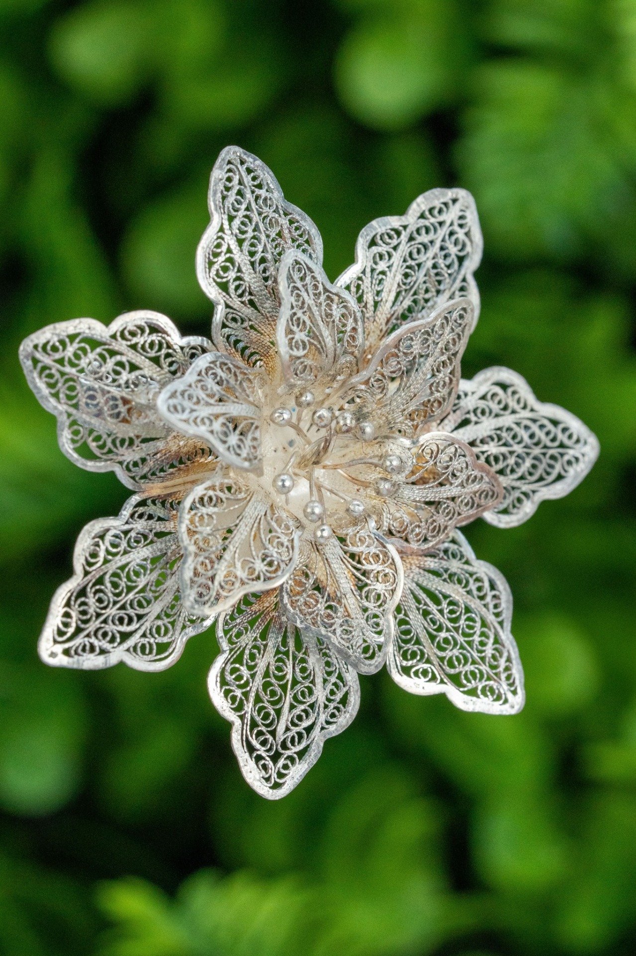 Broșă veche din argint, manufactură deosebită in filigran.