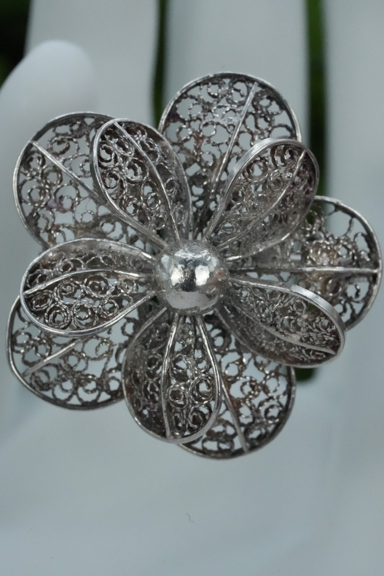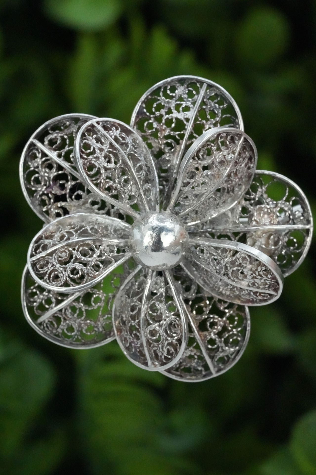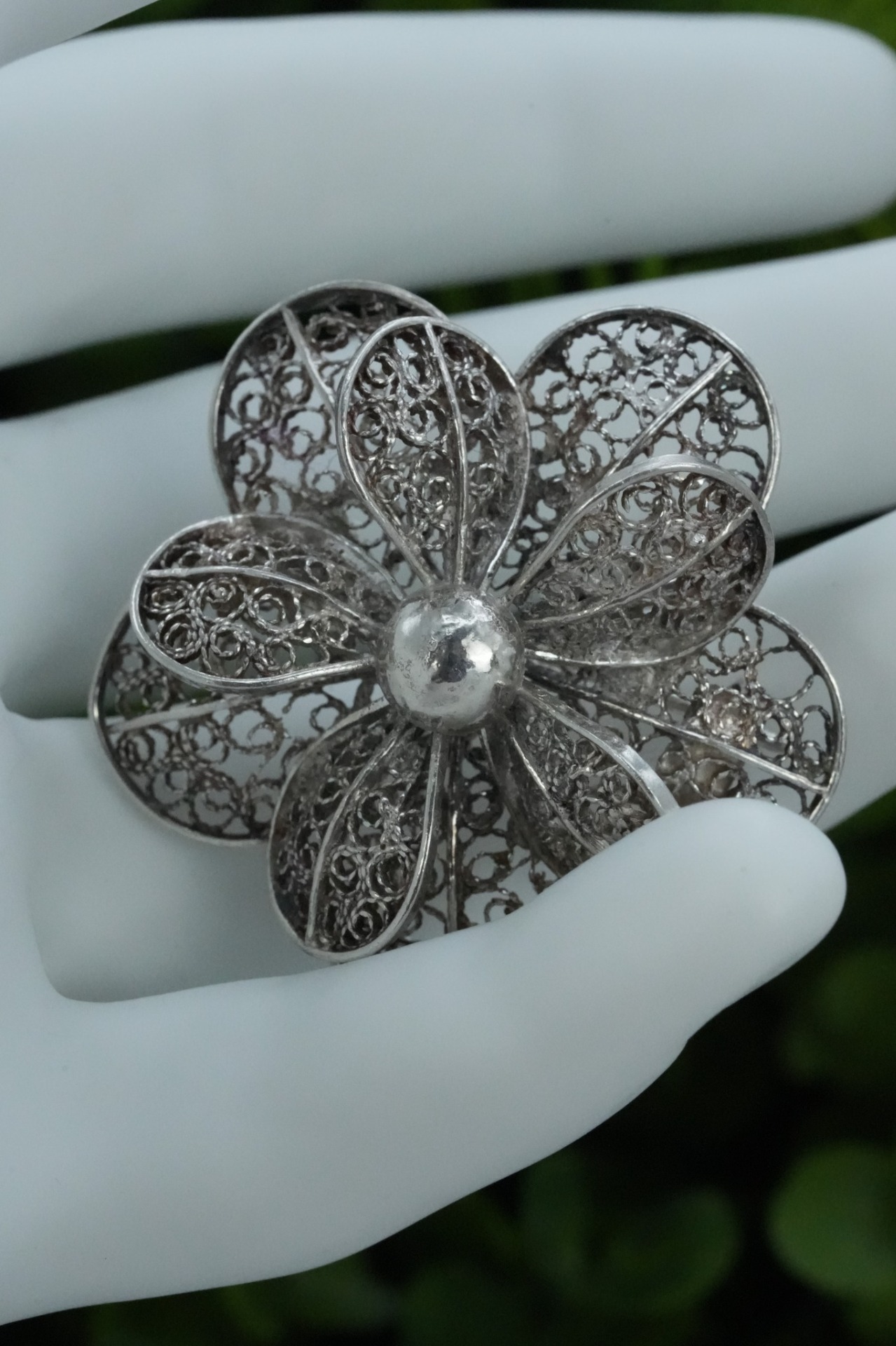 Broșă veche, din argint, manufactură deosebită în filigran.