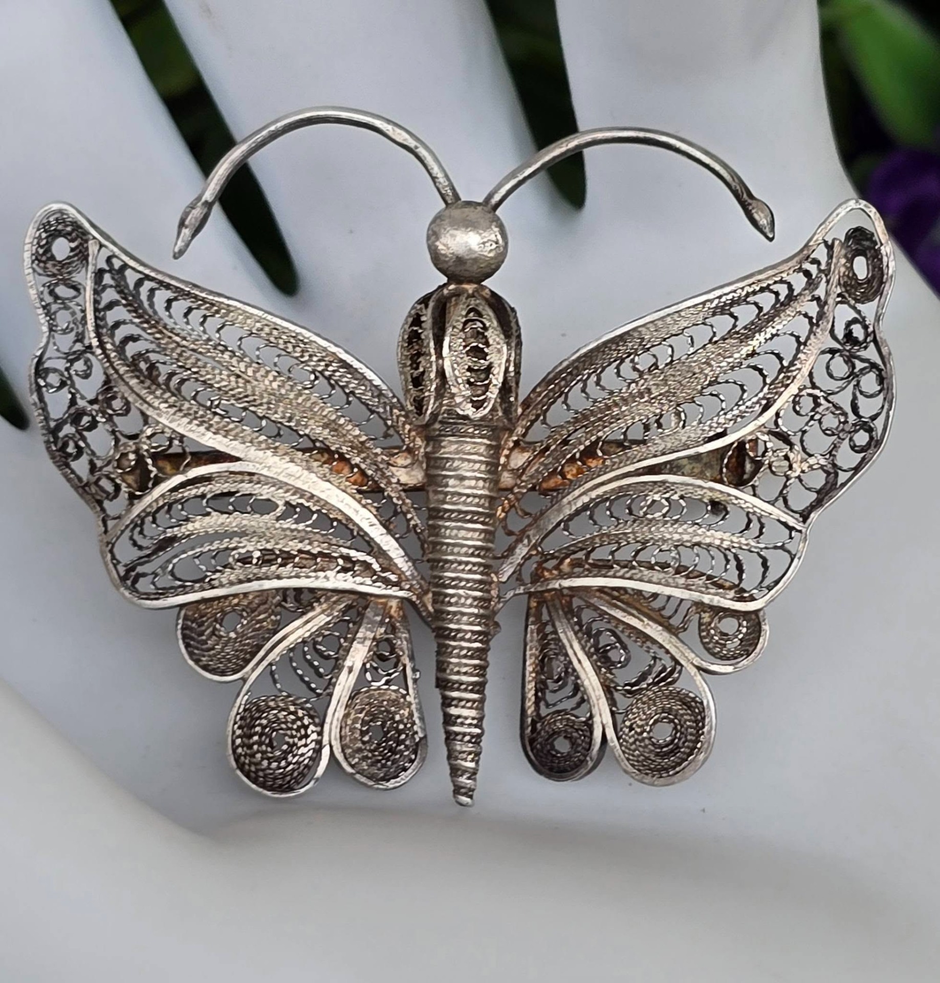Broșă veche din argint, manufactură excepțională în filigran (prima jum.a sec.XX, Albania).