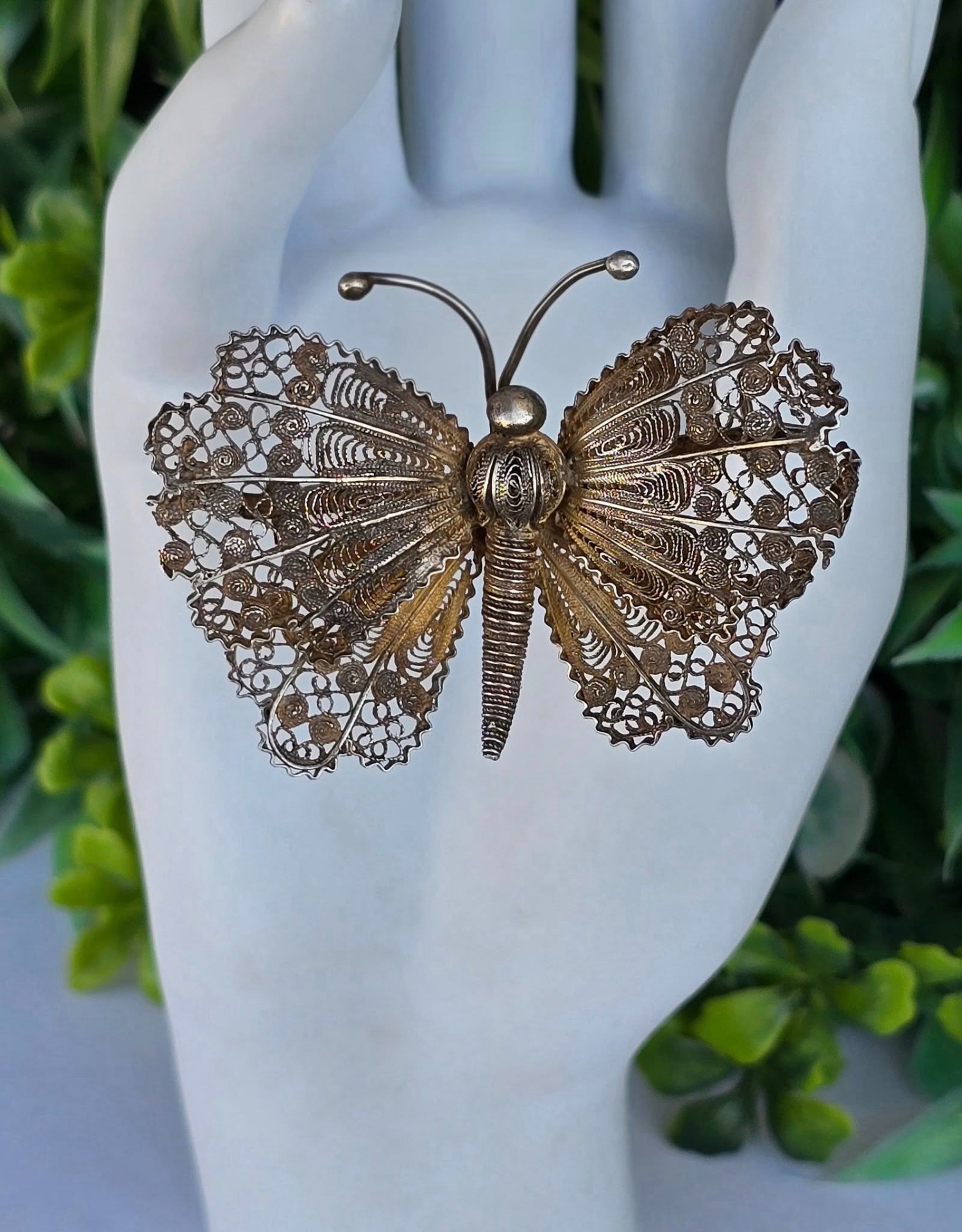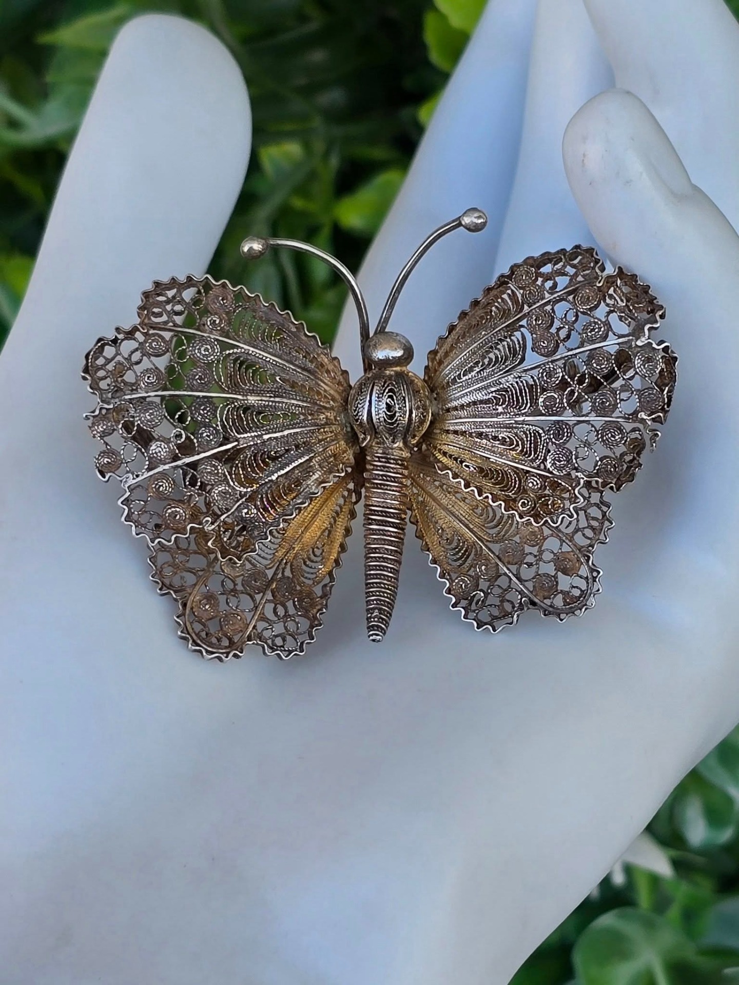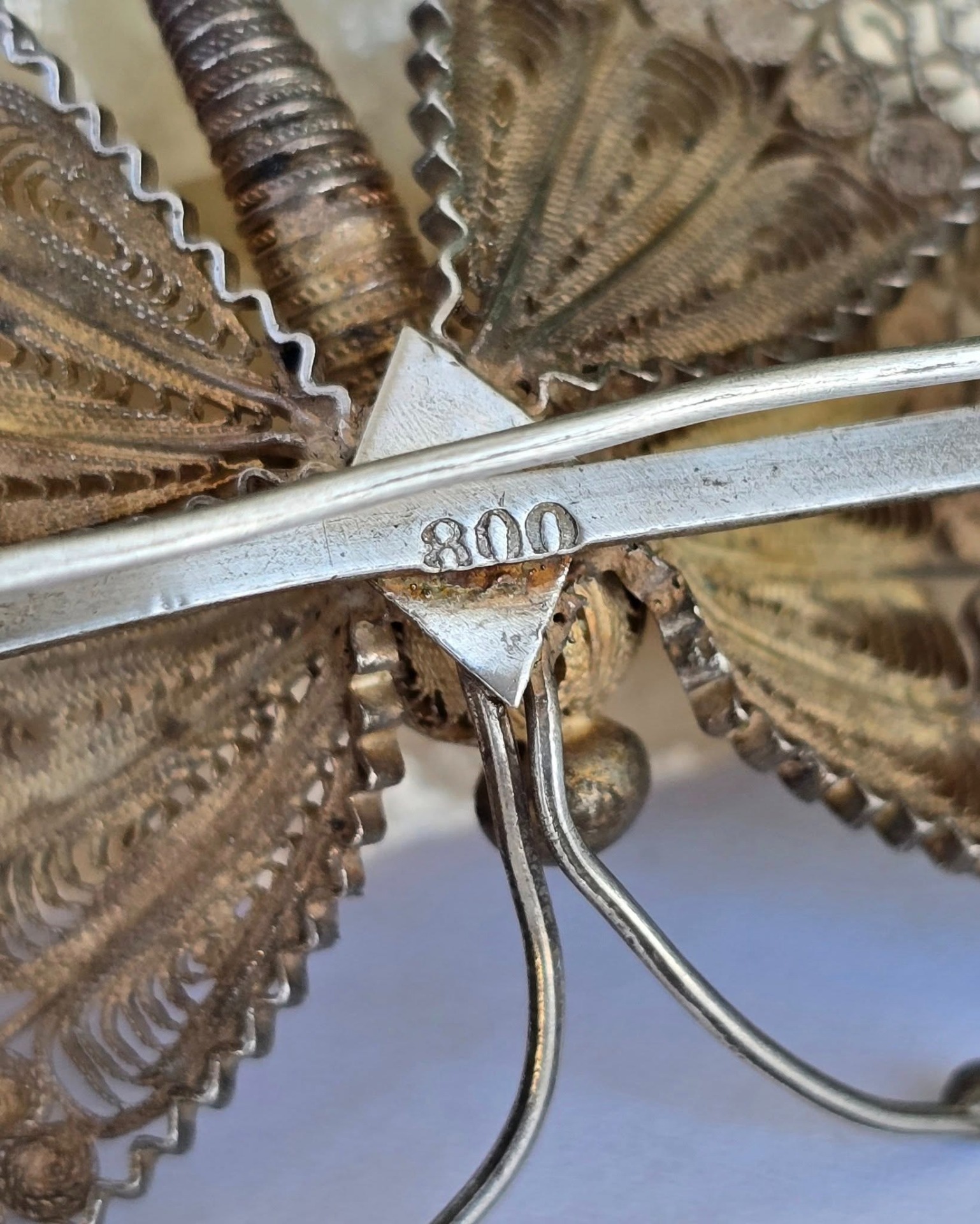 Broșă veche grandioasă, din argint, manufactură deosebită în filigran.