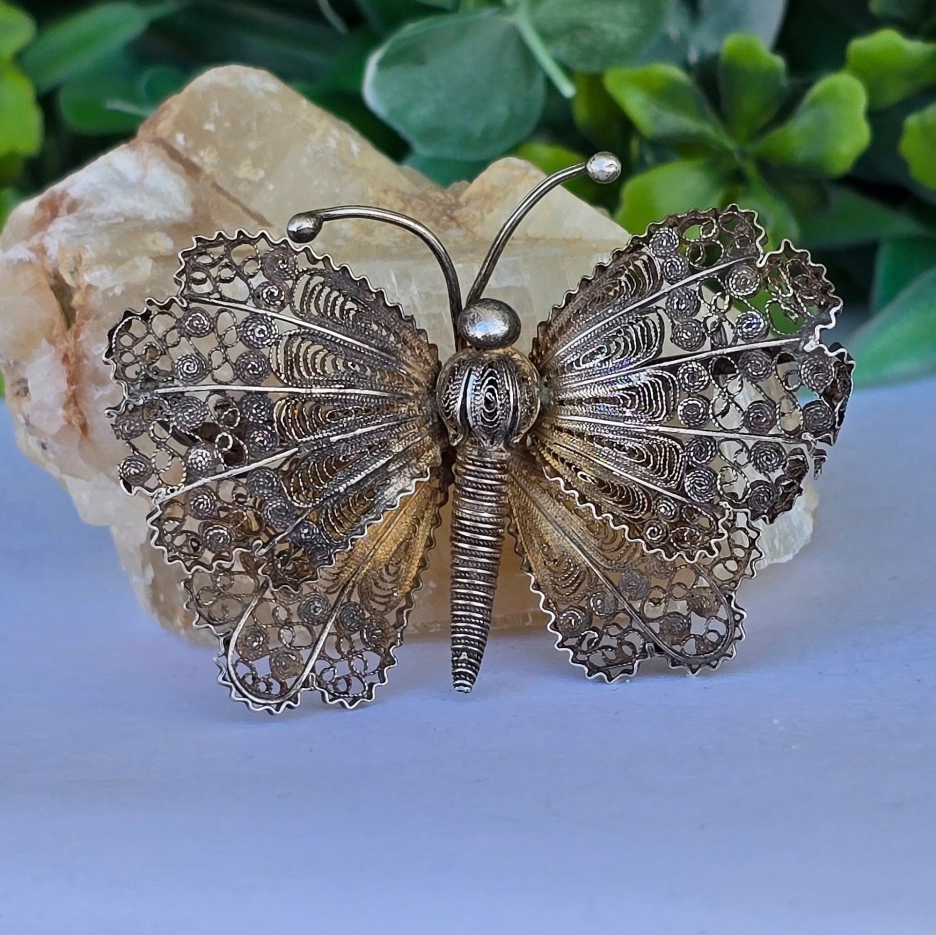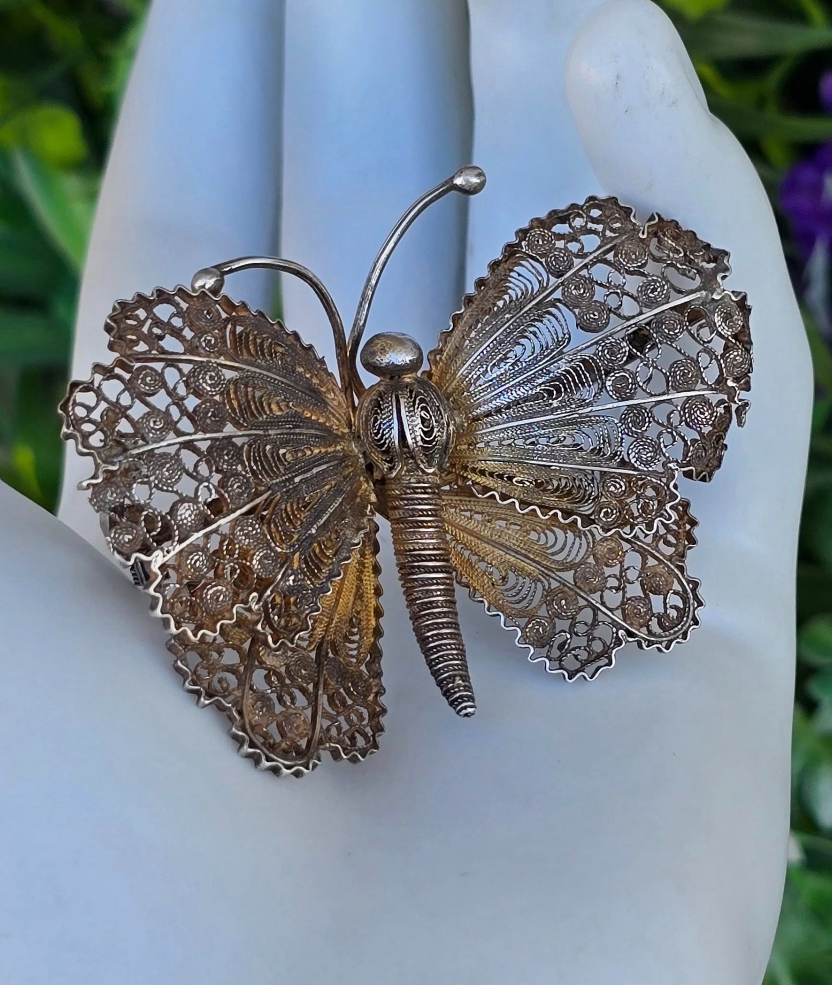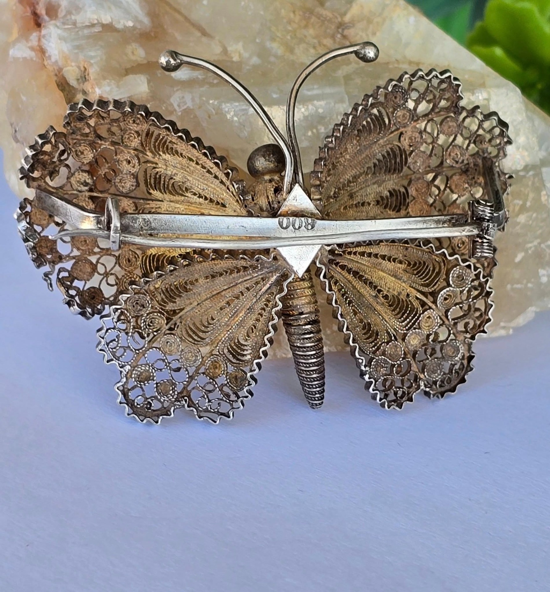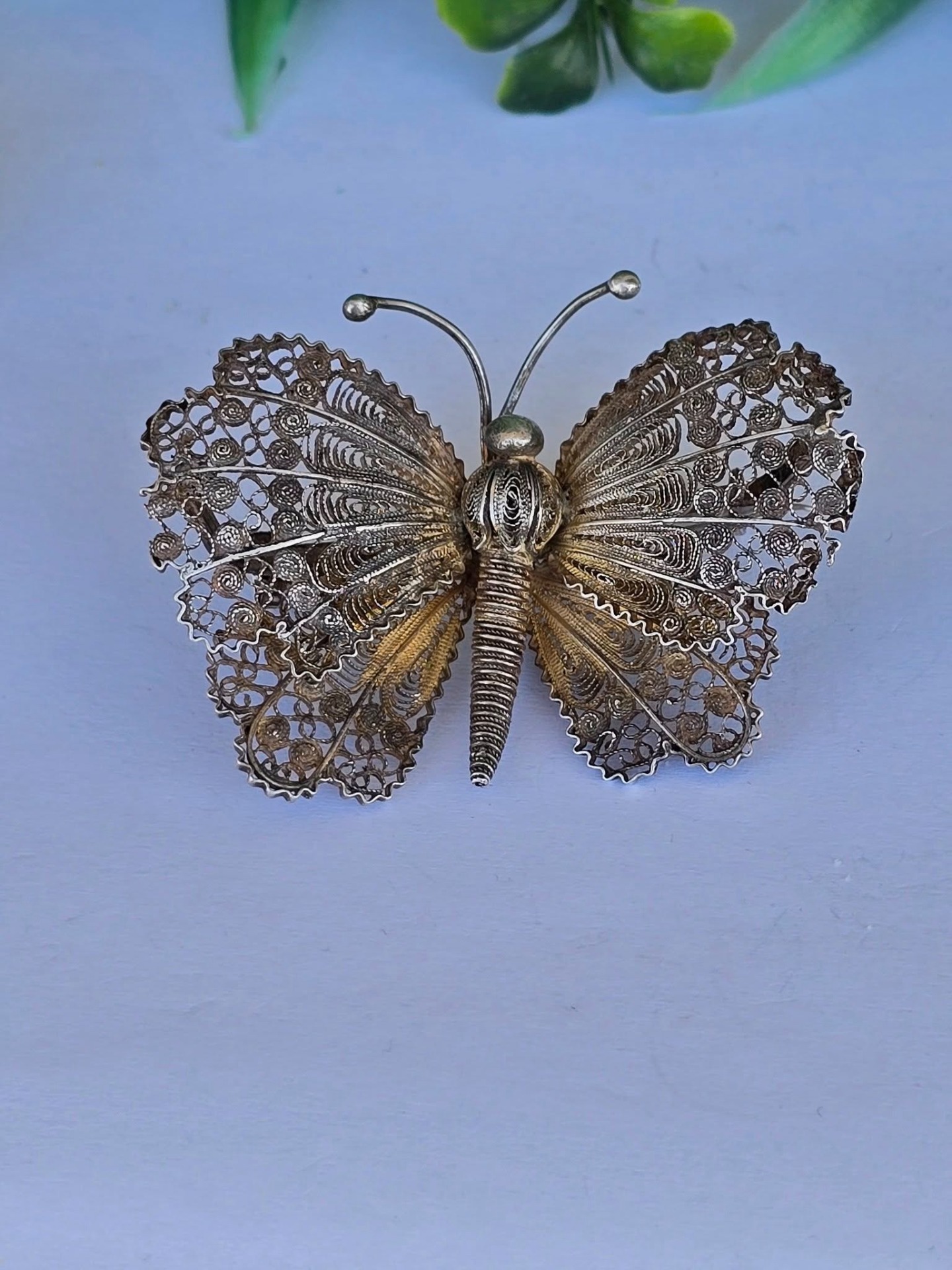 Broșă veche grandioasă, din argint, manufactură deosebită în filigran.