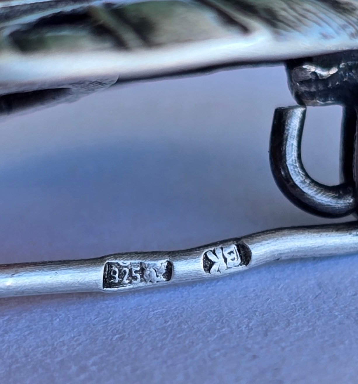 Prezintă marcaj de argint 925, marcaj specific polonez de garanție și marcaj de meșter.