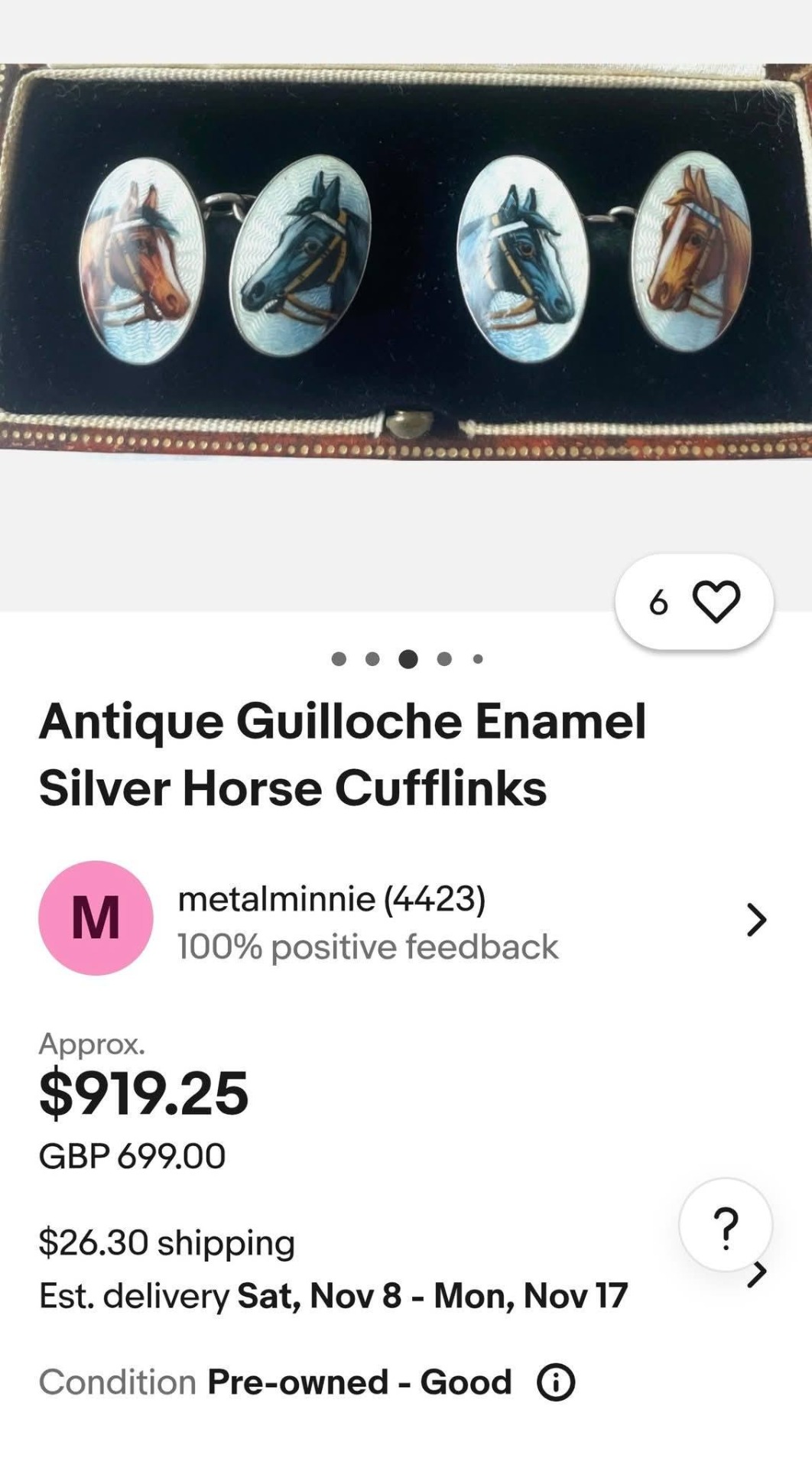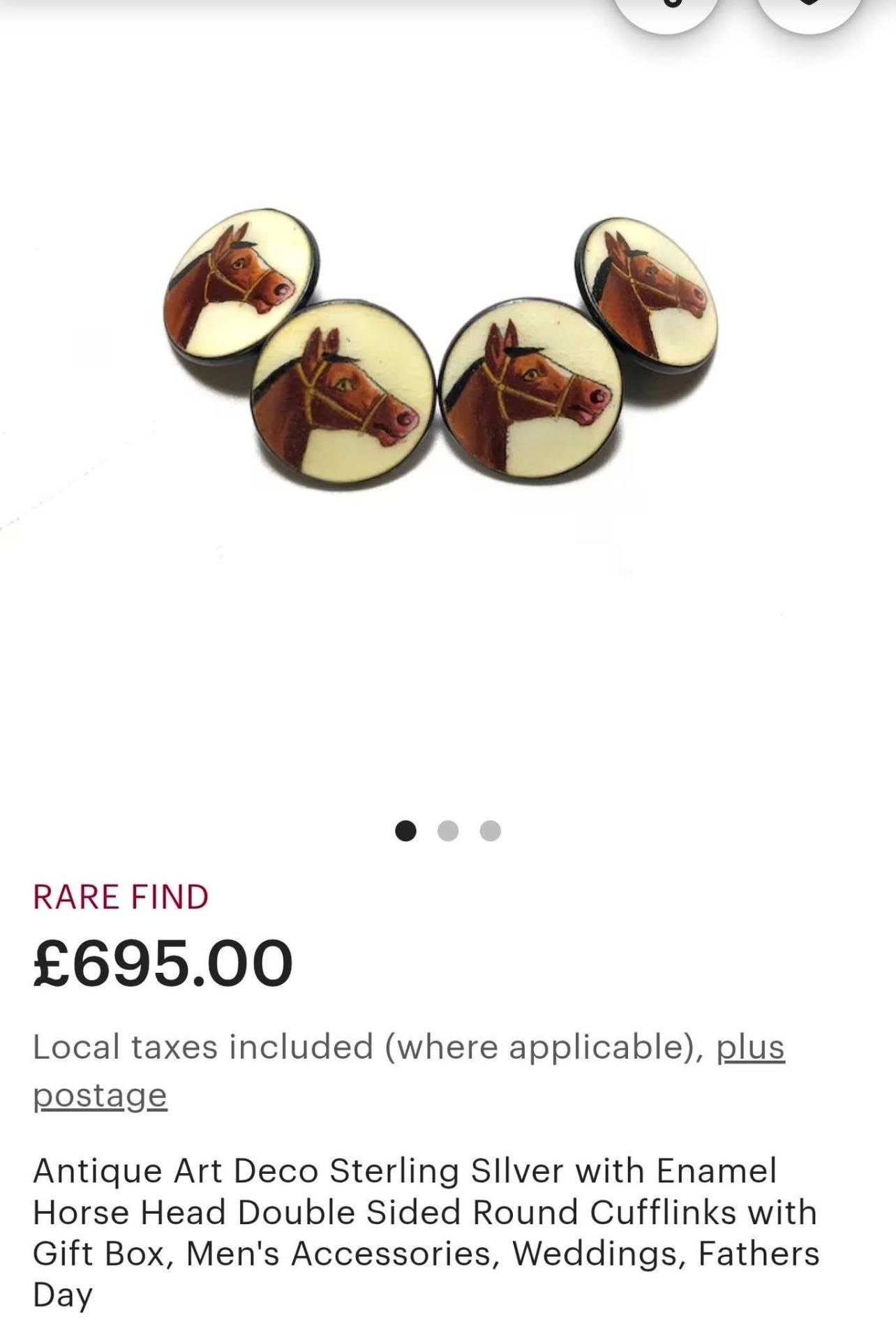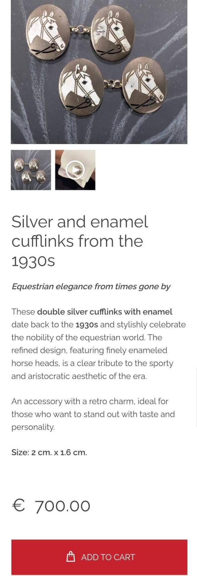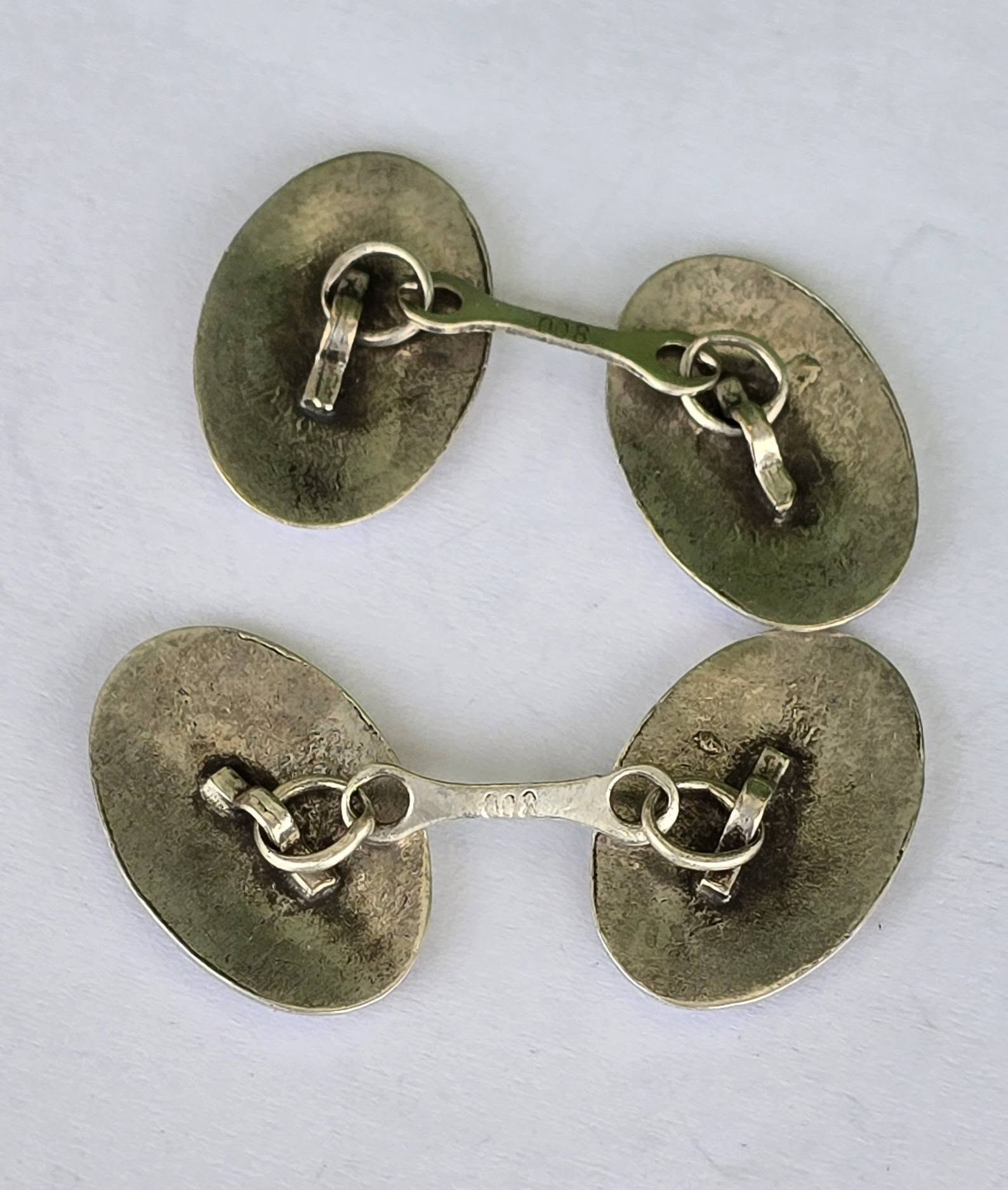 Butoni vechi din argint, cu email pictat manual, rari, de colecție (anii 1920-1930, Italia).
