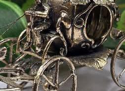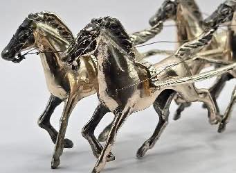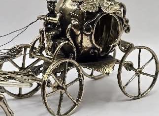 "Caleașca Cenușăresei" din argint, stilizată cu 6 cai și caleașcă sub forma unui dovleac, lucrată manual cu detalii de excepție (cca 1960, Italia).