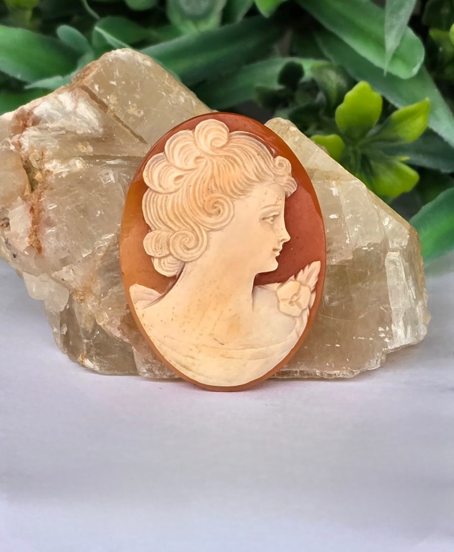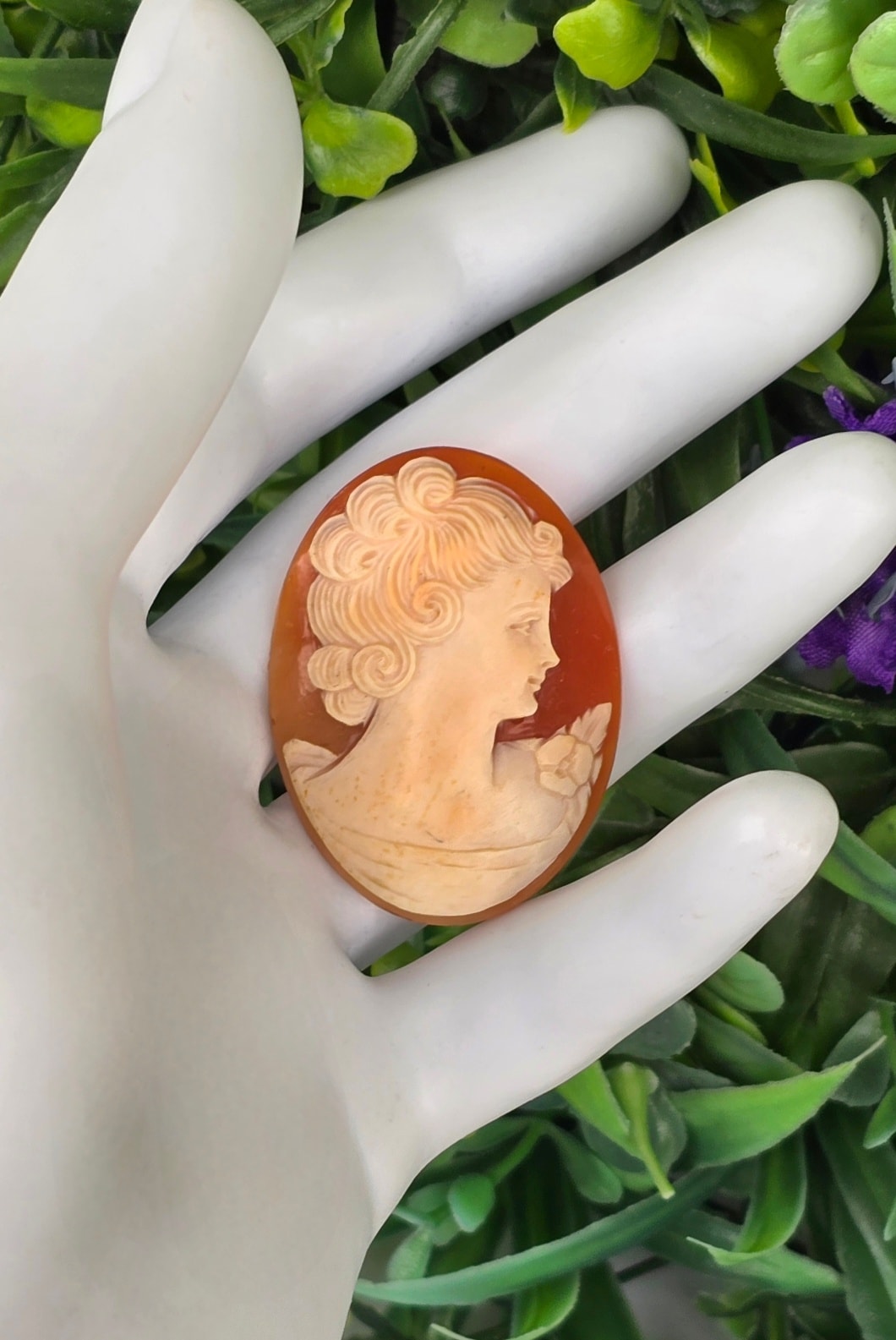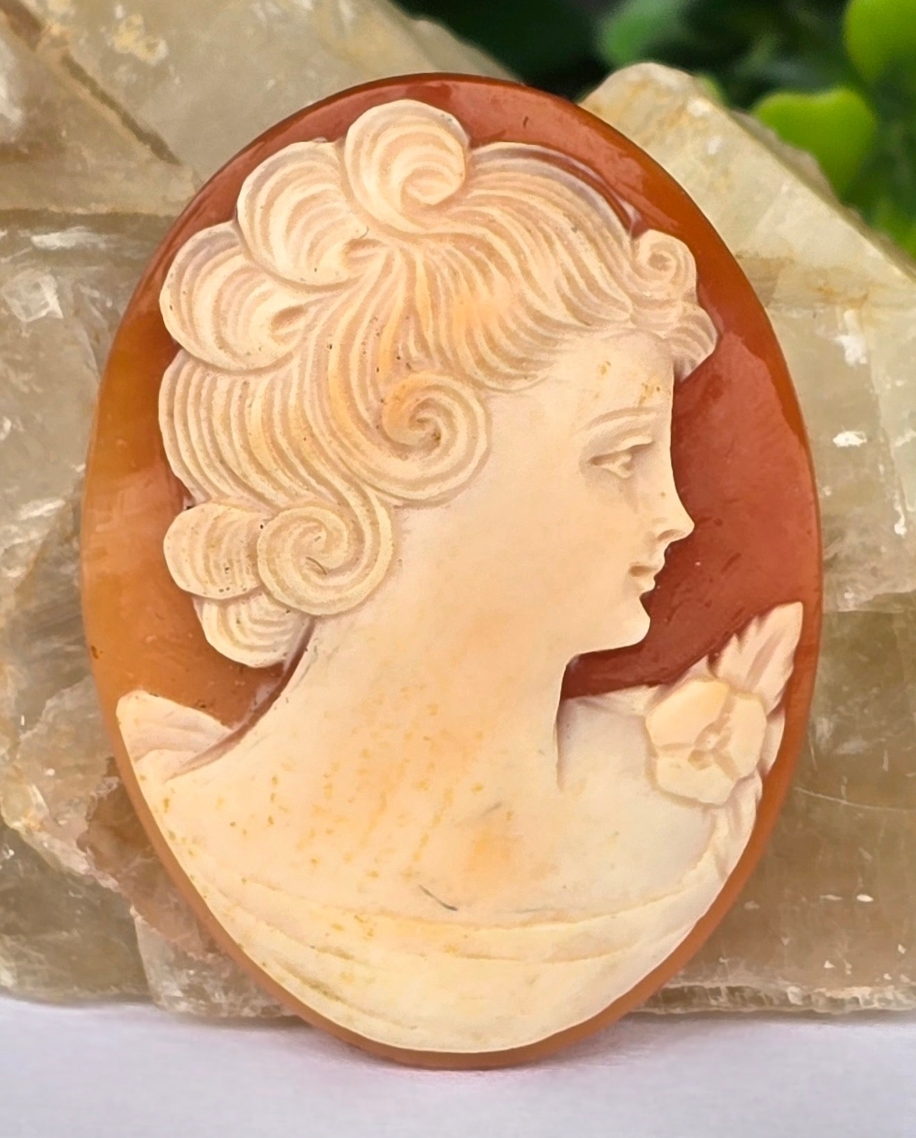 Camee vintage sculptată manual în scoică "Carnelian" naturală.