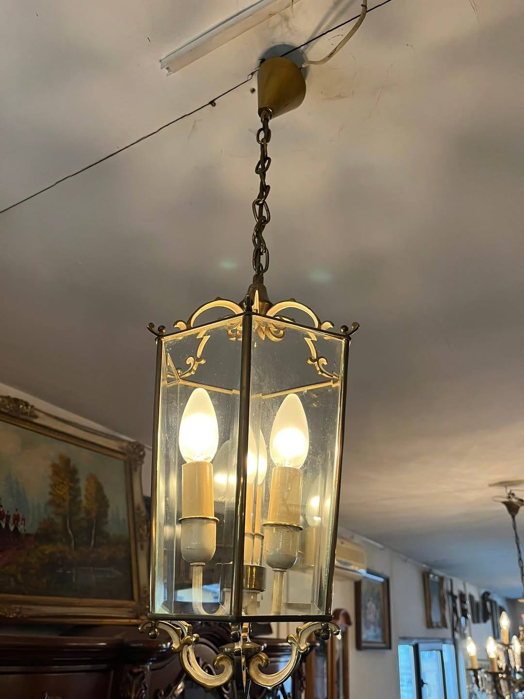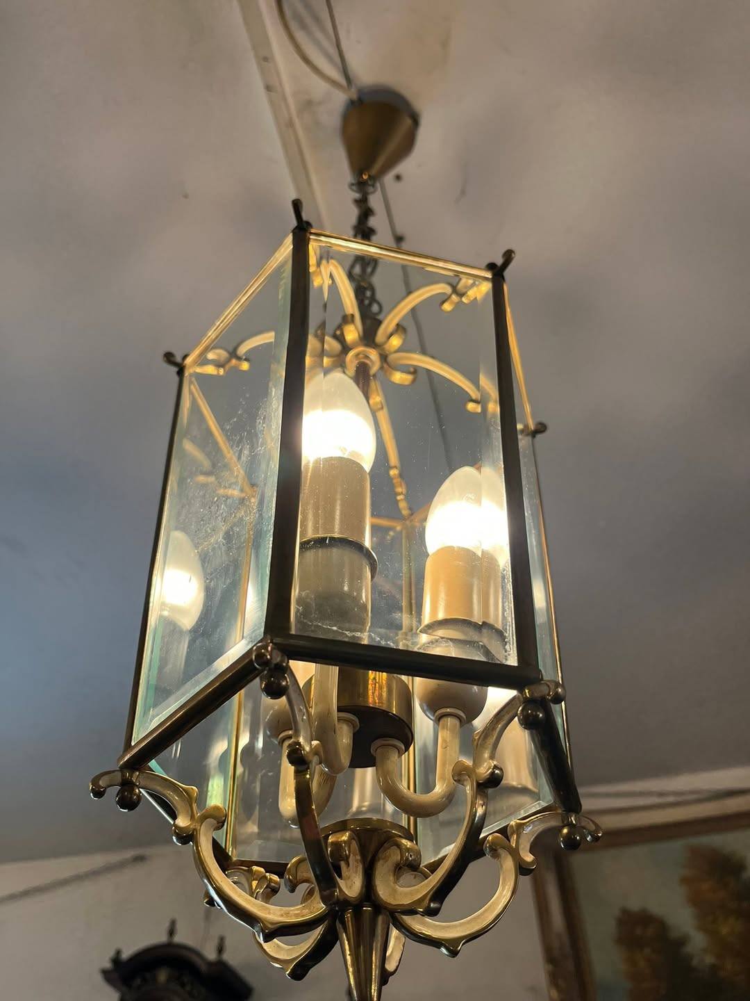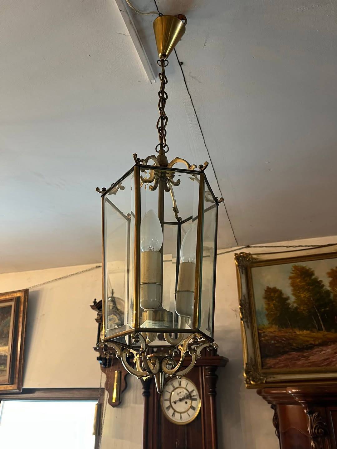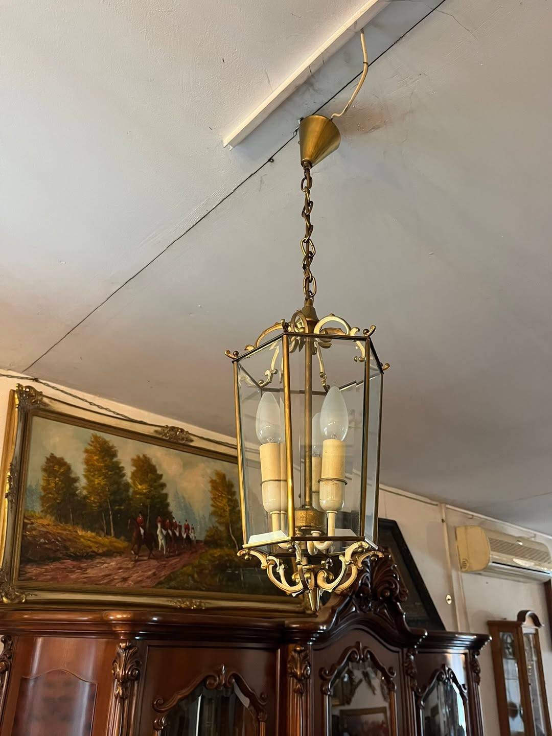 Candelabru din alama si sticla