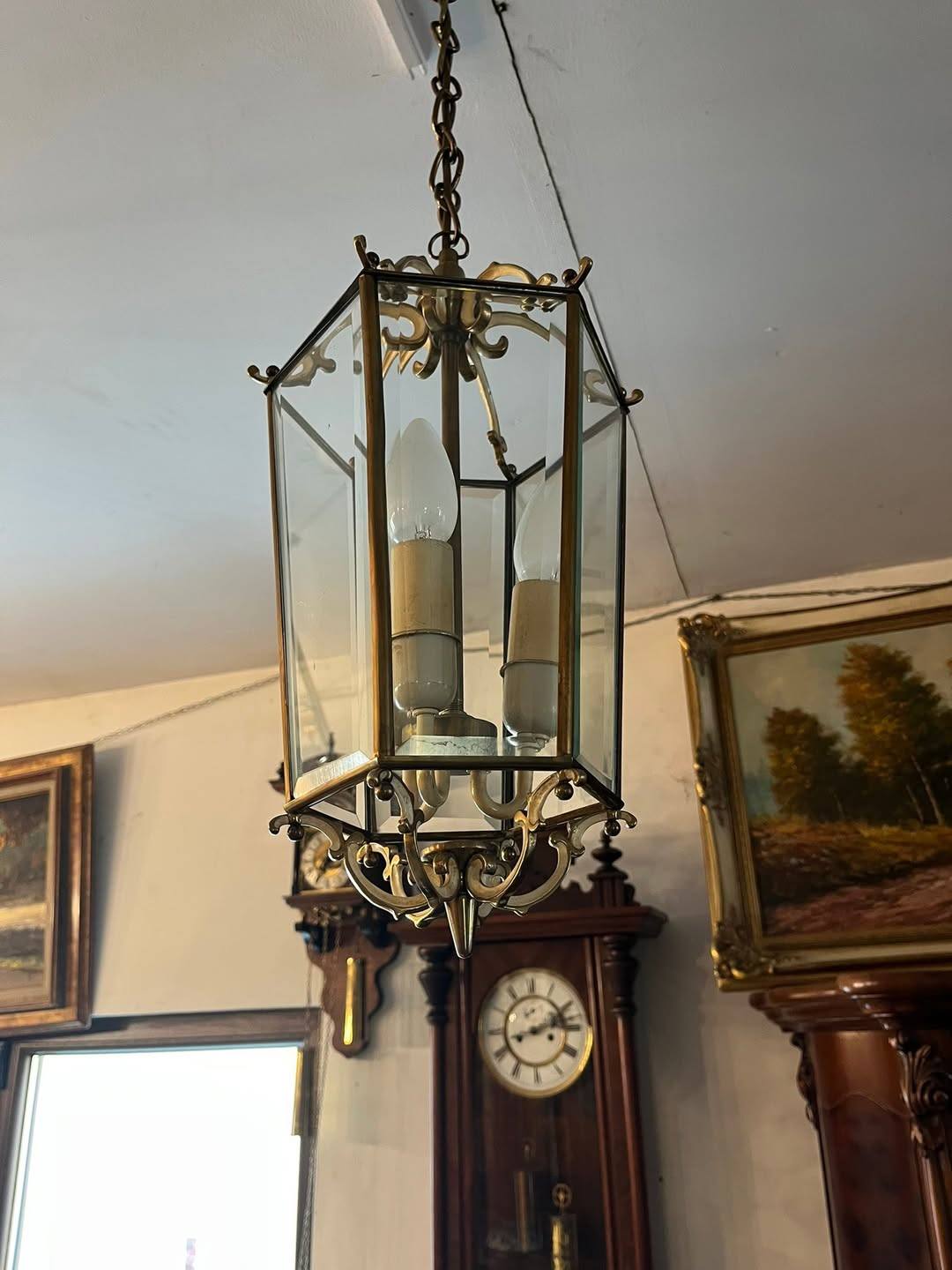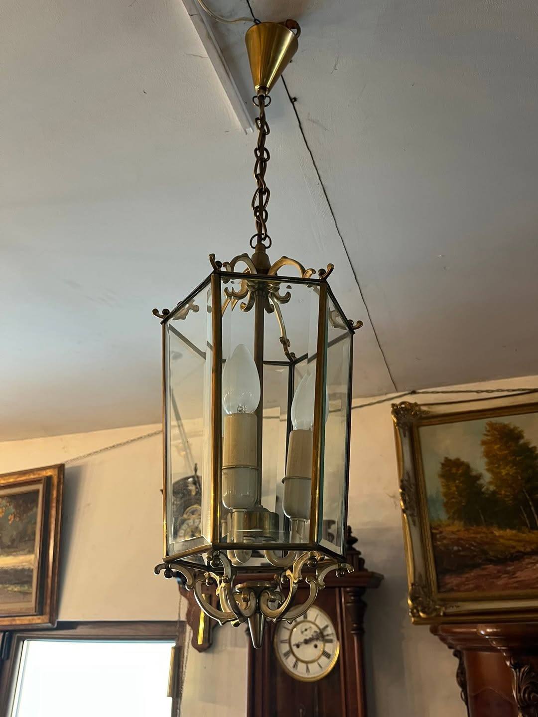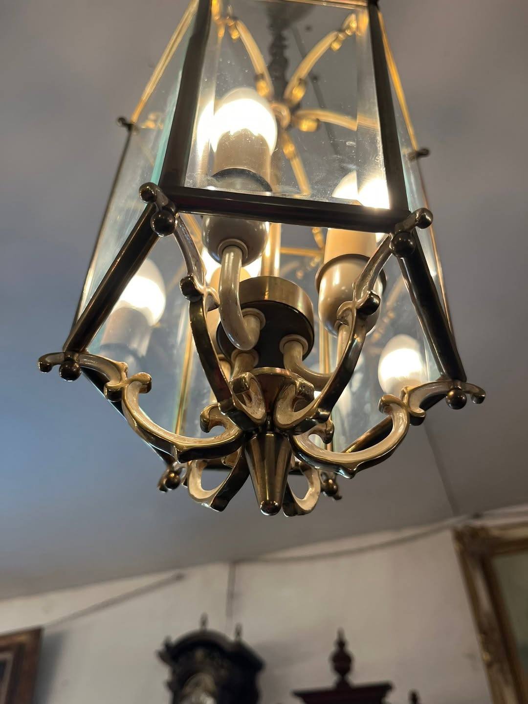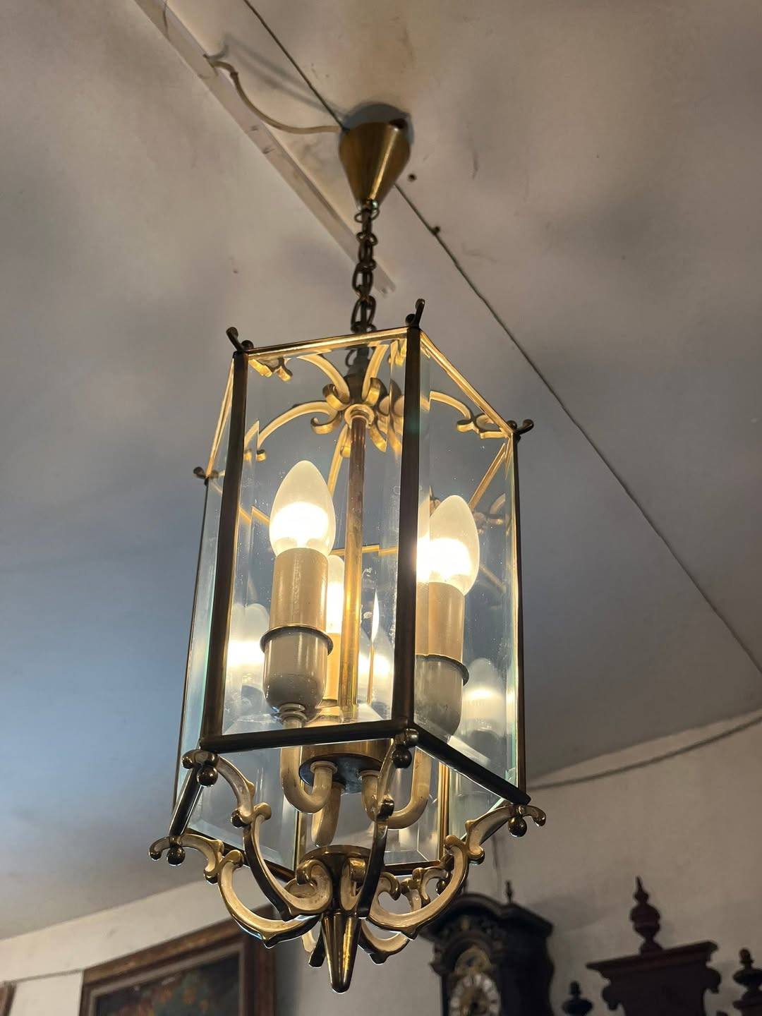 Candelabru din alama si sticla