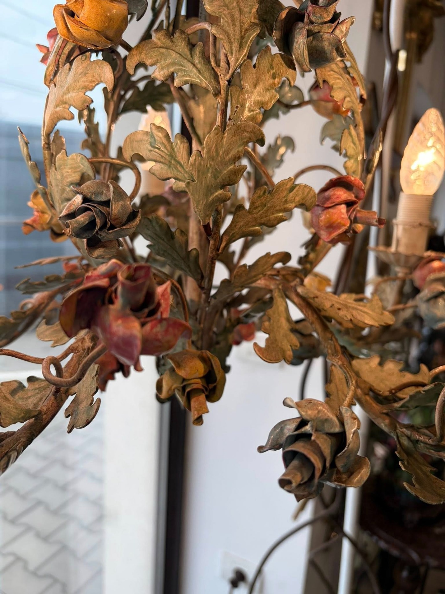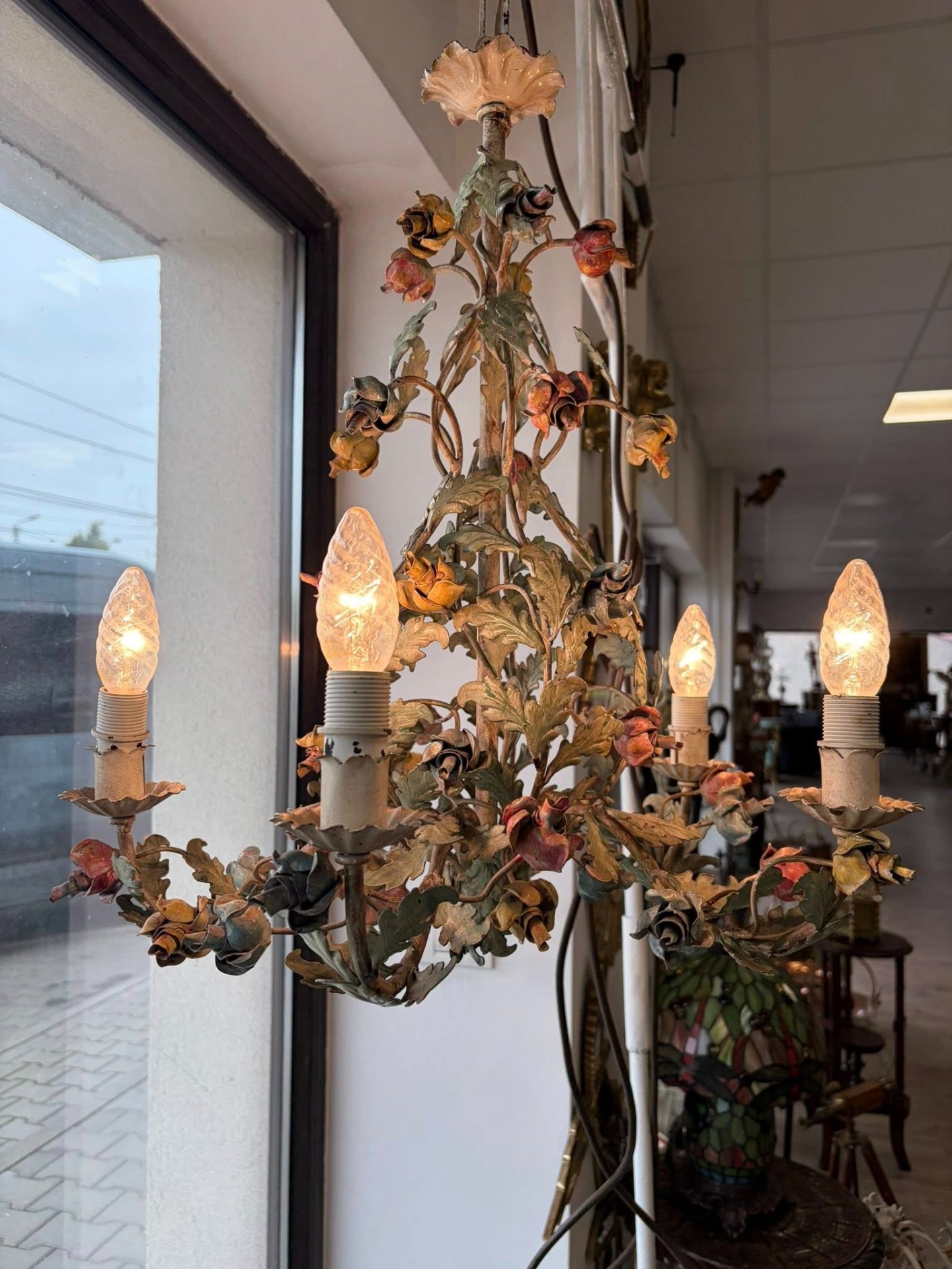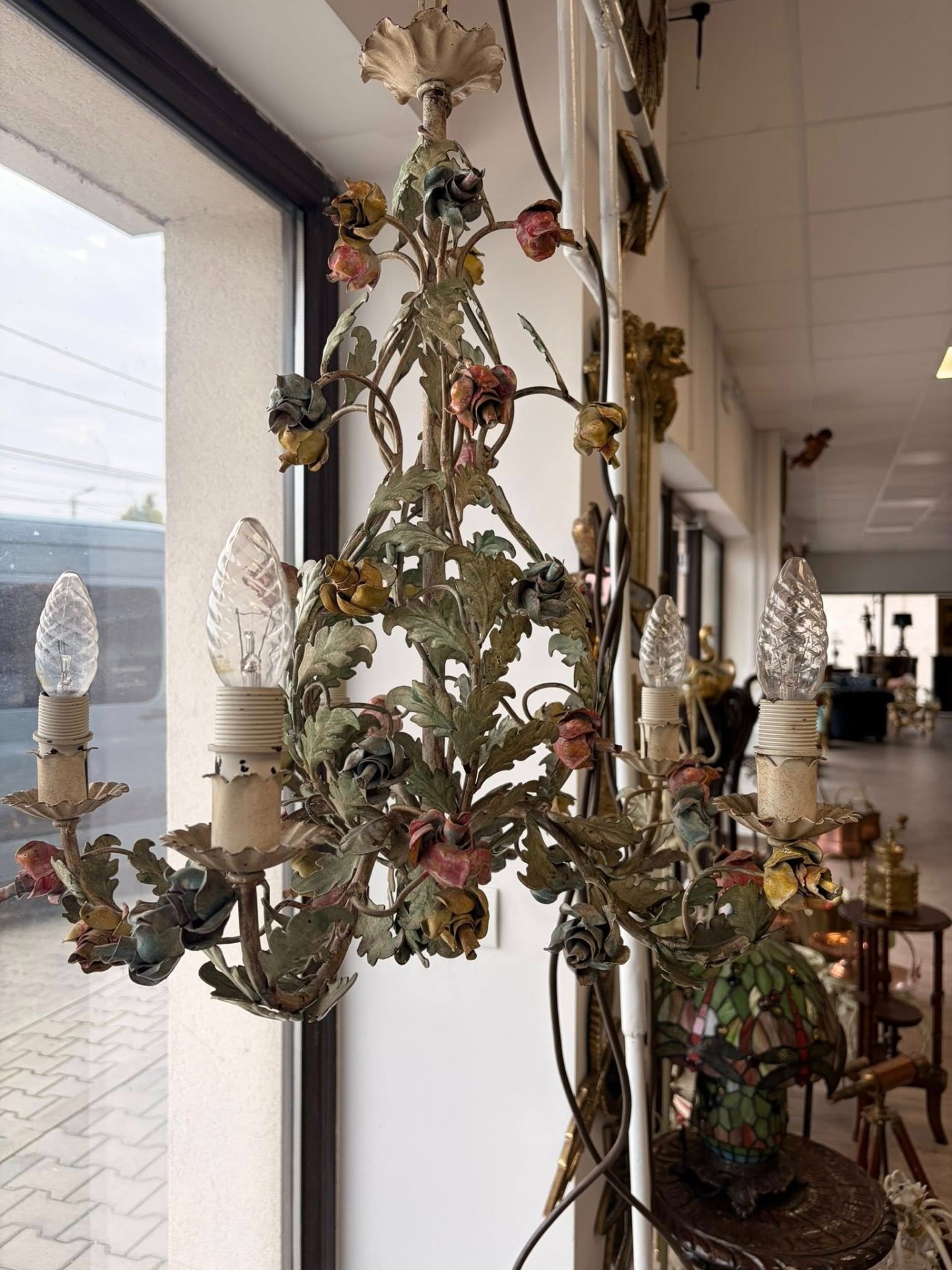Candelabru din metal,pictat manual, cca 1940-50 Belgia.