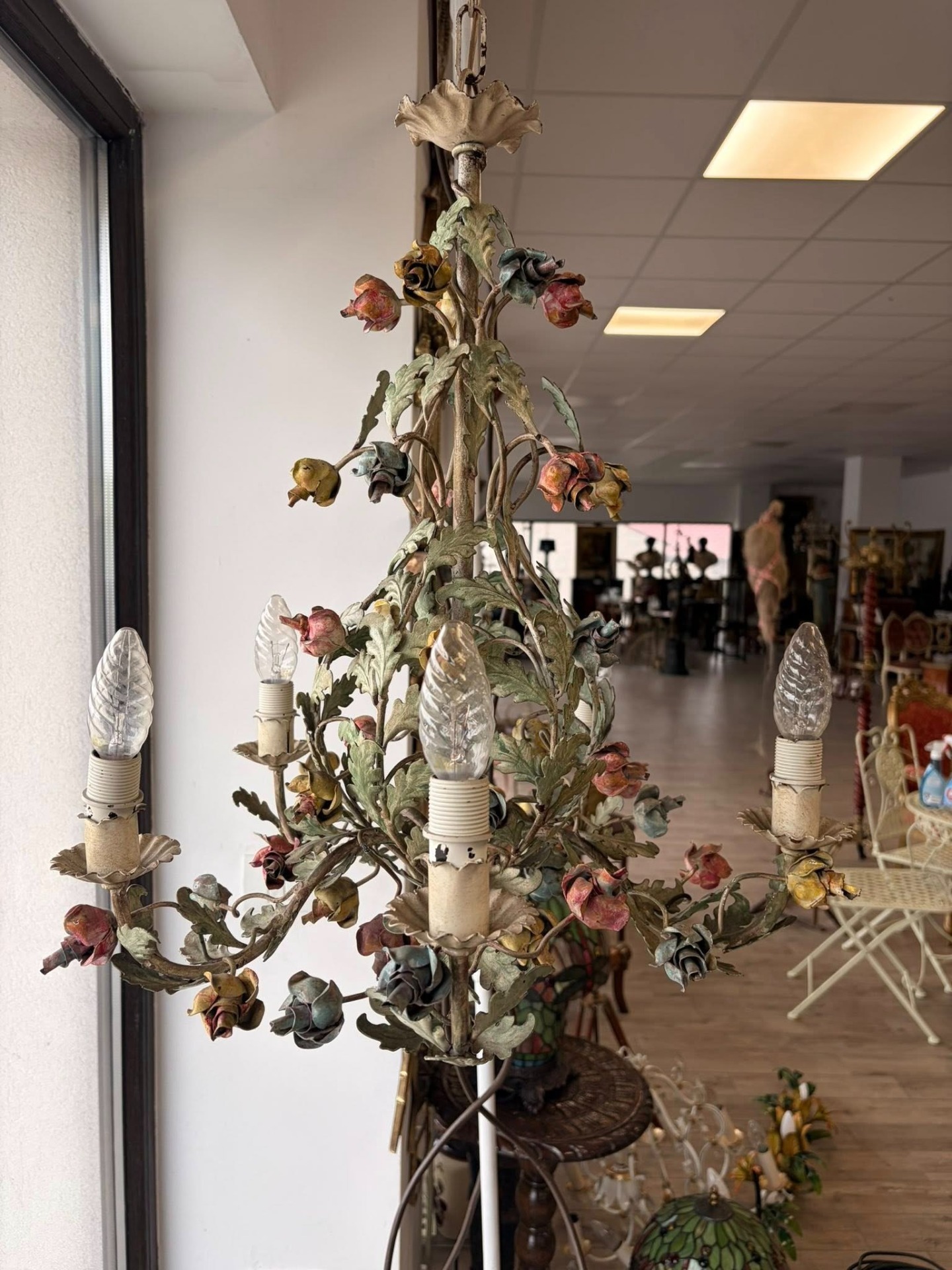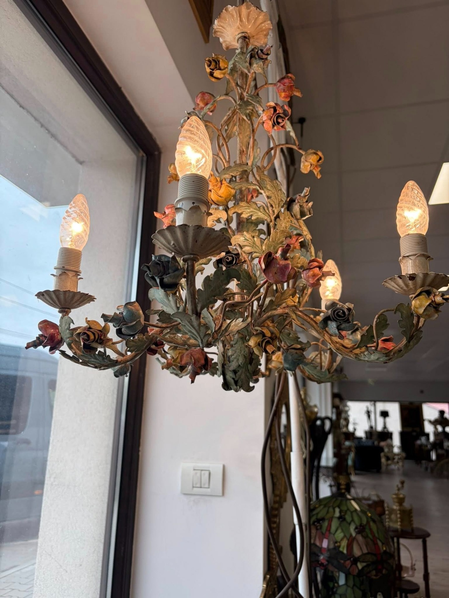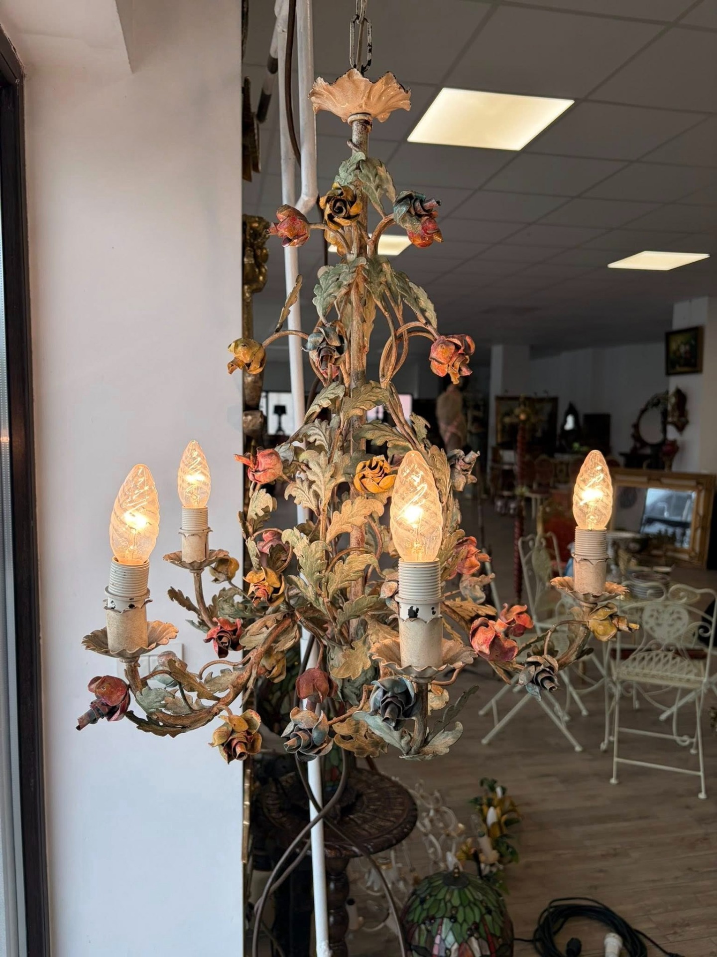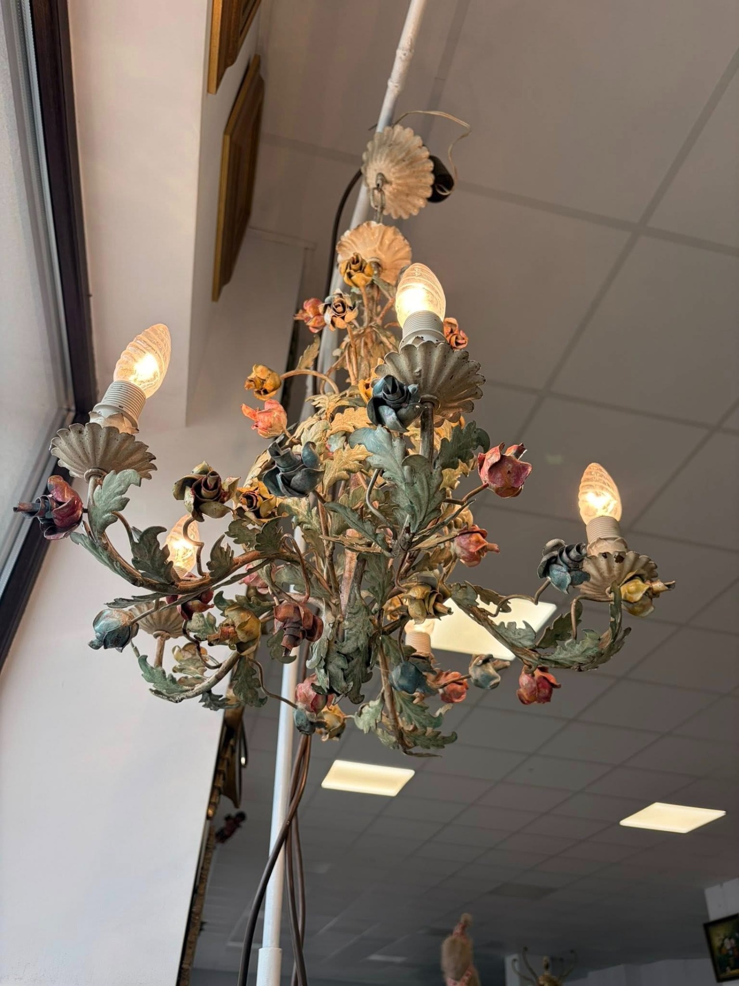 Candelabru din metal,pictat manual, cca 1940-50 Belgia.