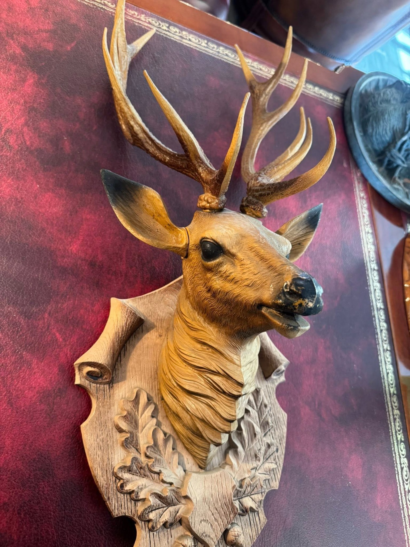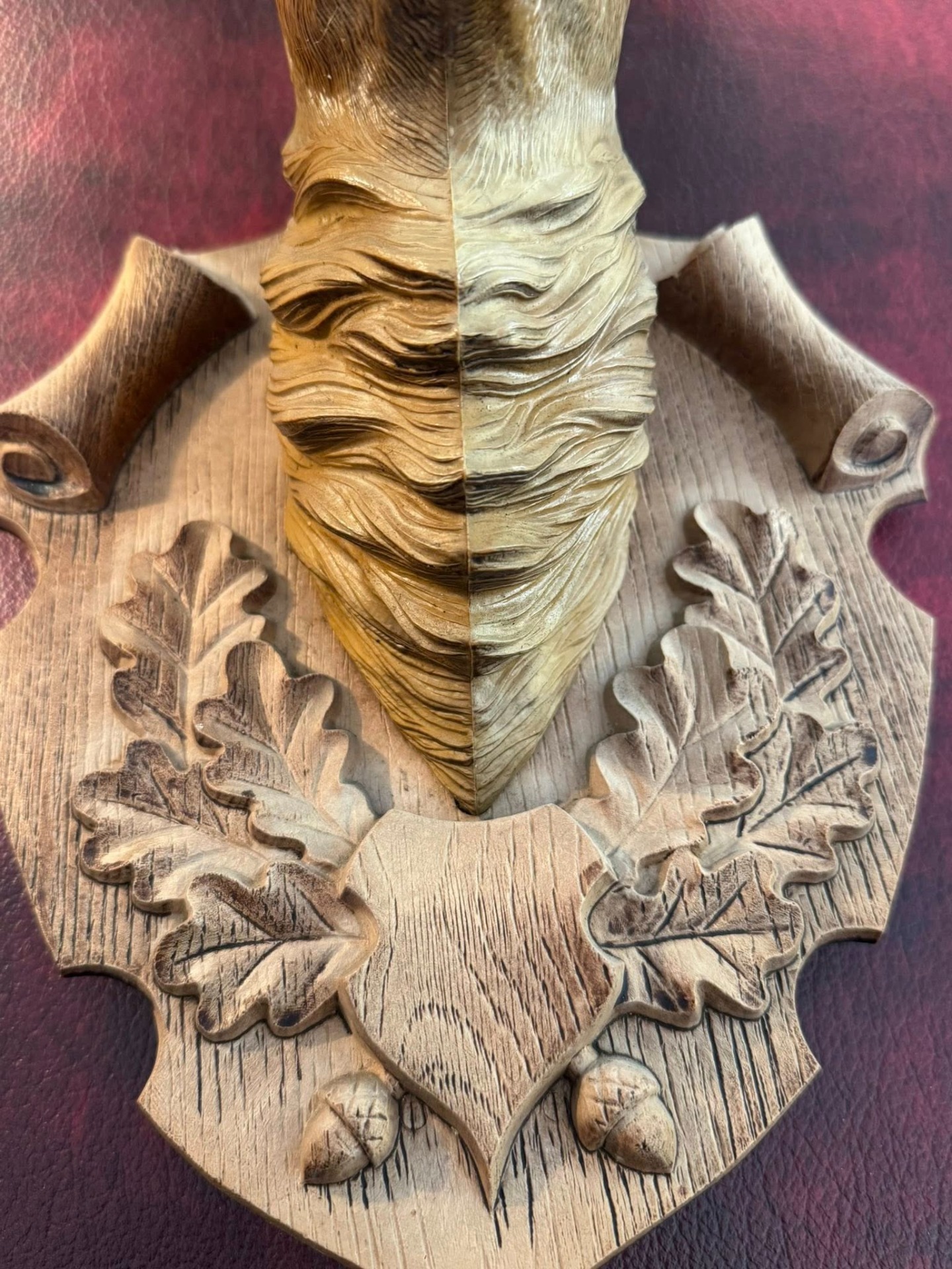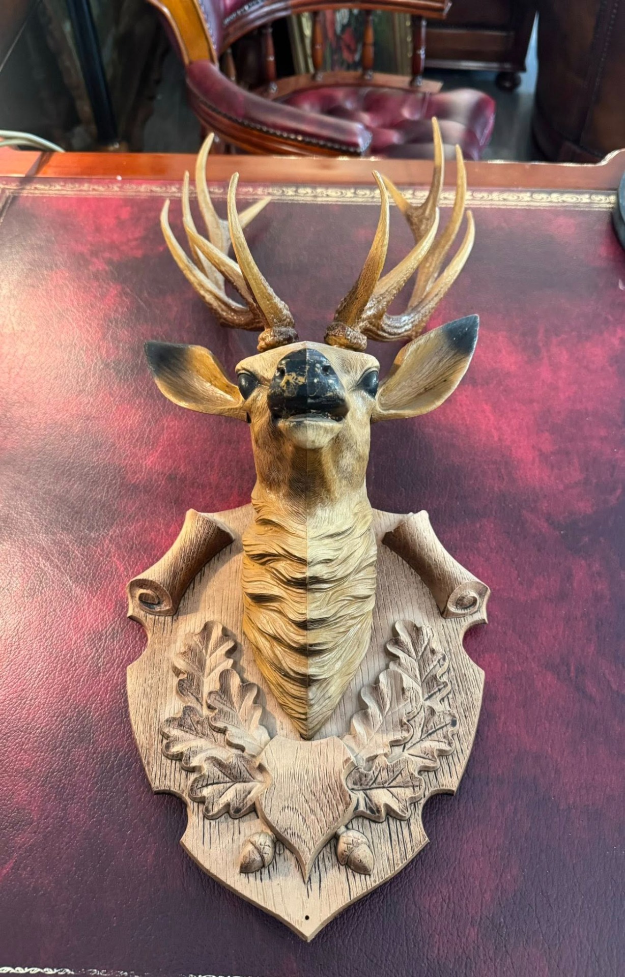 Cap de cerb lopătar sau carpatin montat pe un scut decorativ, realizat din plastic. (cca 1910)