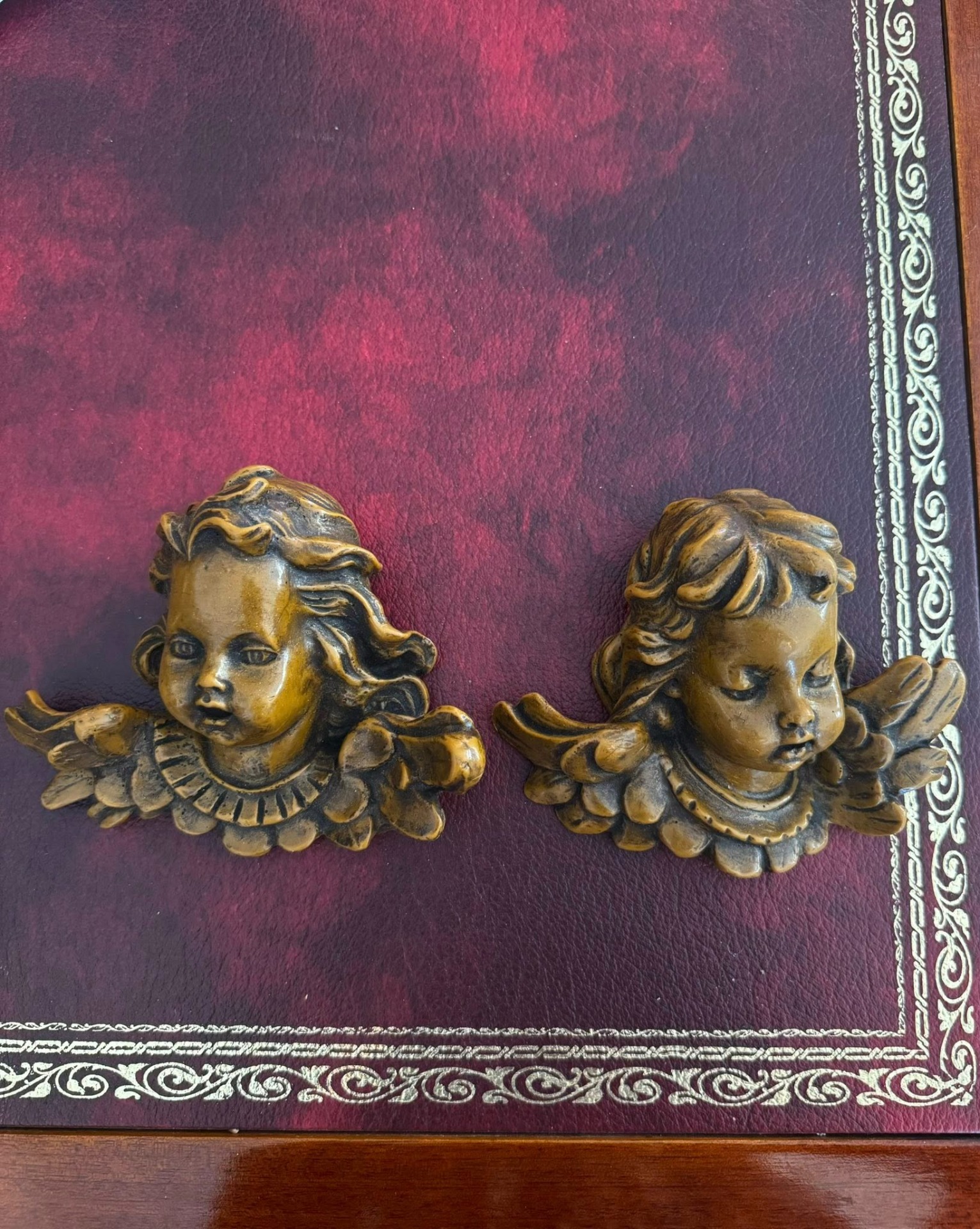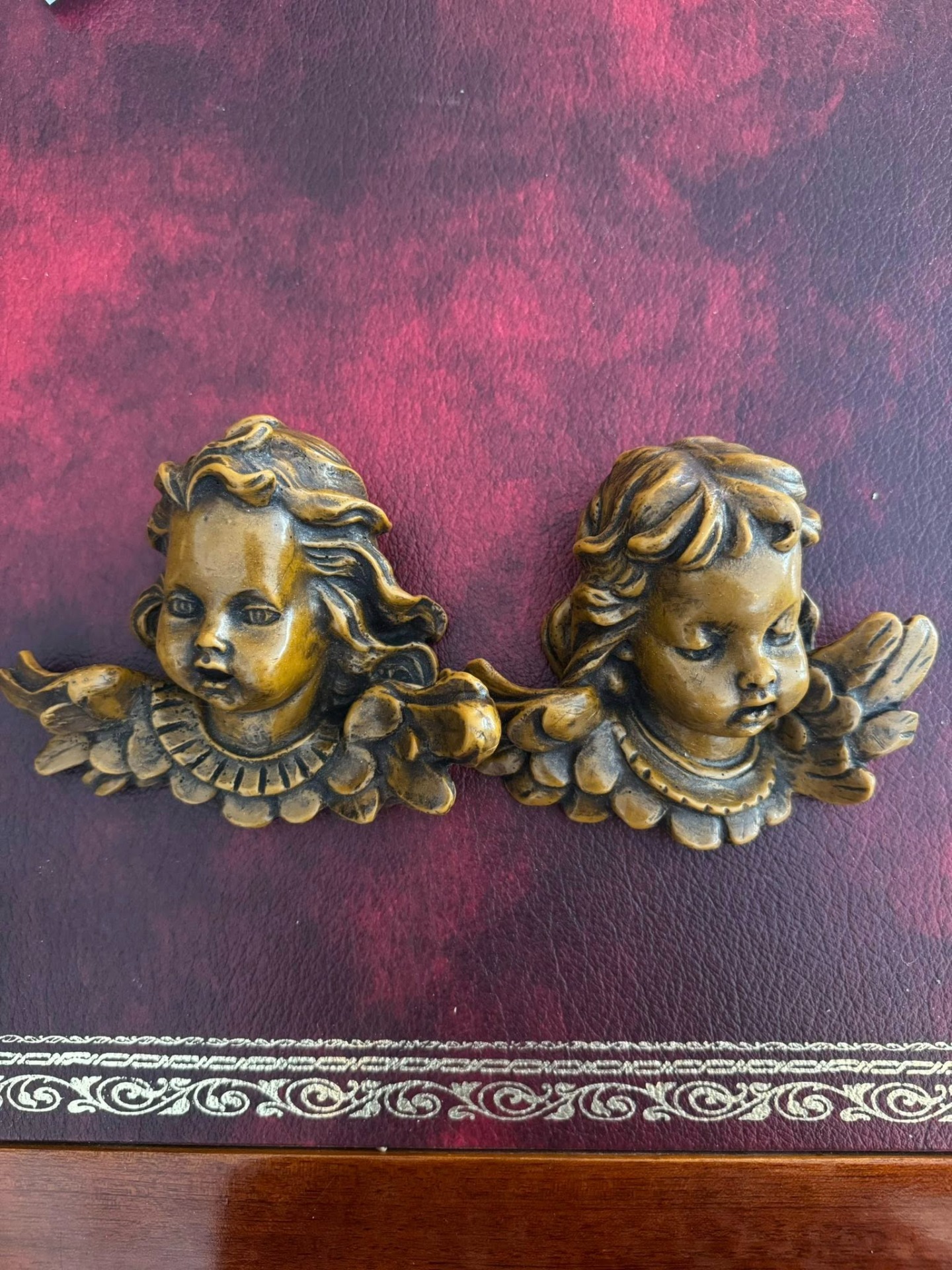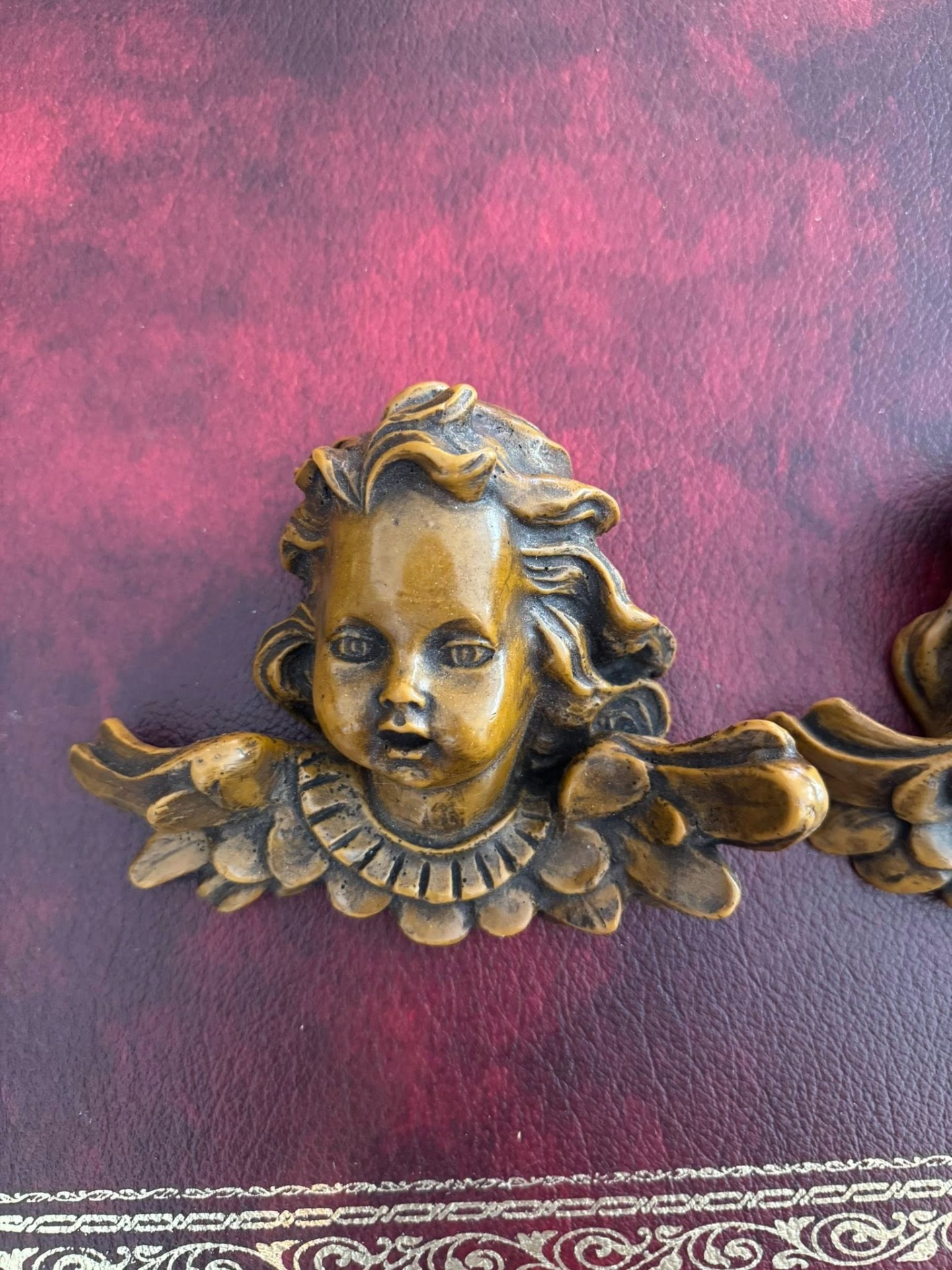 Capete de îngerași (cherubini) decorativi, realizați din ceară. (cca 1970)