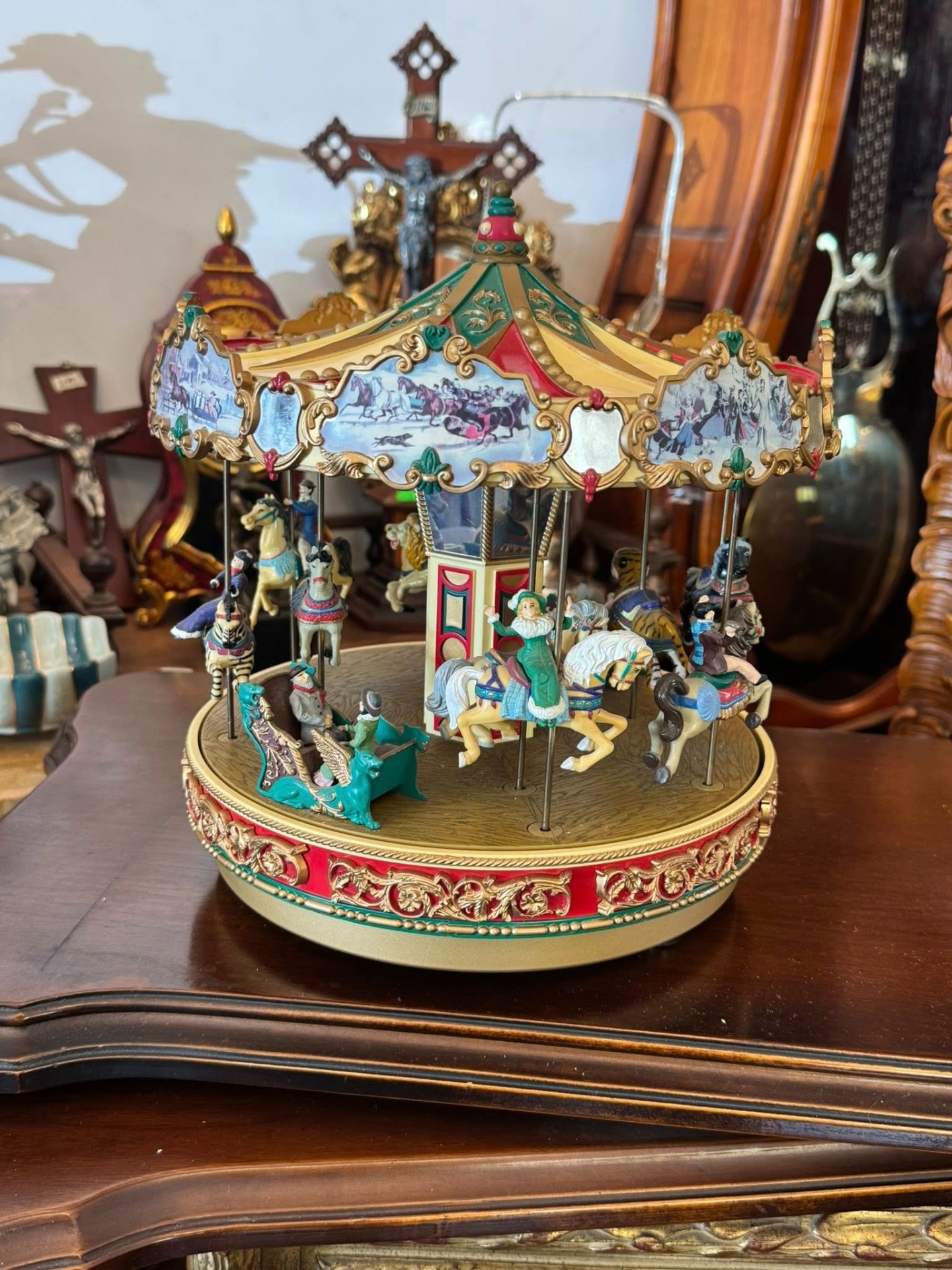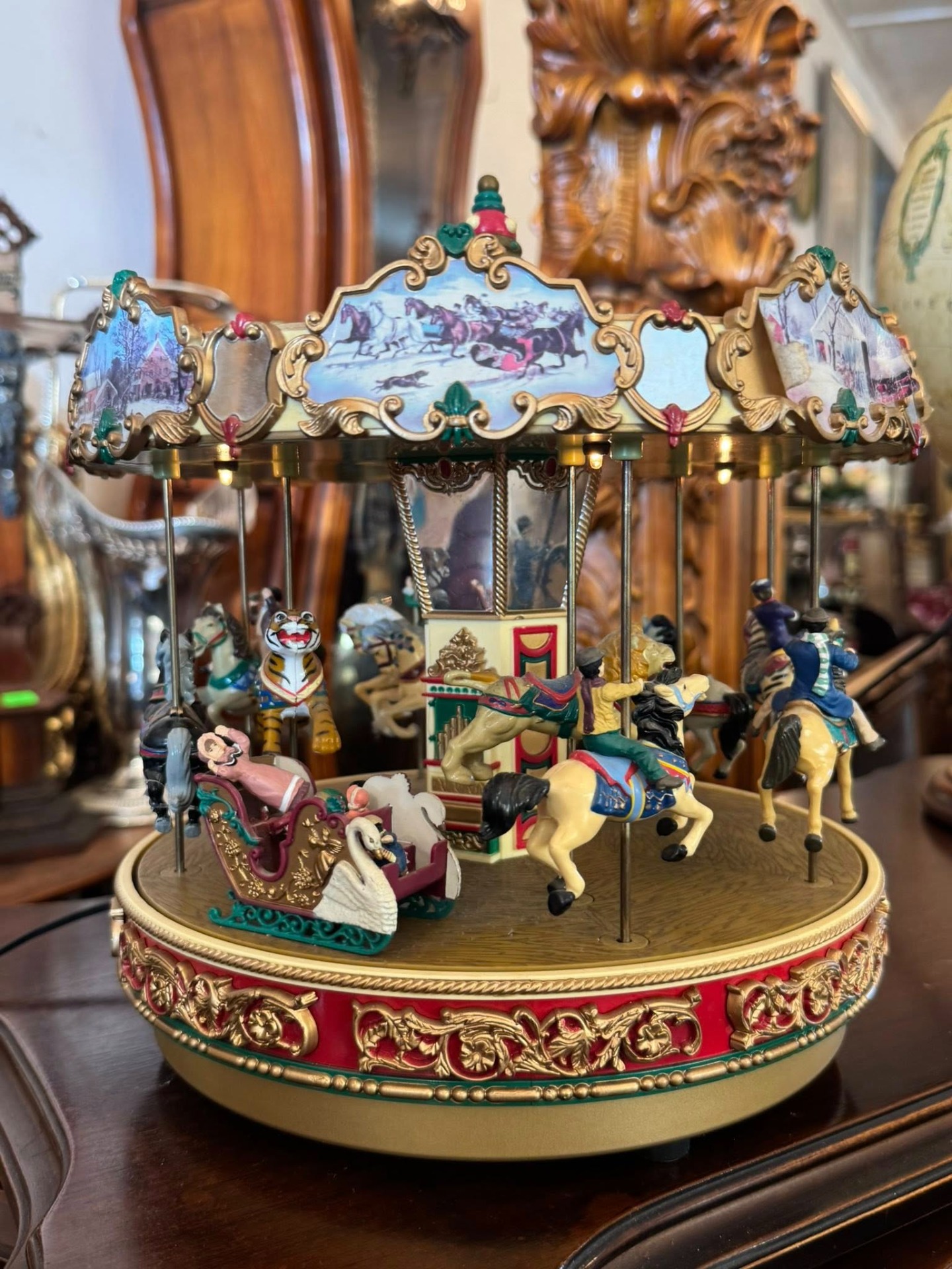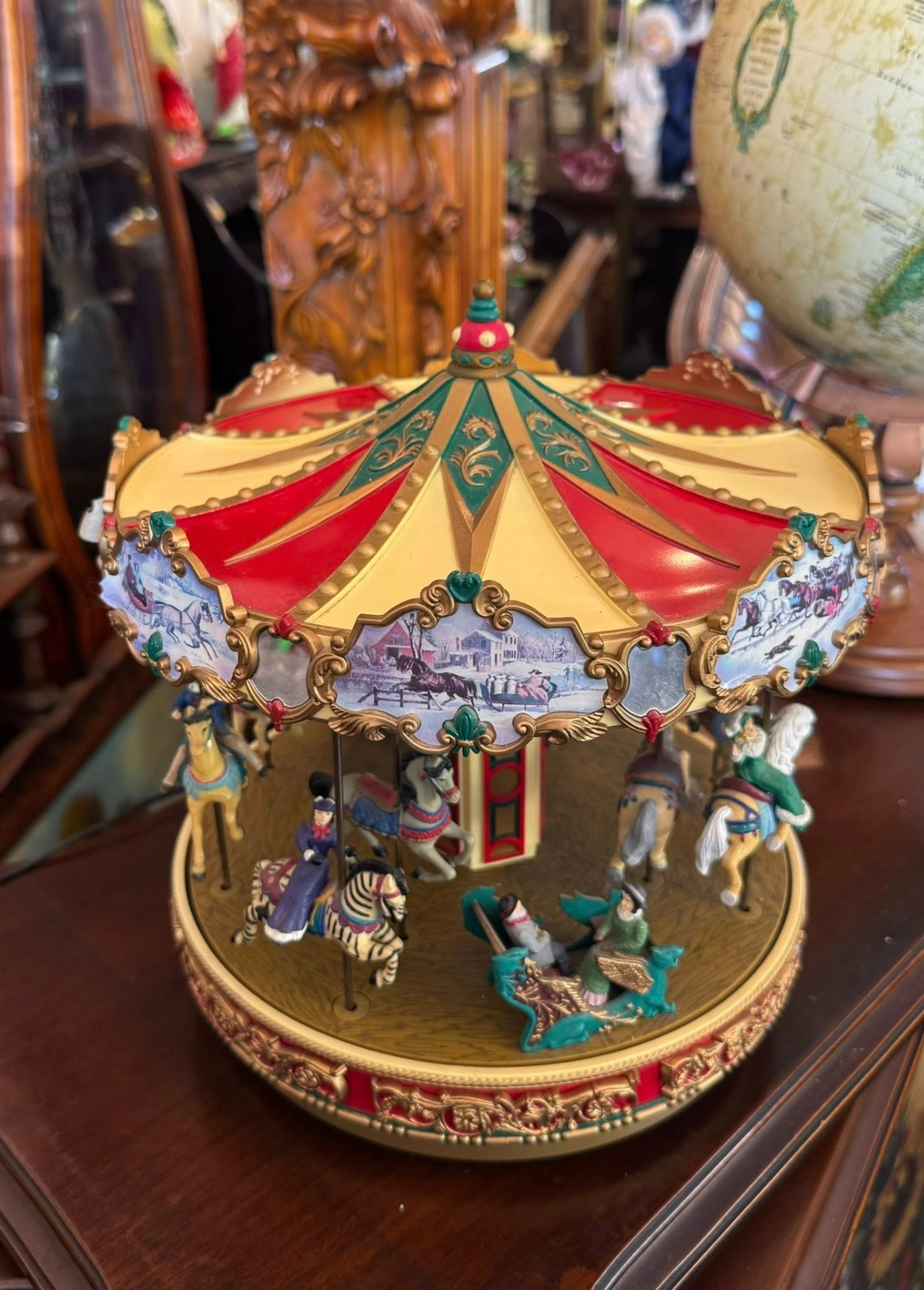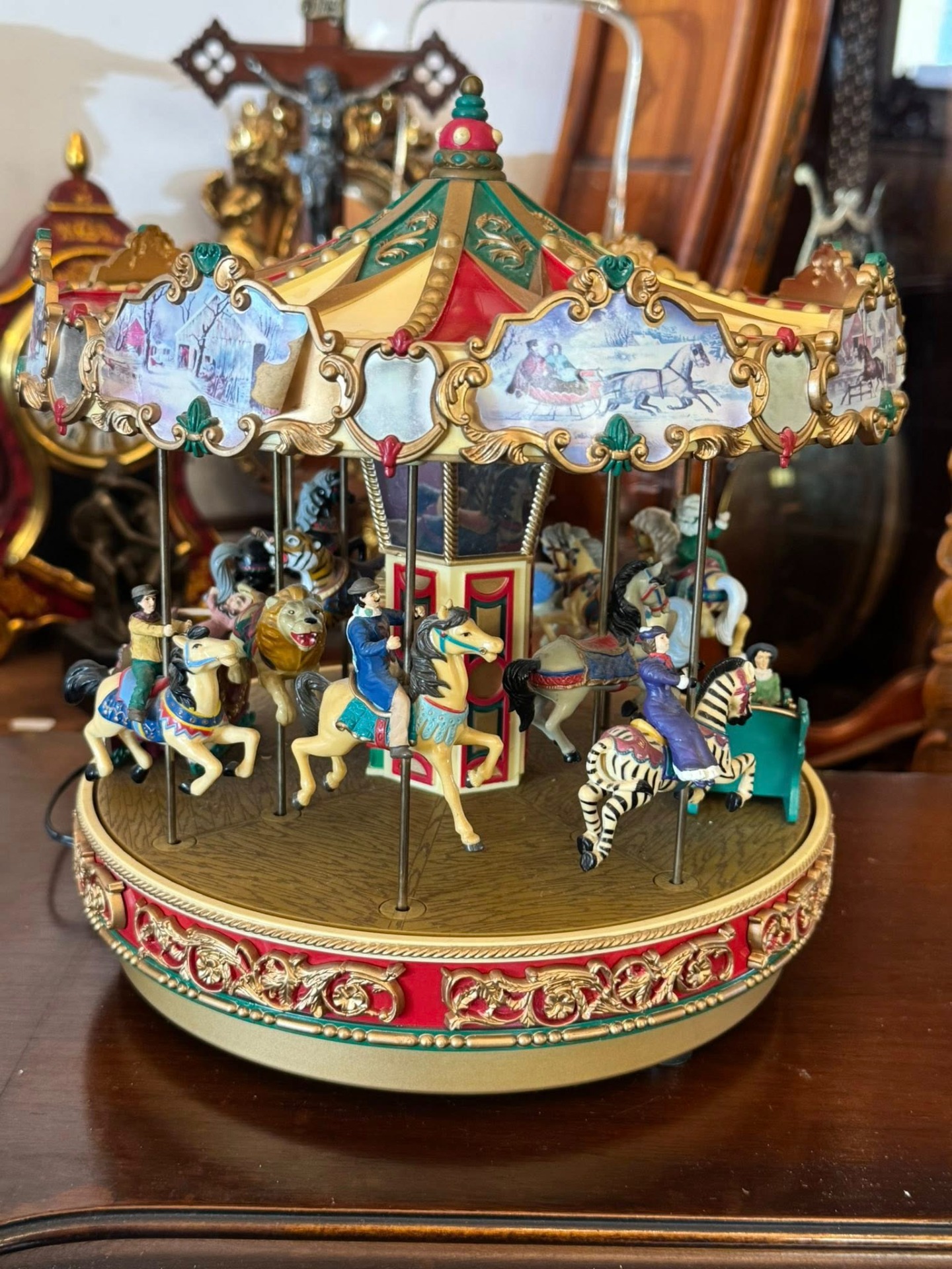 Carusel muzical animat de colecție, produs de renumitul brand Mr. Christmas, modelul fiind cunoscut sub numele de "Holiday Around The Carousel".
