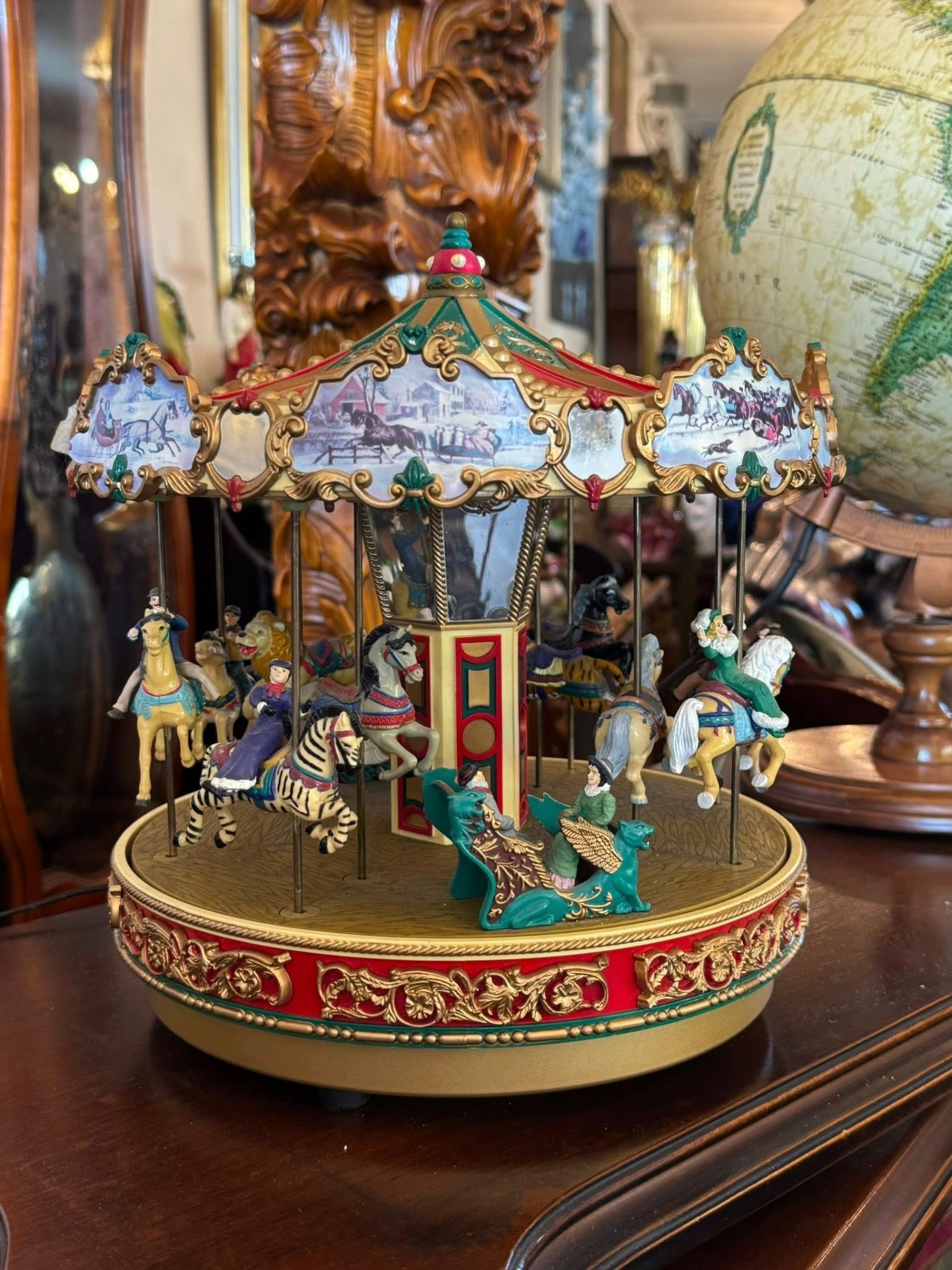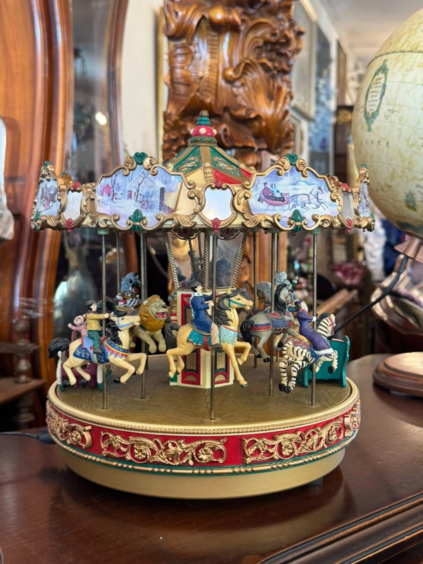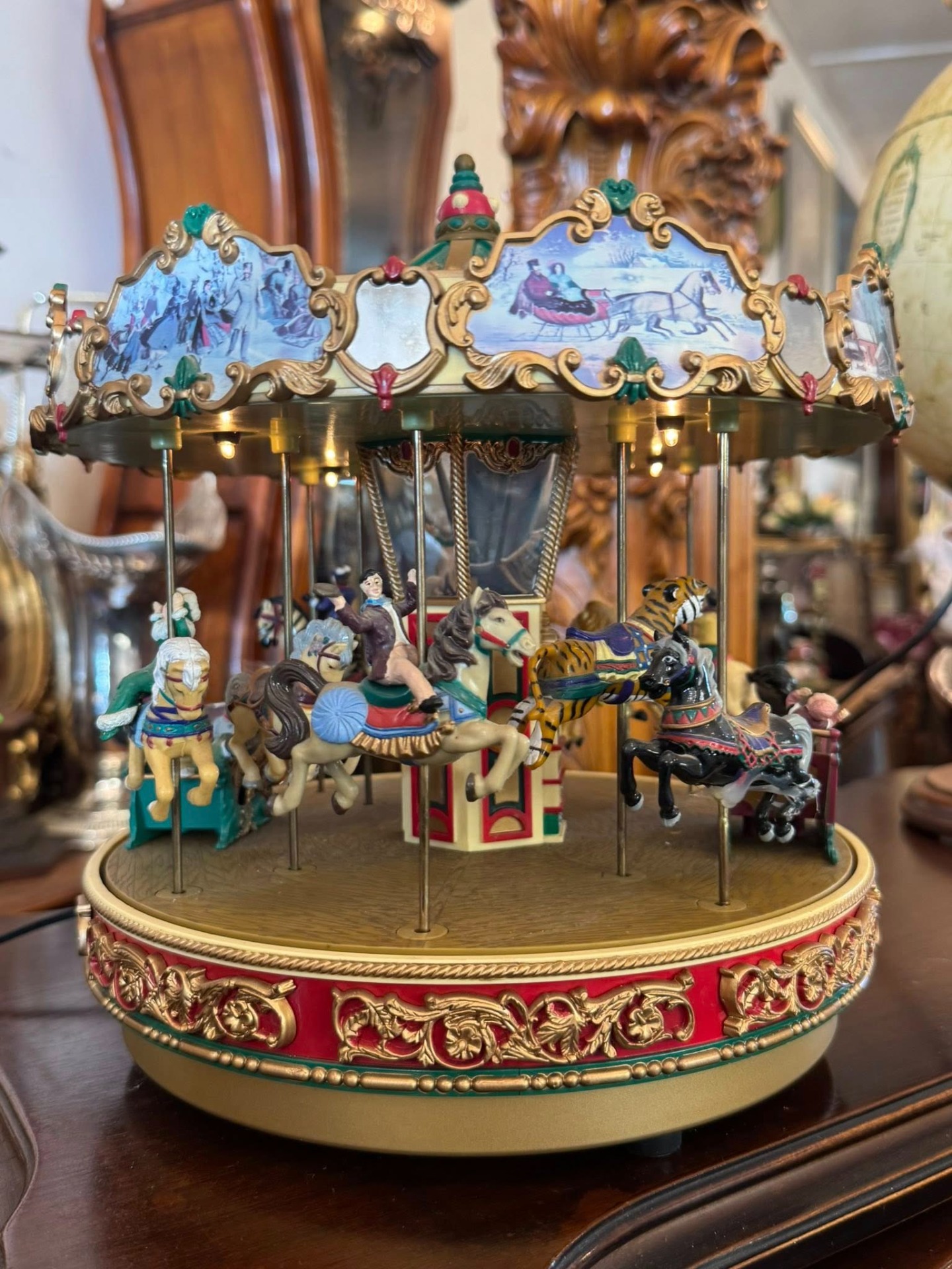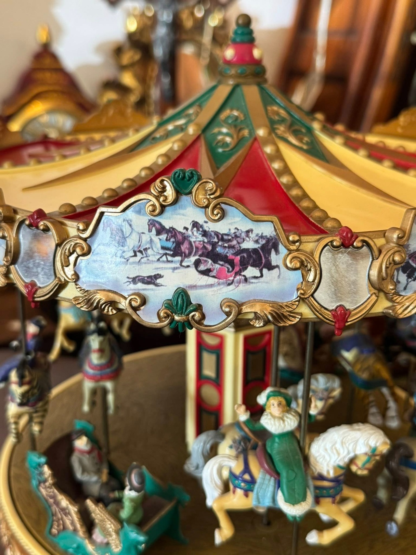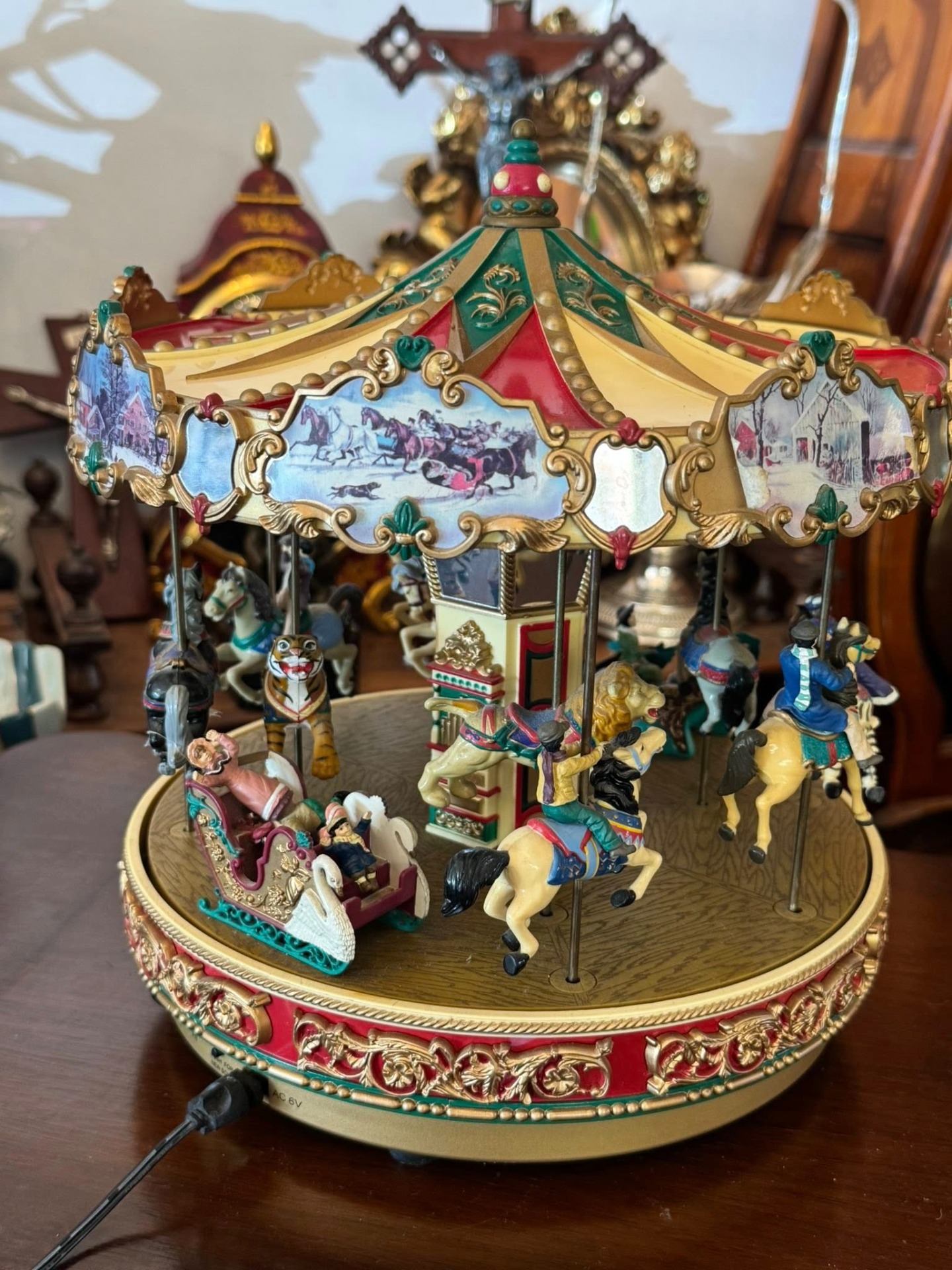 Carusel muzical animat de colecție, produs de renumitul brand Mr. Christmas, modelul fiind cunoscut sub numele de "Holiday Around The Carousel".