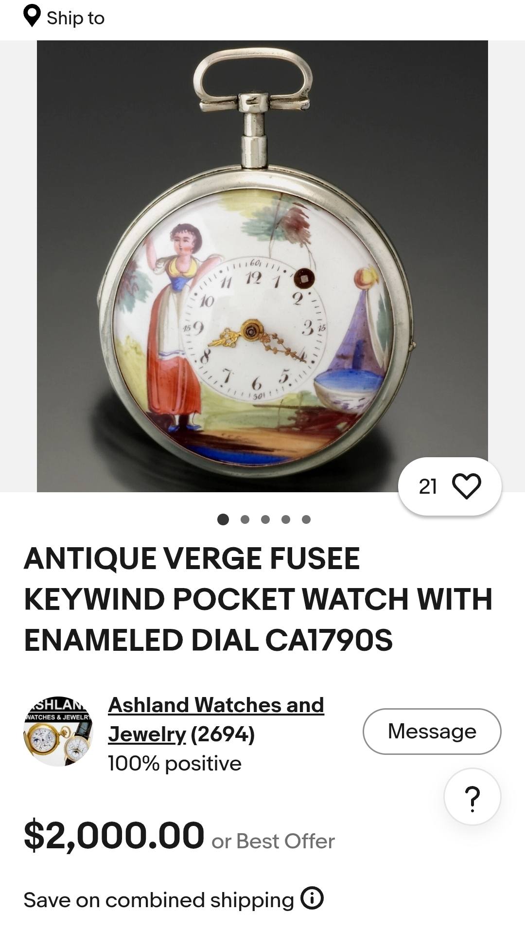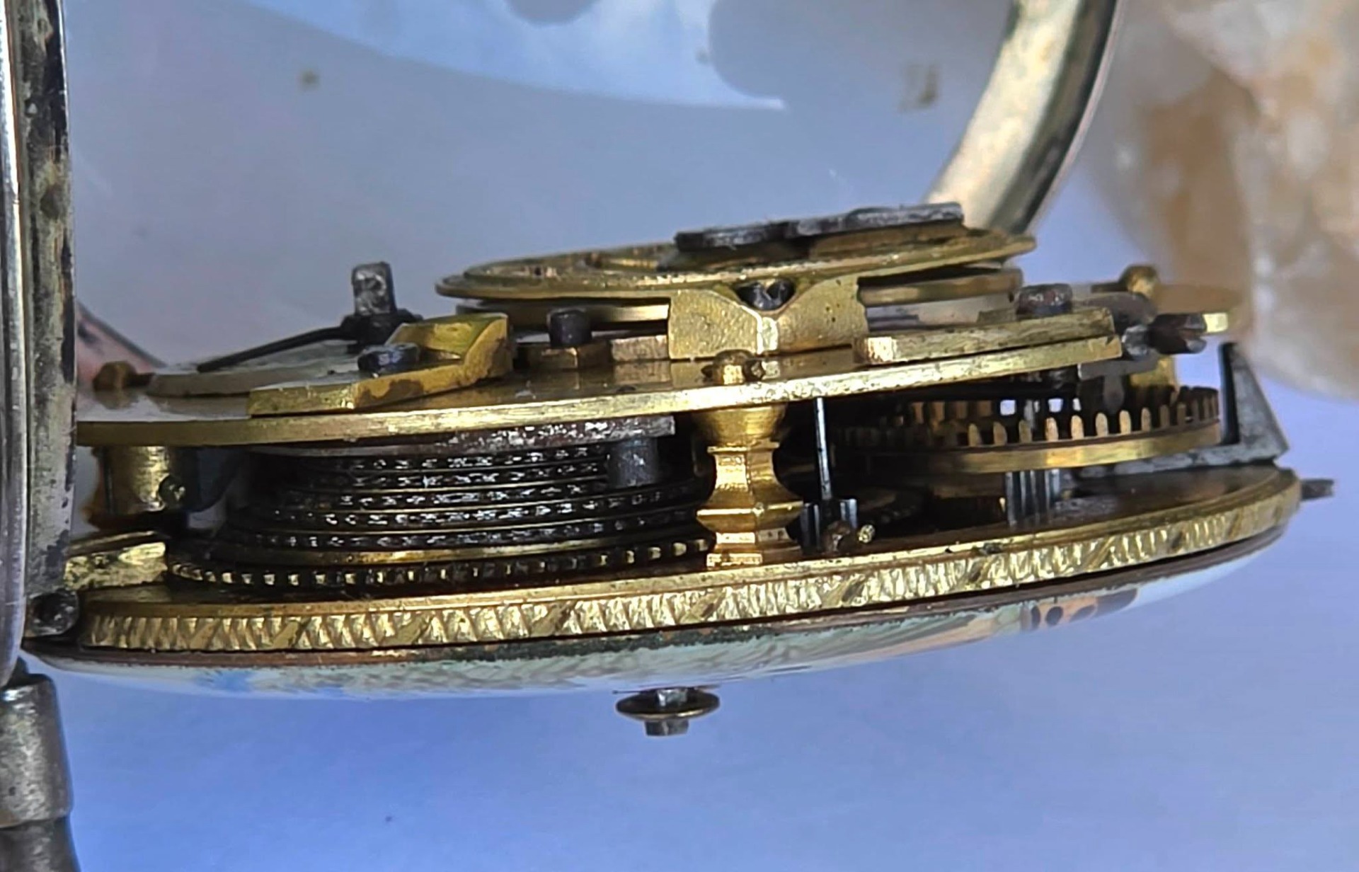 Cei peste 200 de ani și-au pus amprenta asupra carcasei și cadranului (o mică ciupitură în email lângă orificiul de întoarcere), aspecte de care s-a ținut cont la stabilirra prețului.