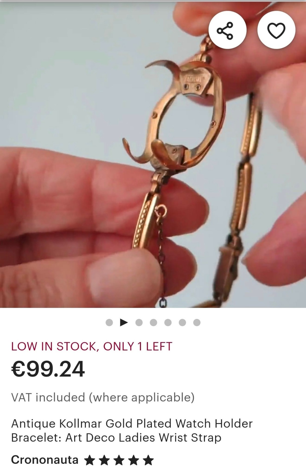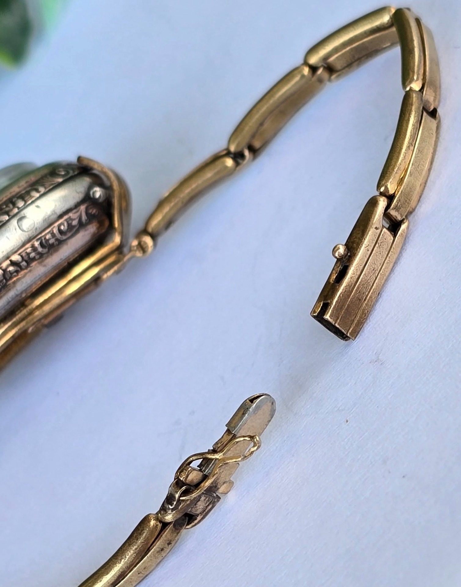 folosită pentru ca ceasul să poată fi purtat la mână, produsă de Kollmar&Jourdan, renumit atelier din Pforzheim (cca 1900-1910, Germania).