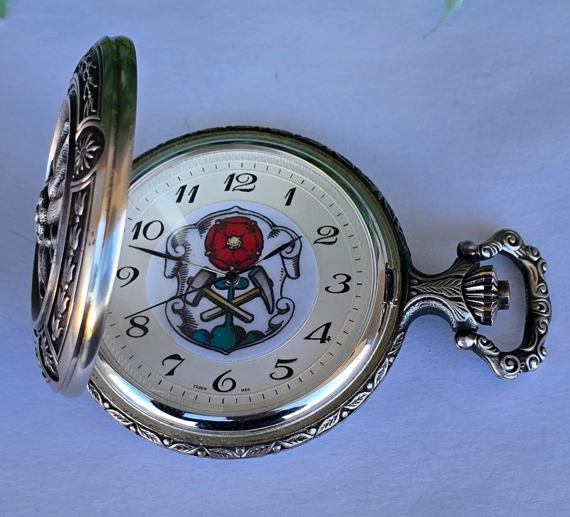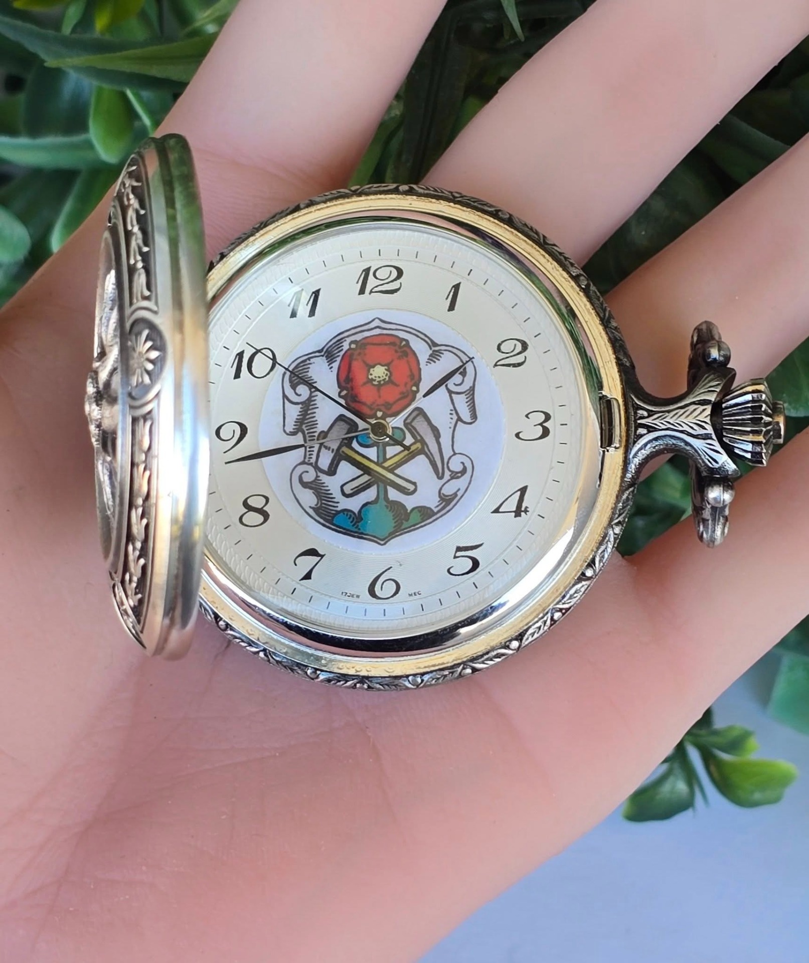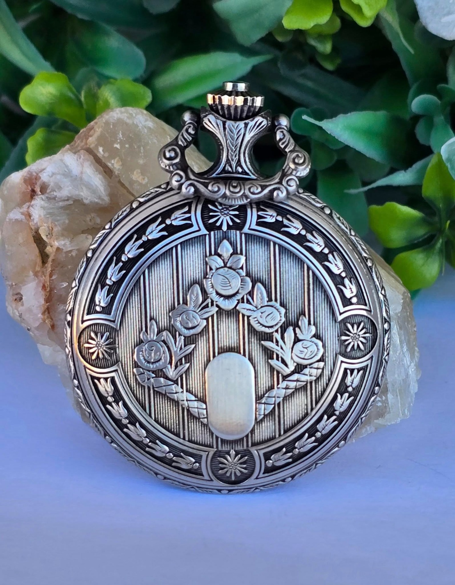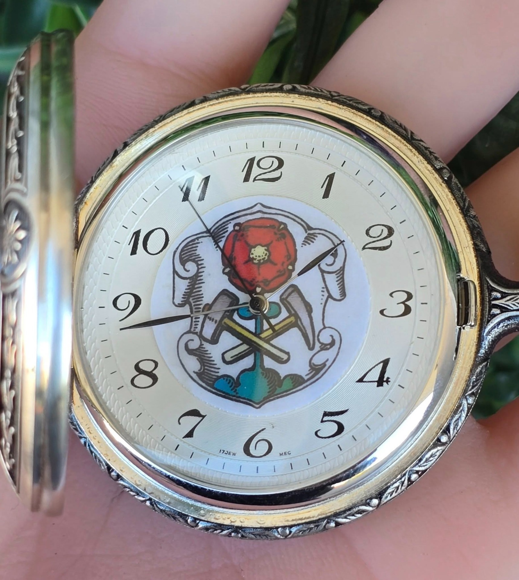 Ceas de buzunar vintage, de colecție, din metal argintat, mecanism cu armare manuală în stare bună de funcționare (anii 1960-1970, Sulzbach-Rosenberg, Germania).