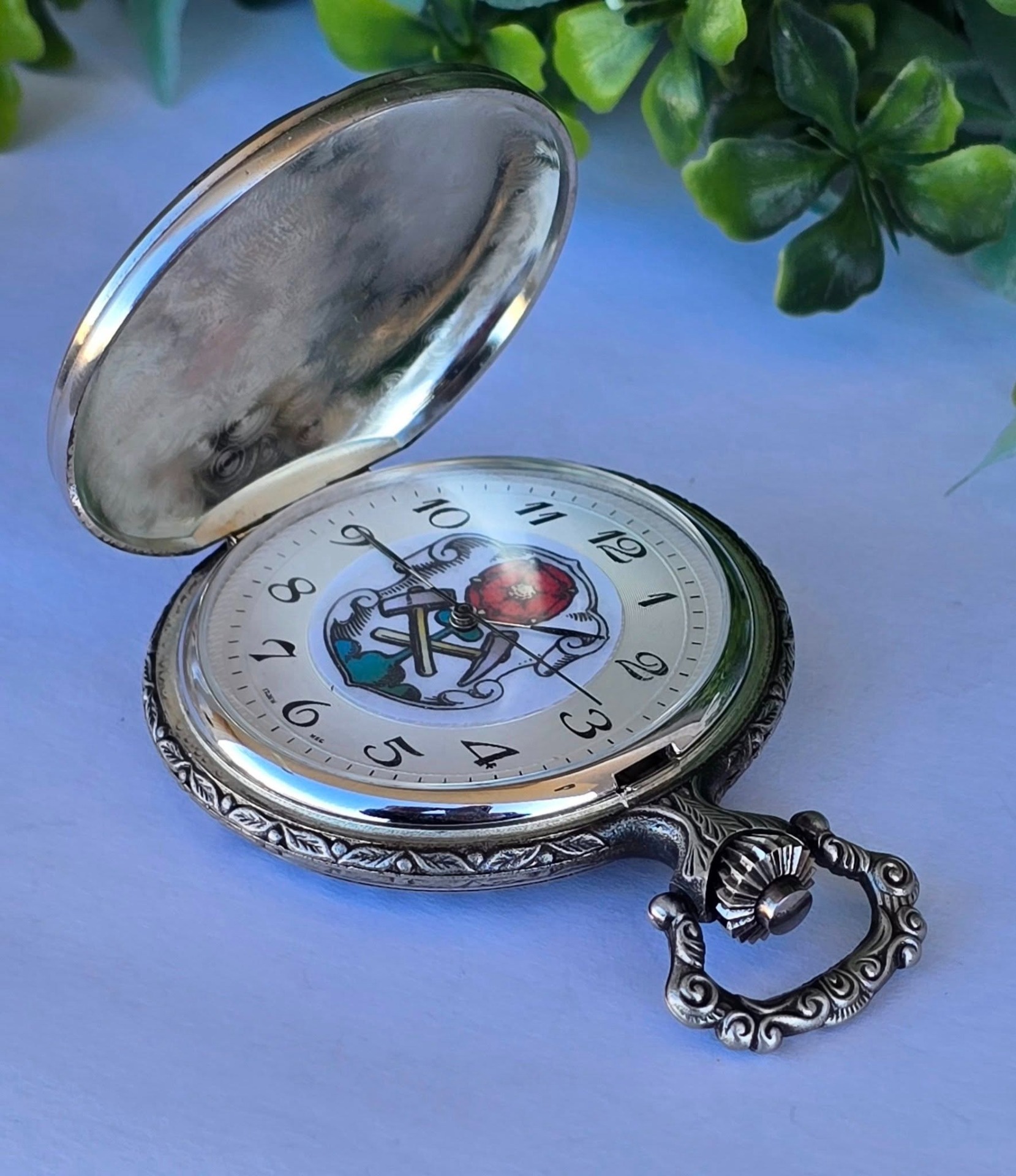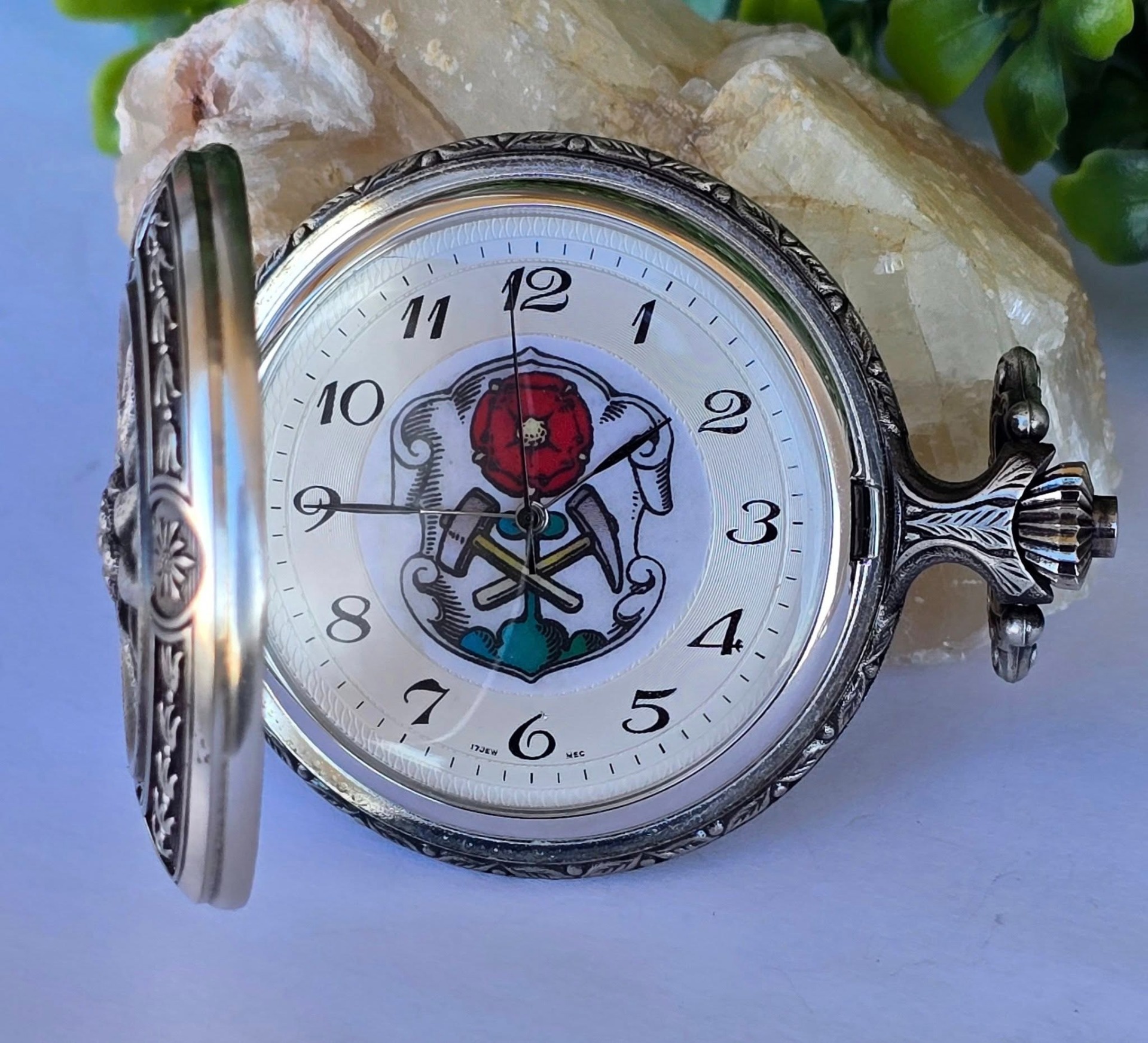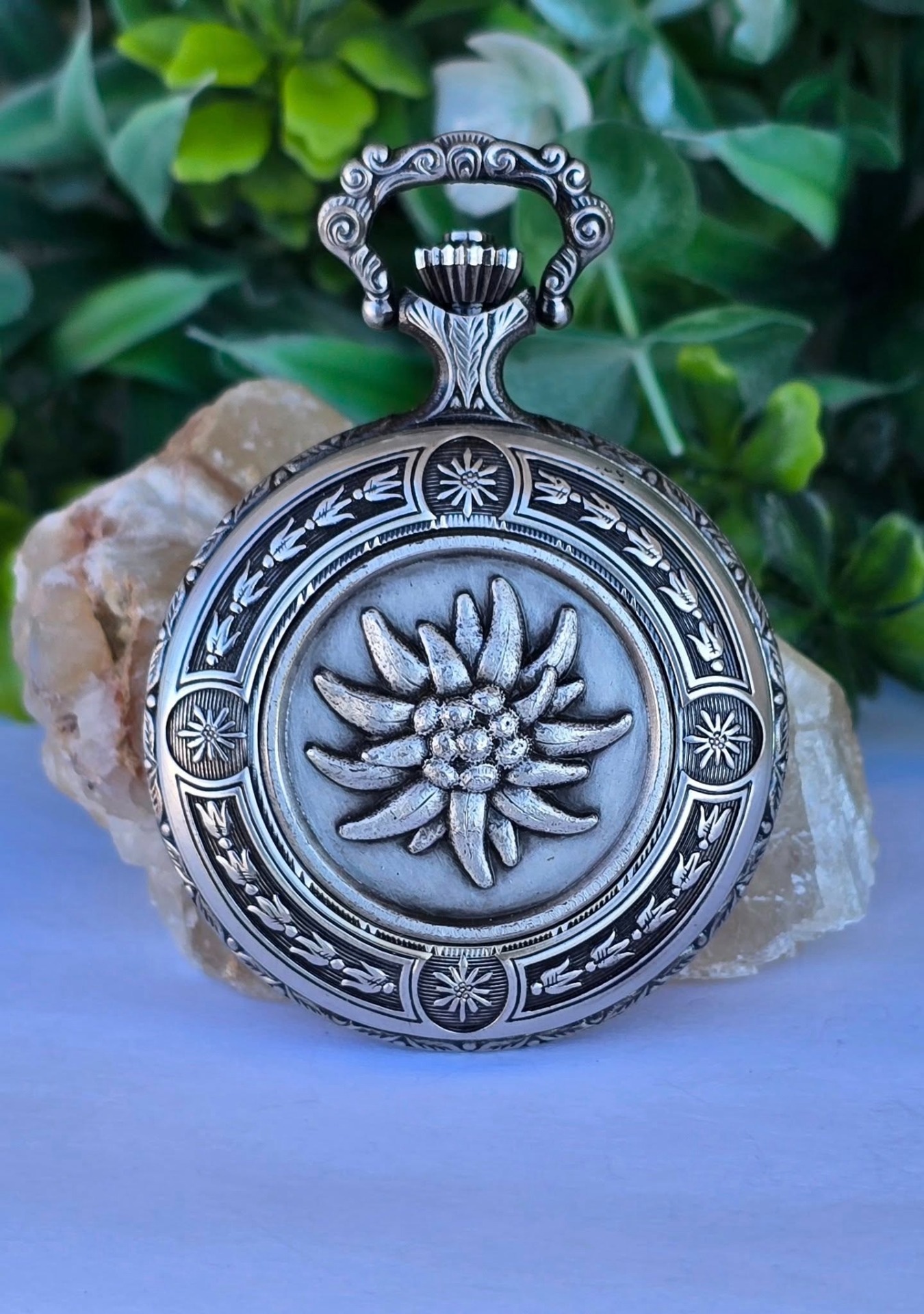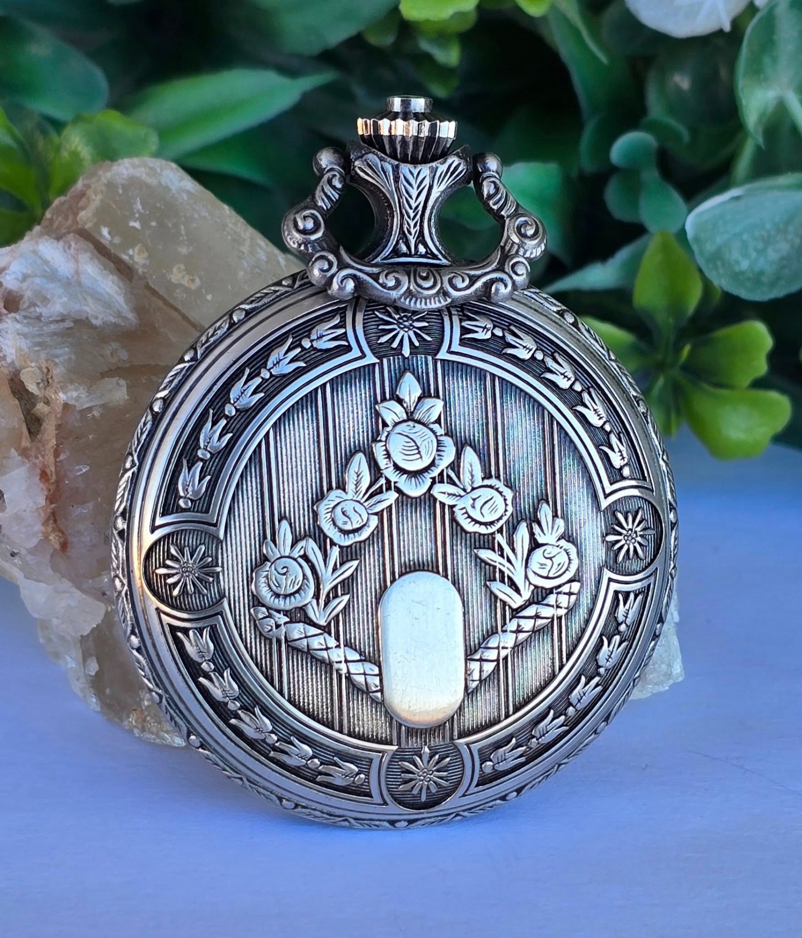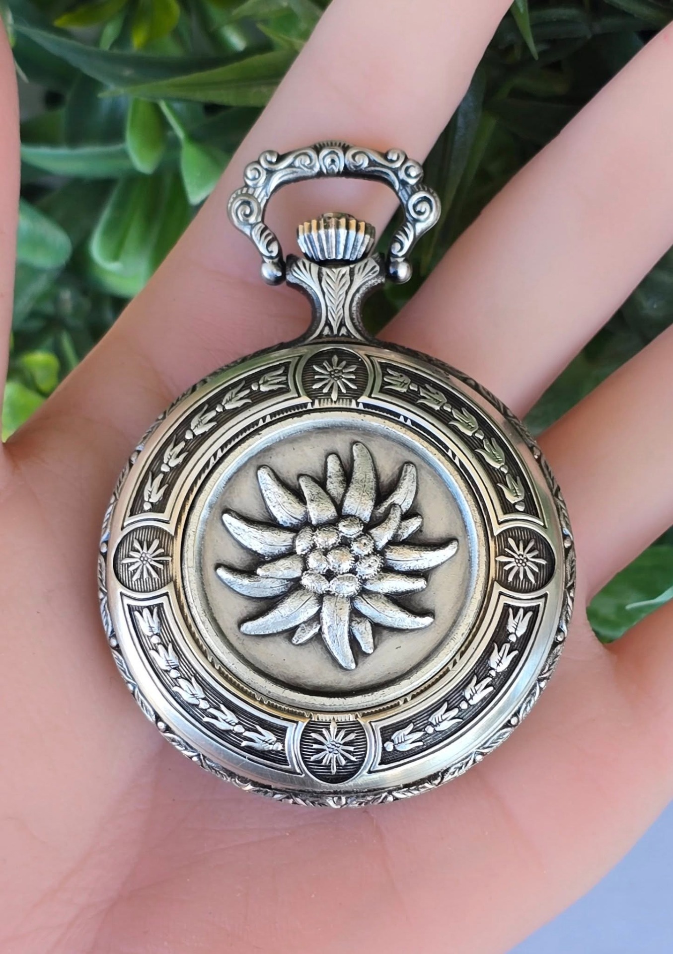 Ceas de buzunar vintage, de colecție, din metal argintat, mecanism cu armare manuală în stare bună de funcționare (anii 1960-1970, Sulzbach-Rosenberg, Germania).