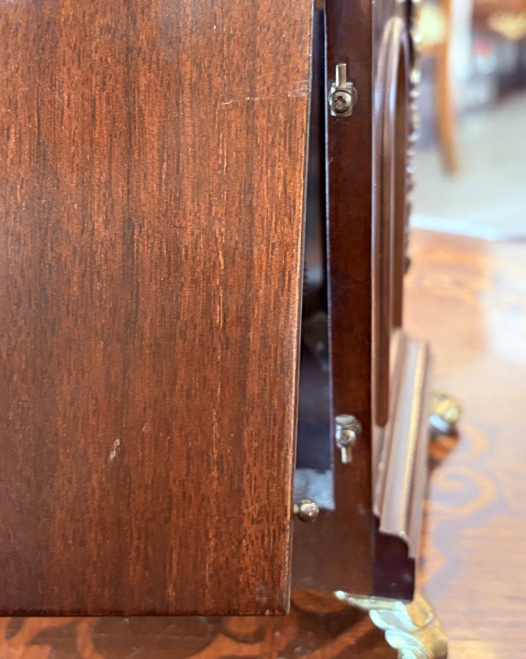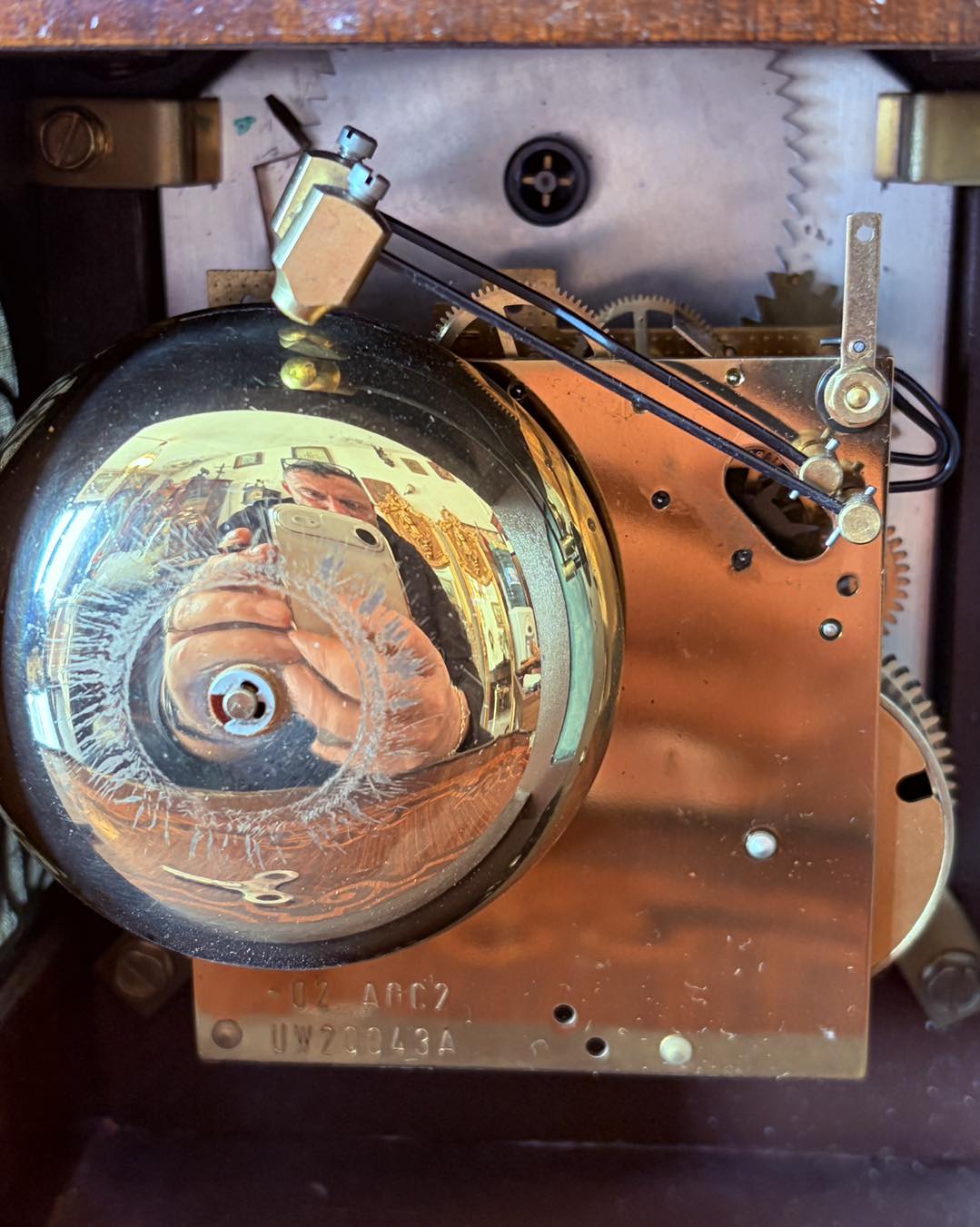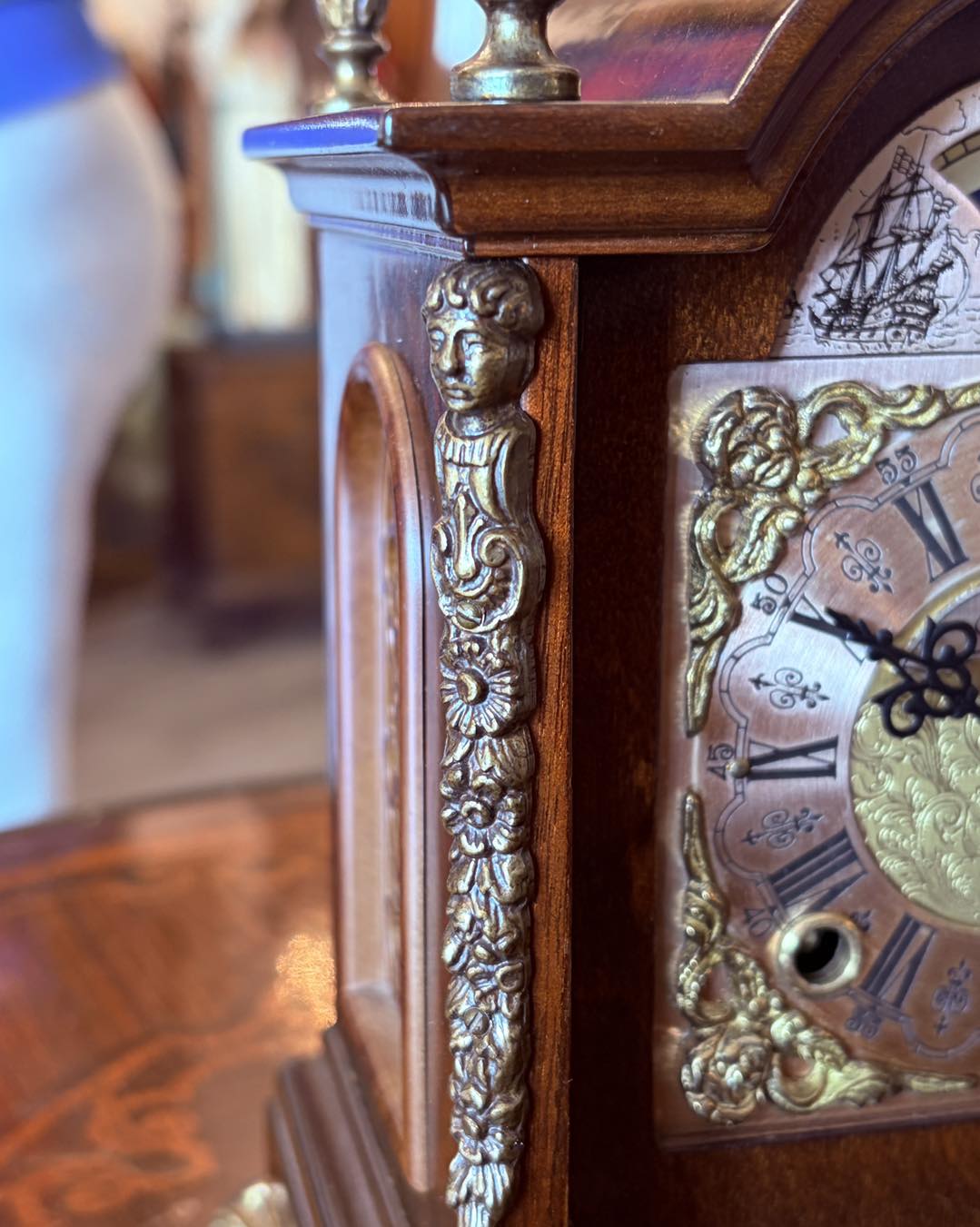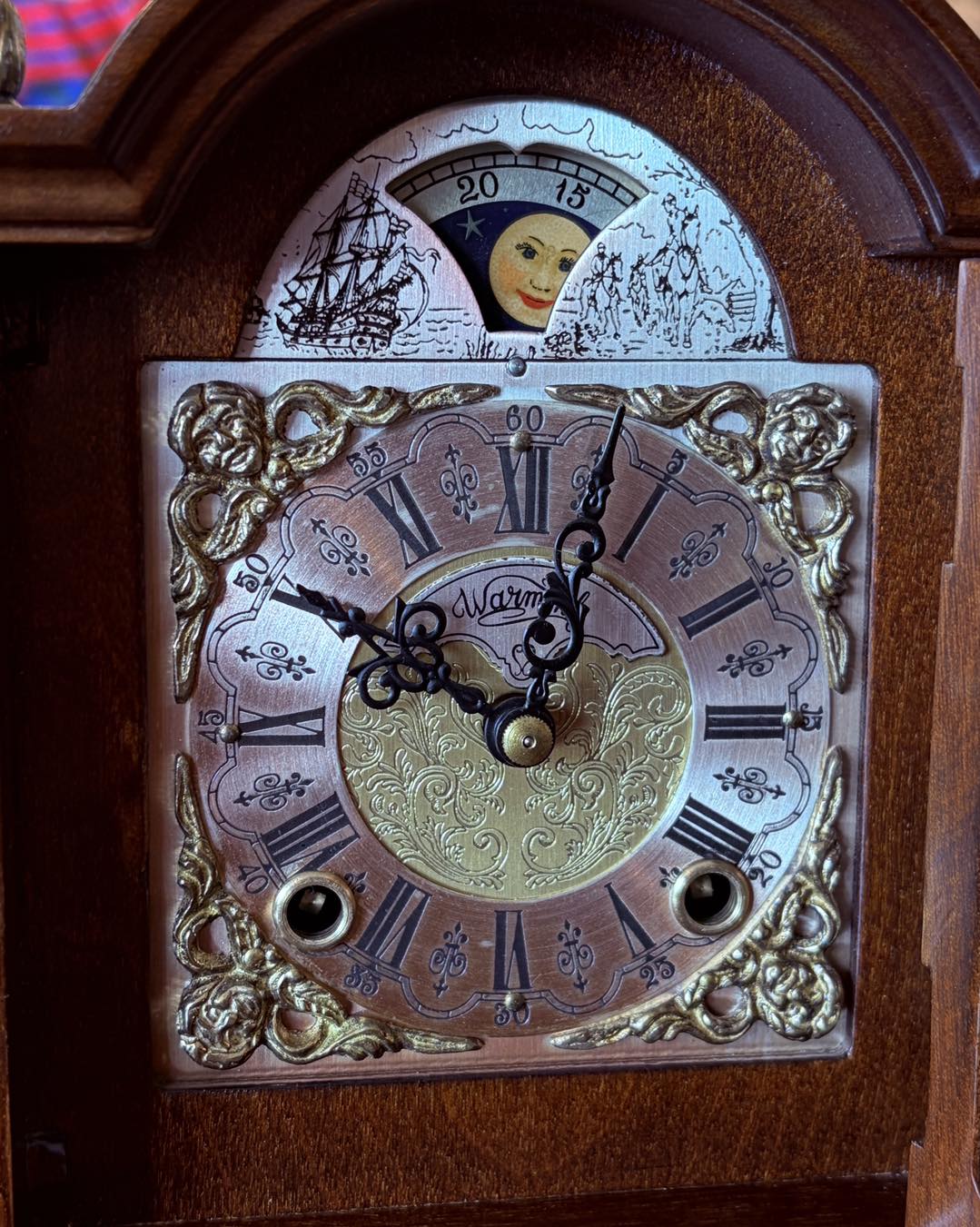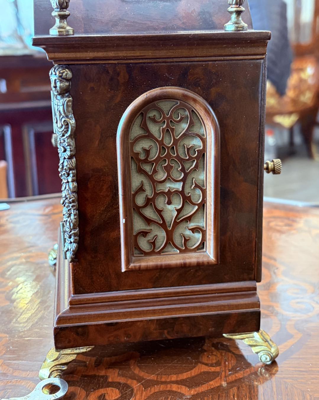 ceas de masă (bracket clock), mecanism produs de firma germană Hermle (Franz Hermle & Sohn). Hermle este unul dintre cei mai renumiți producători mondiali de mecanisme pentru ceasuri de lux.