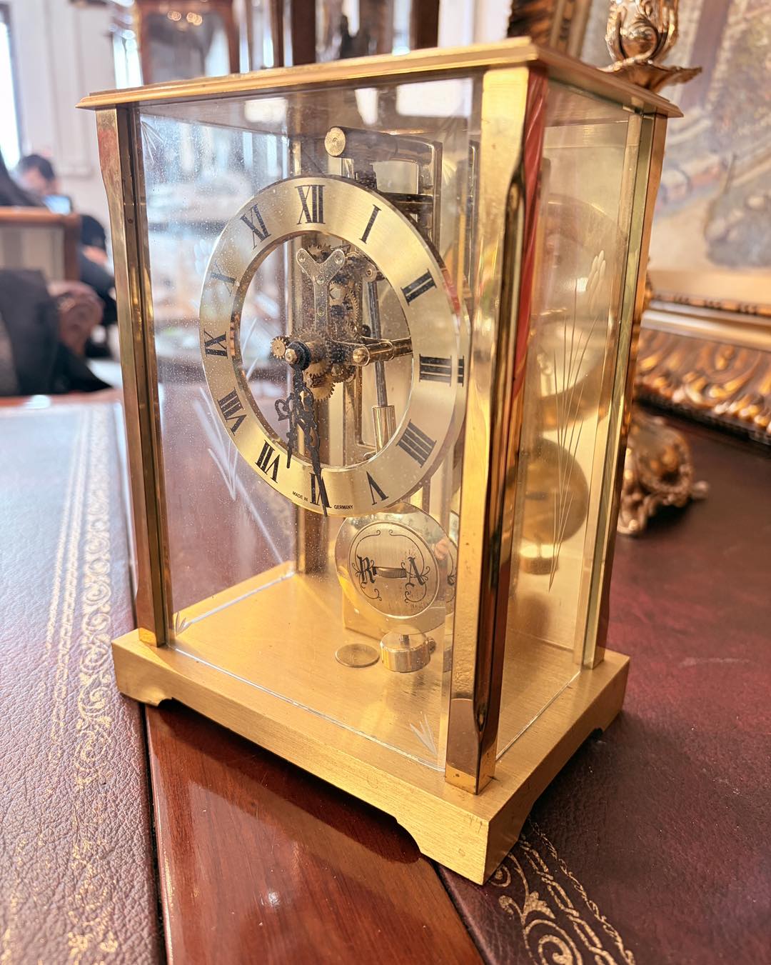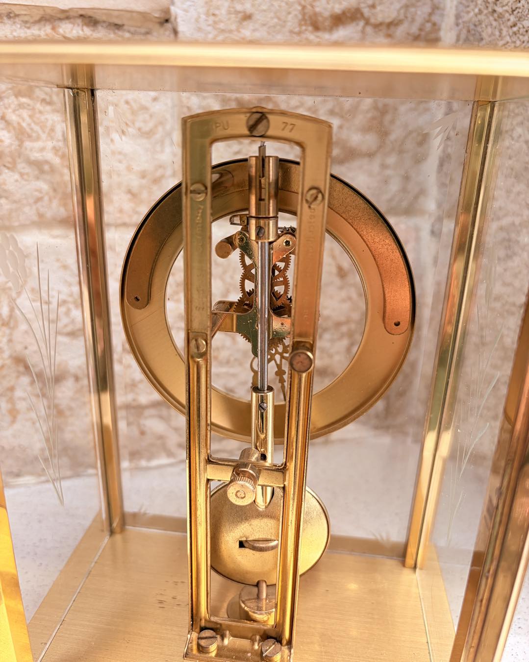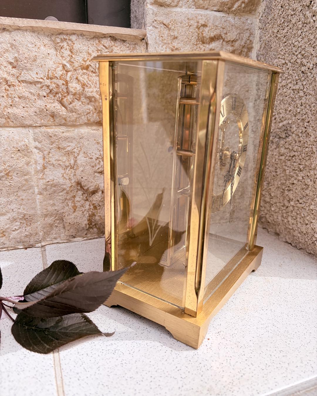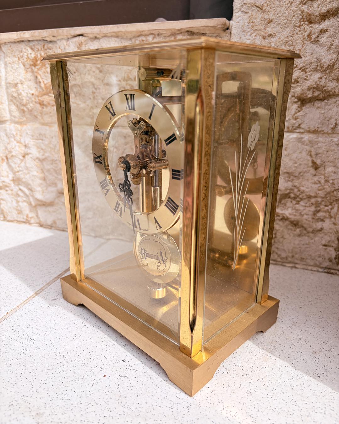 Carcasă din alamă: Strălucitoare, cu o patină ușoară, naturală,geamuri de cristal șlefuite cu model floral.
