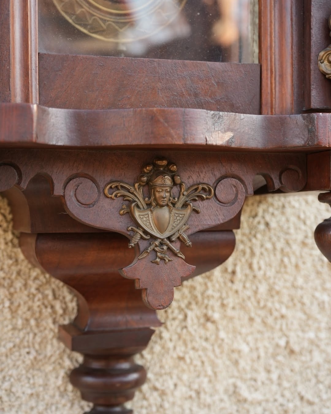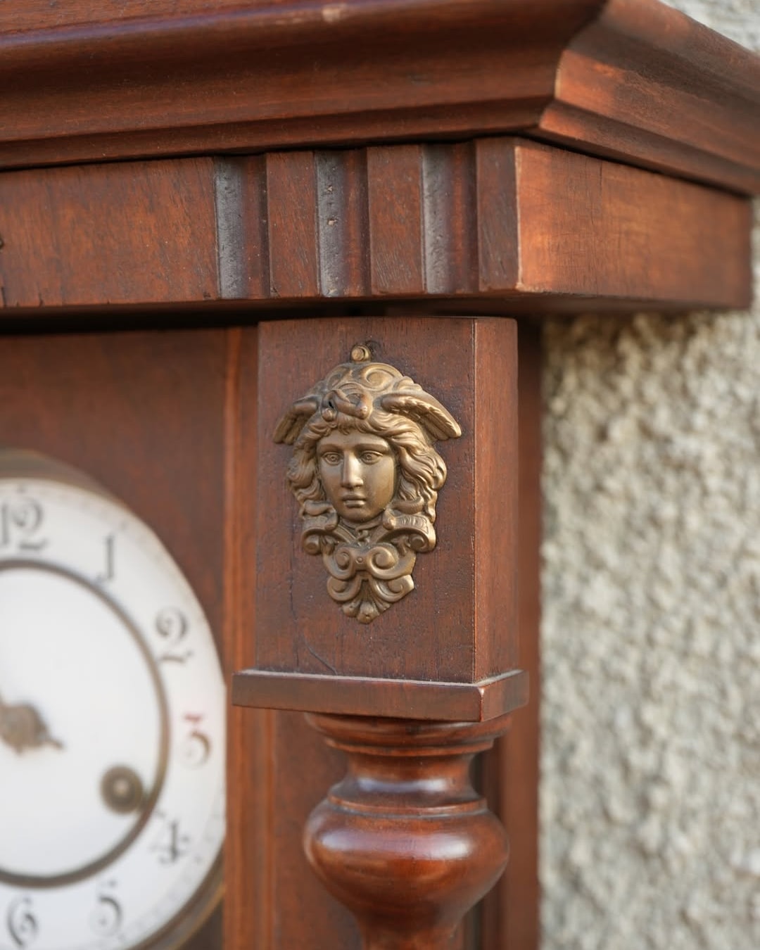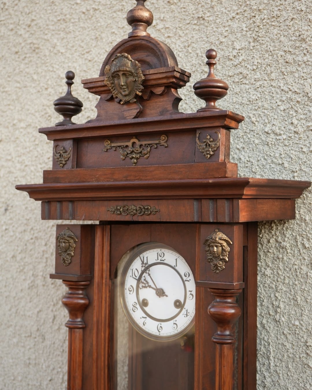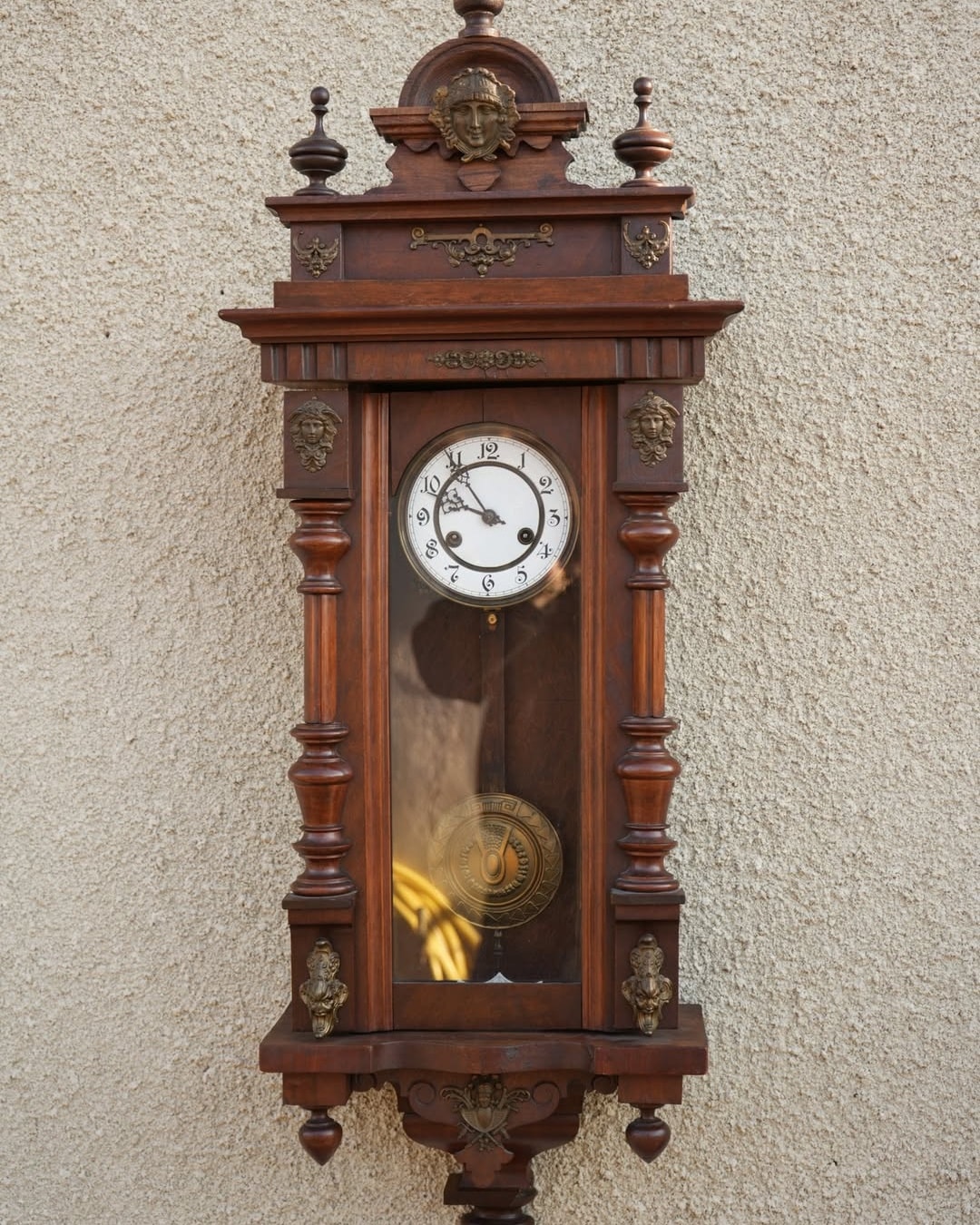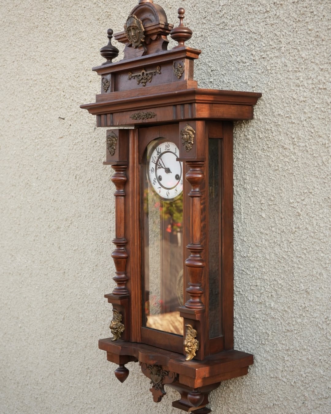 Ceas de perete cu pendul și ornamente din bronz.