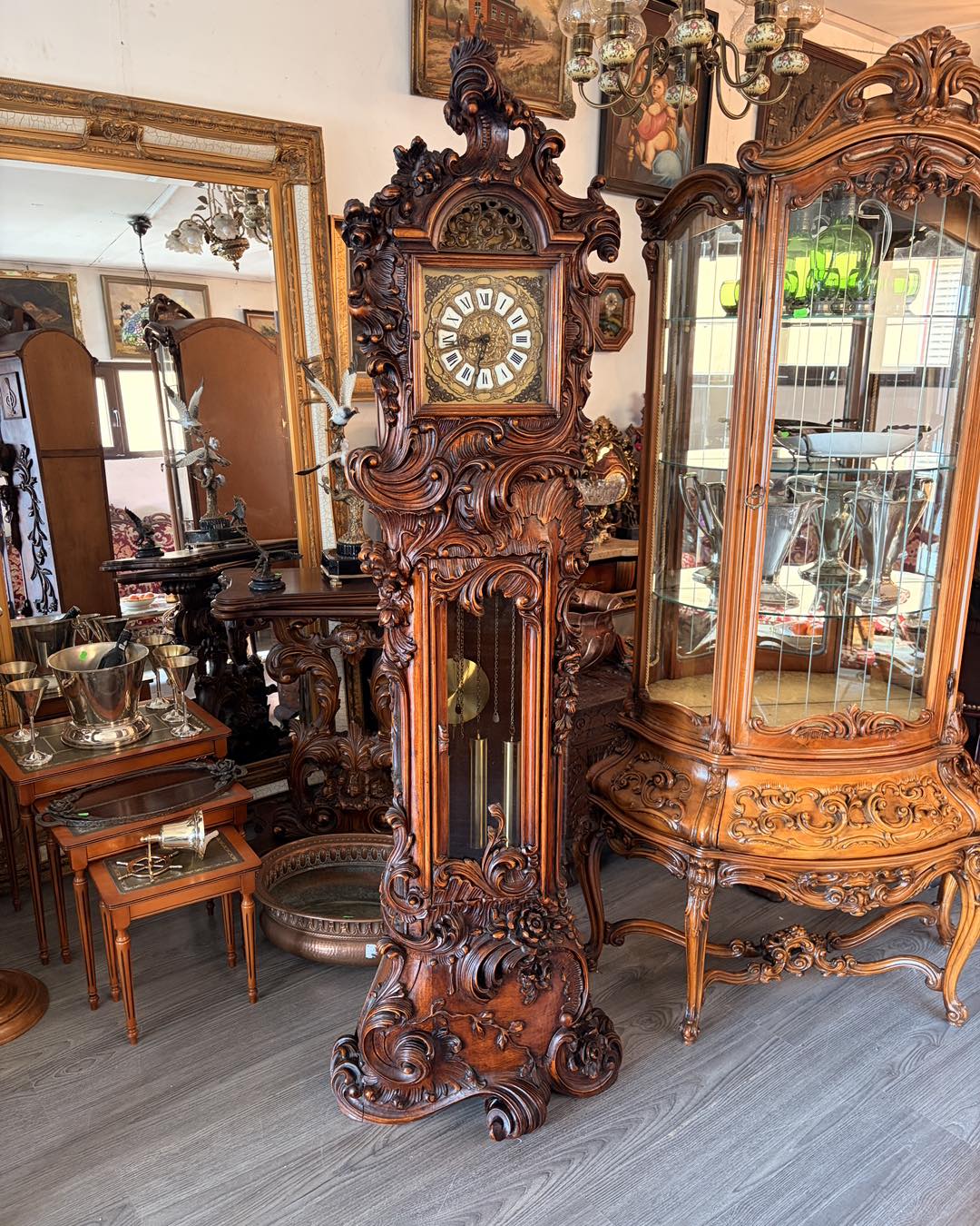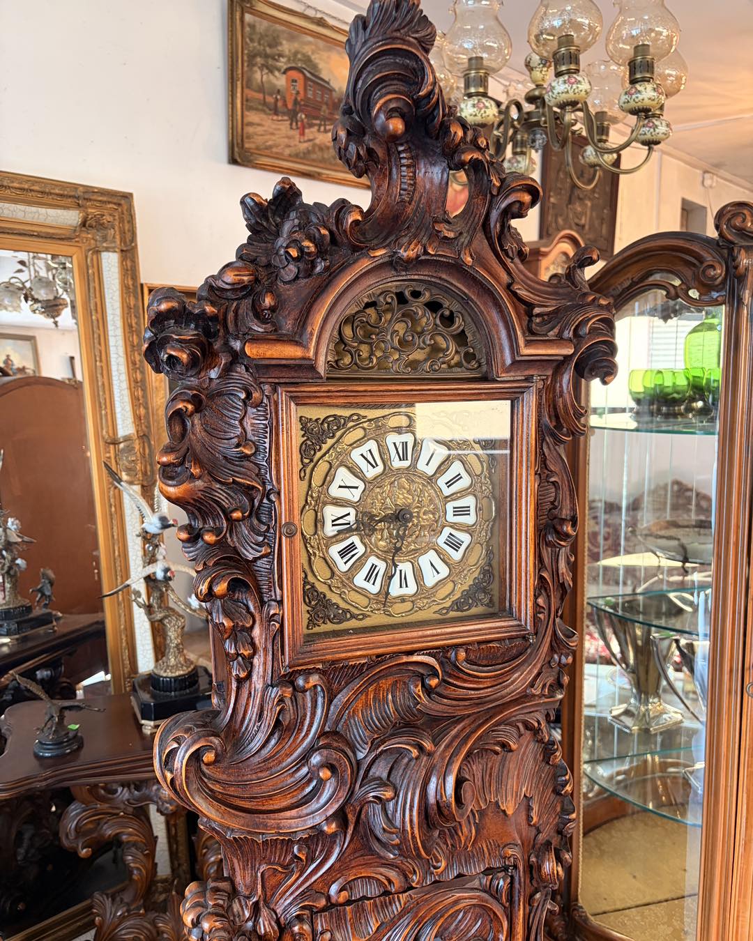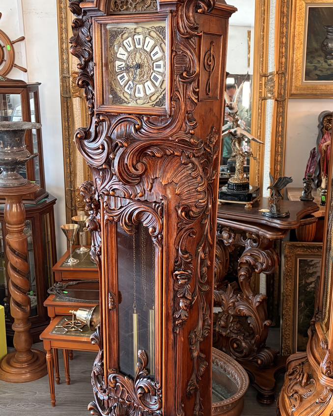 Ceas de podea sculptura deosebită cu amorasi,mecanism westminster (bate ora fixa jumătatea și sfertul)în stare de funcționare.