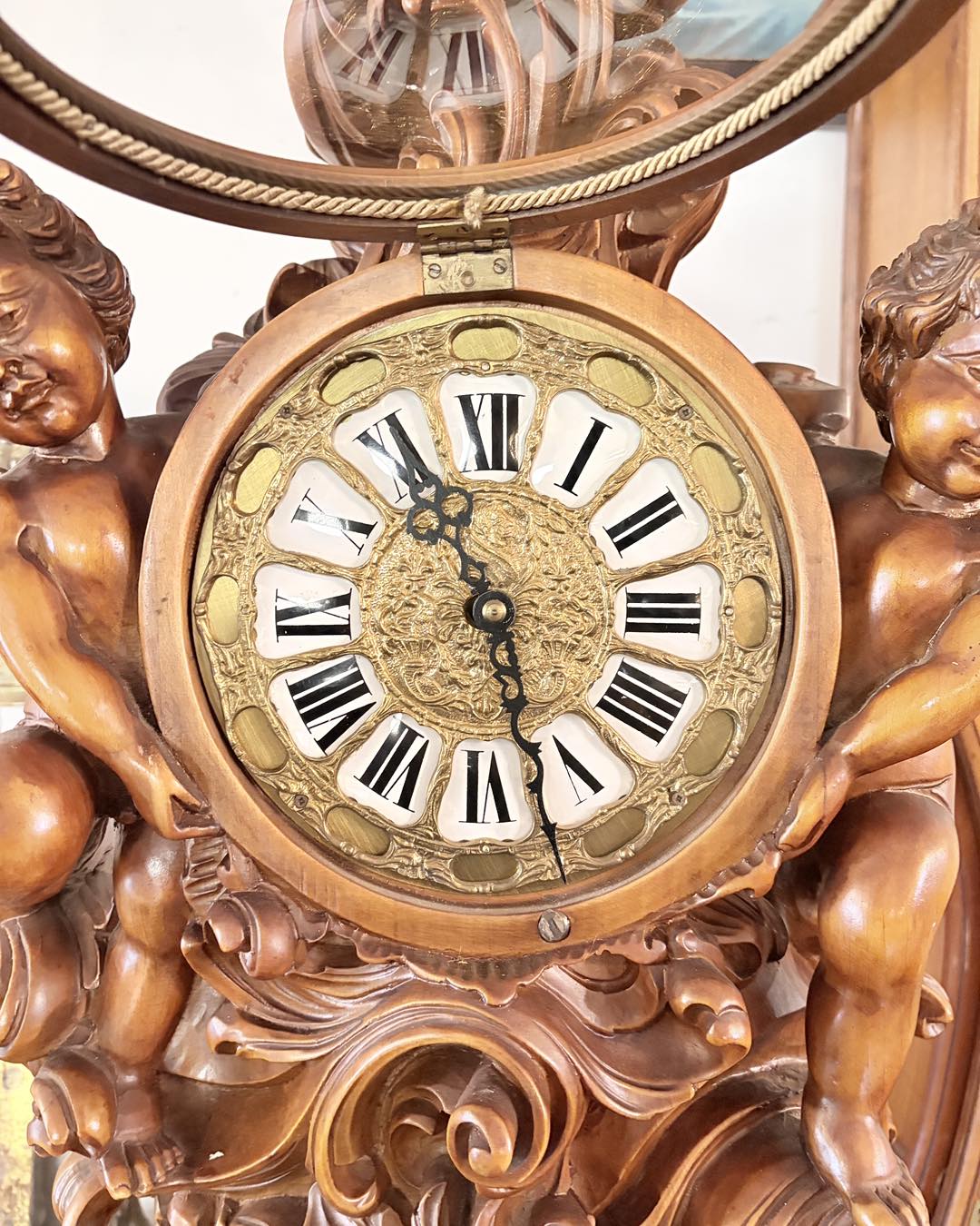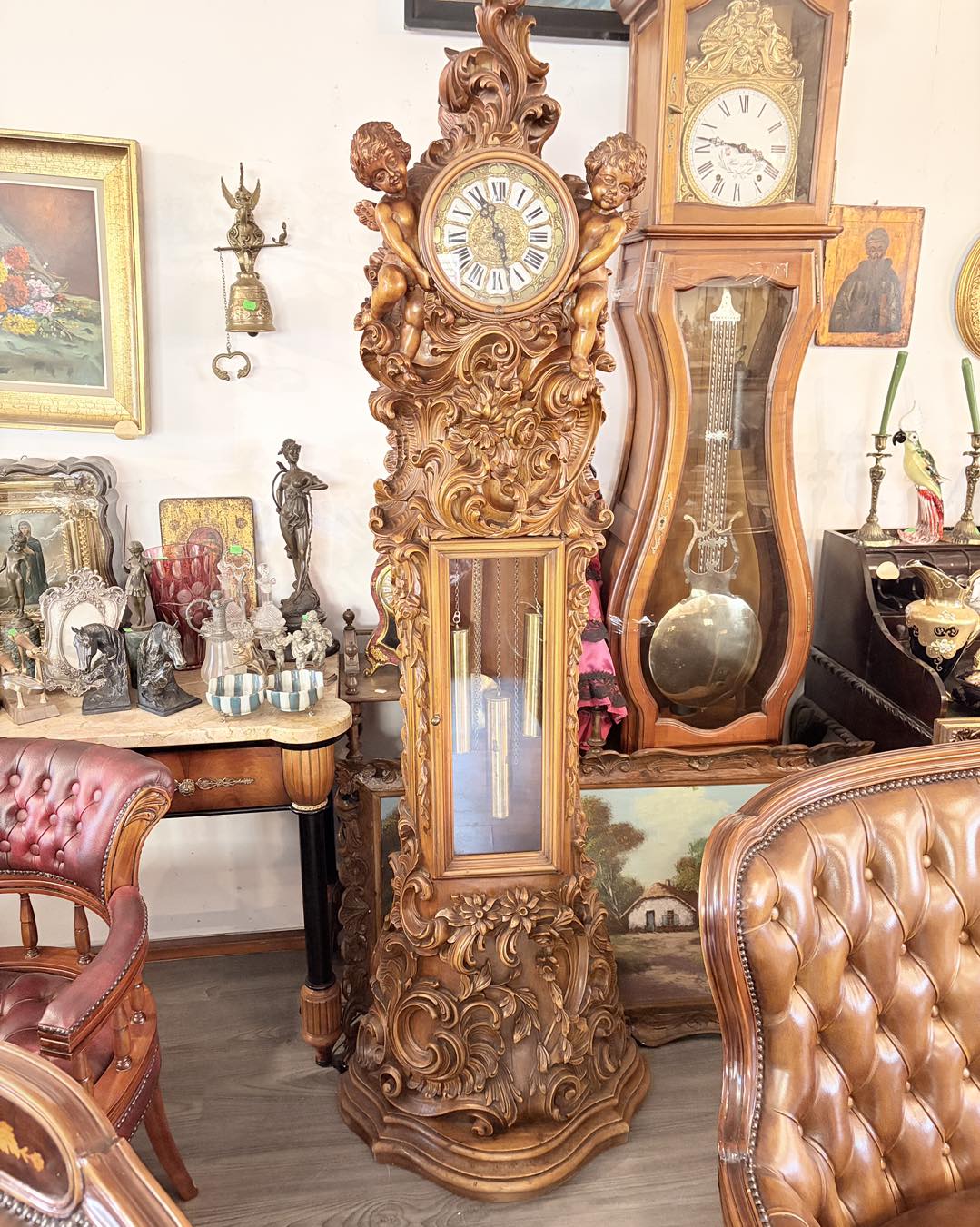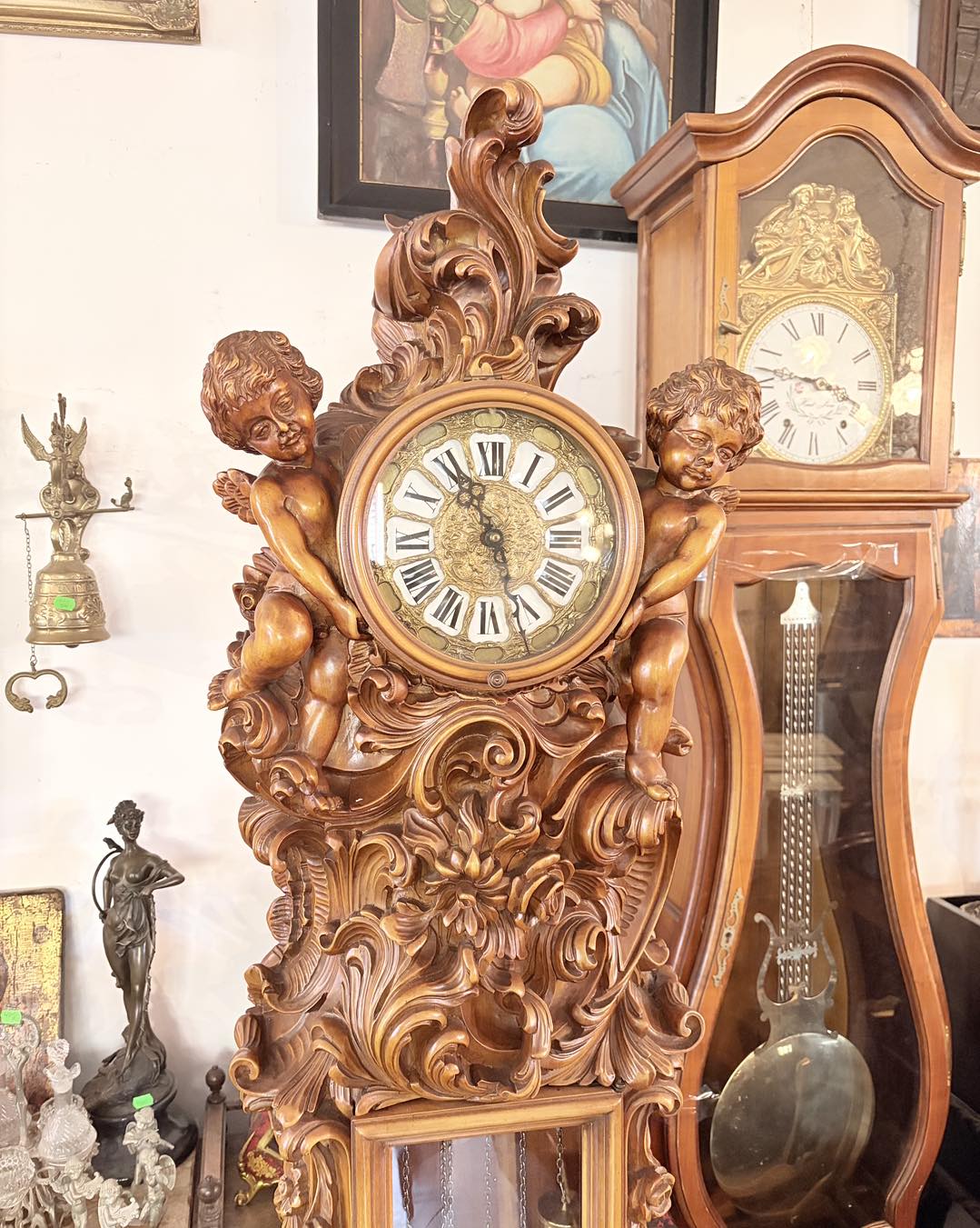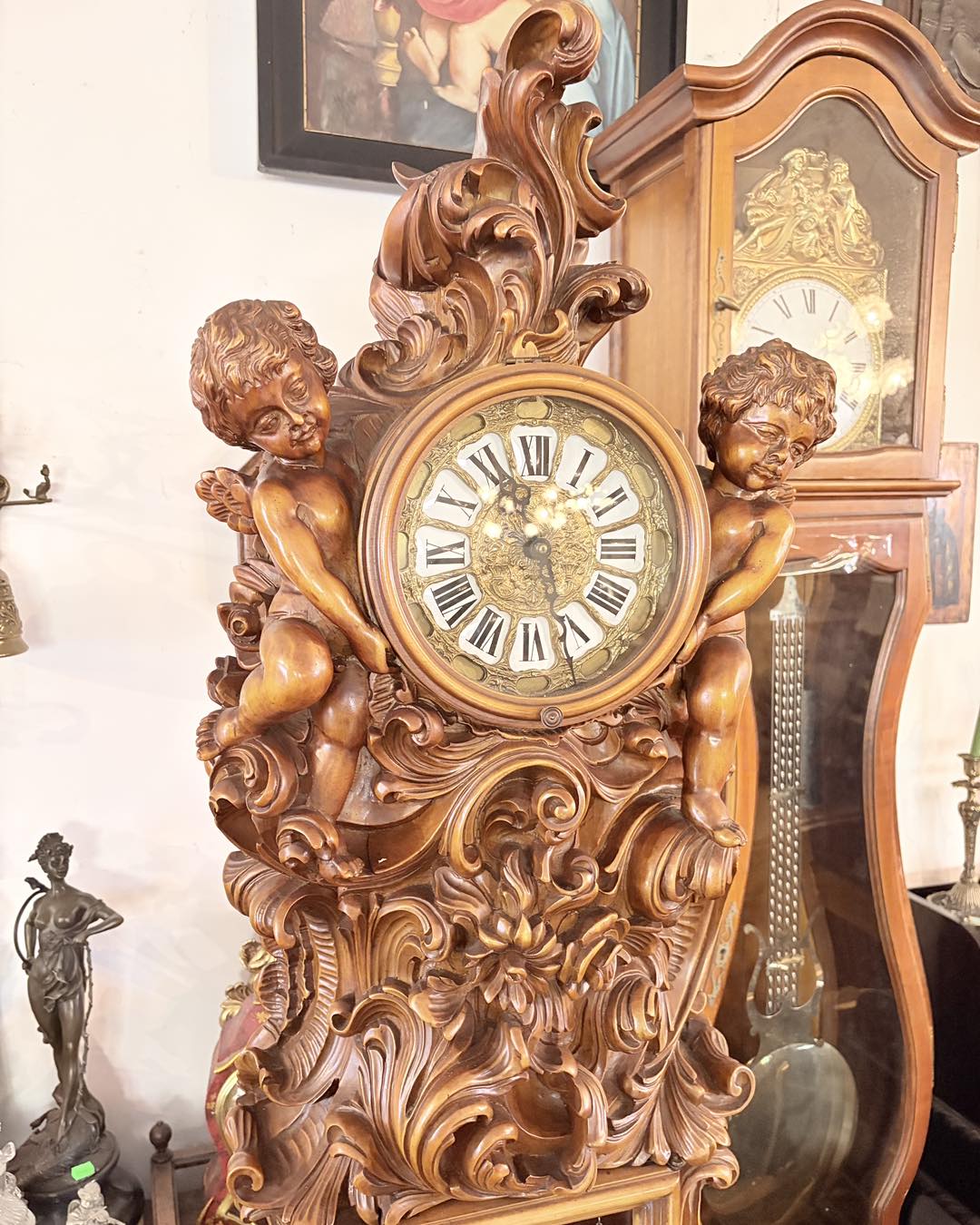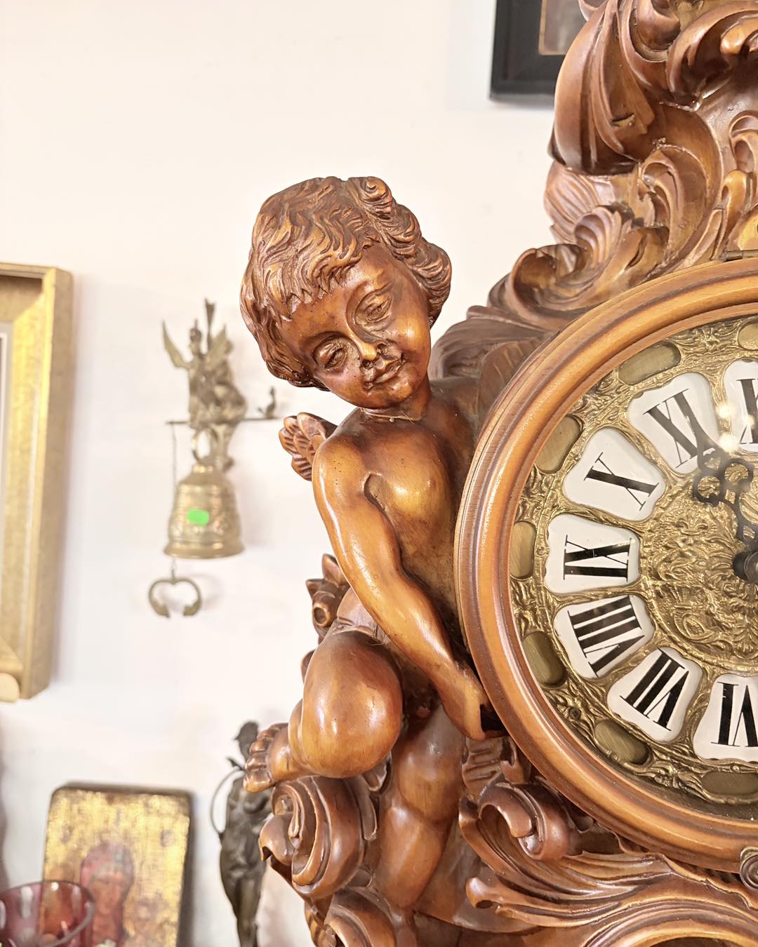 Ceas de podea sculptura deosebită cu amorasi,mecanism westminster (bate ora fixa jumătatea și sfertul)în stare de funcționare.