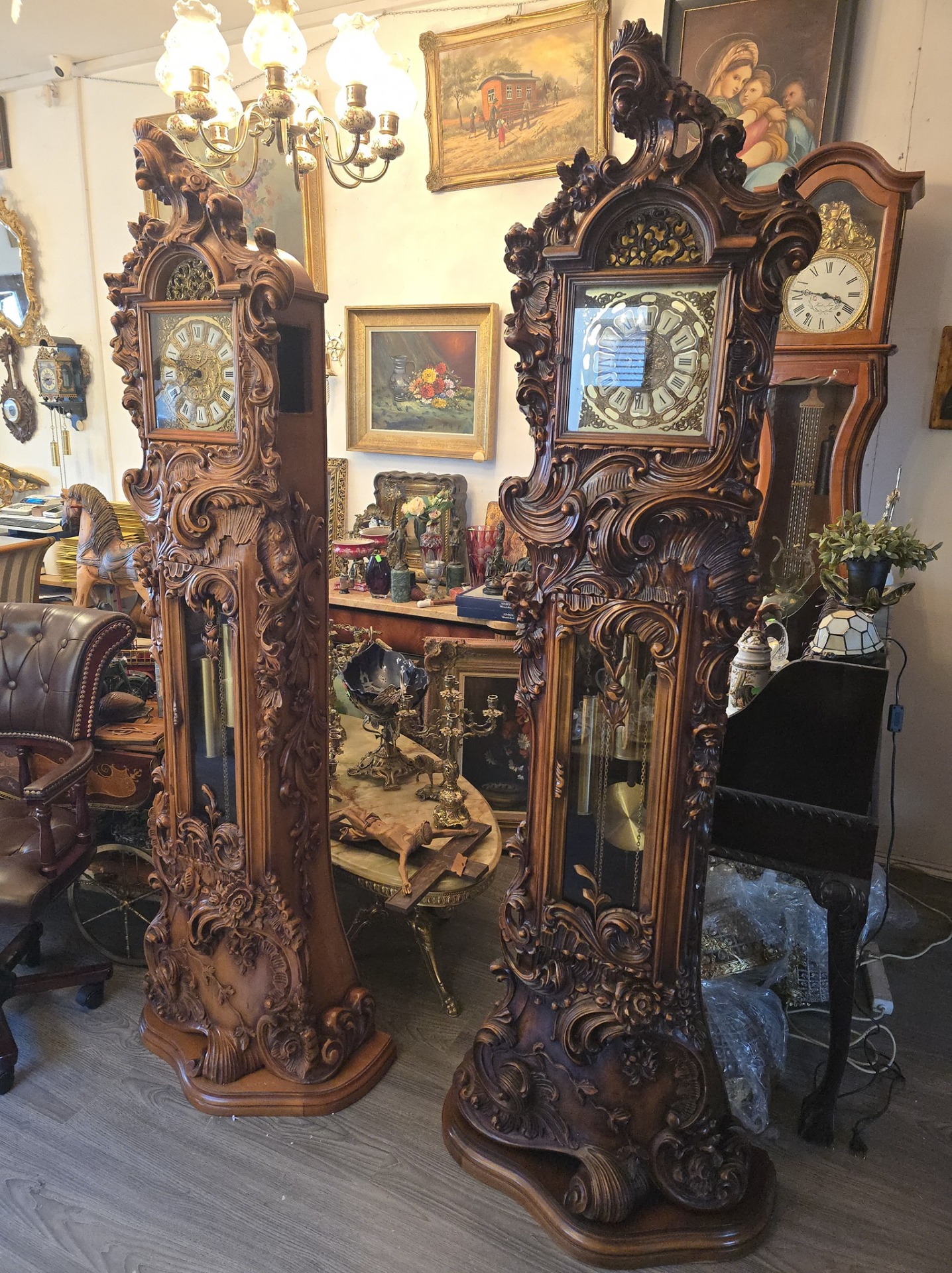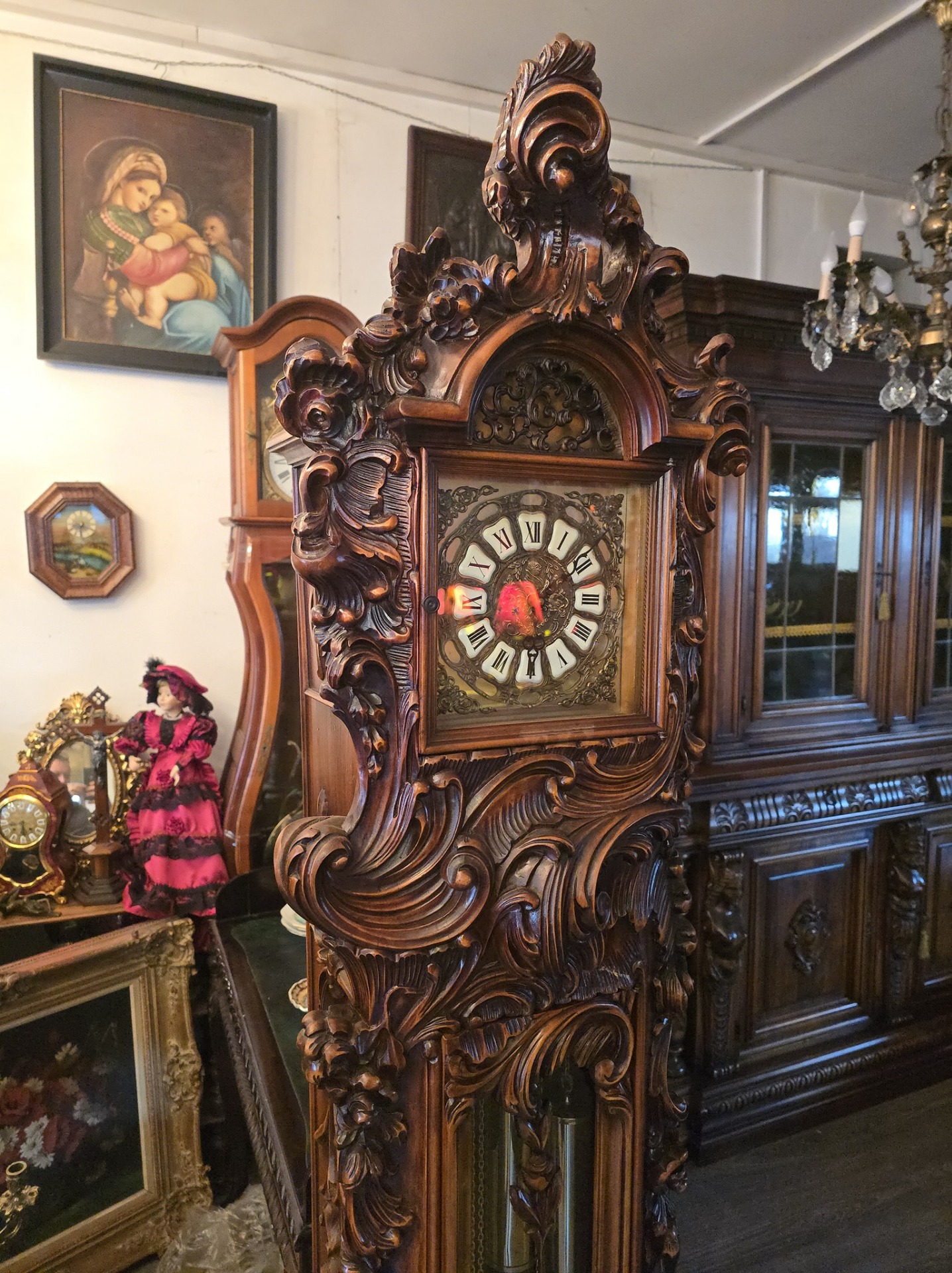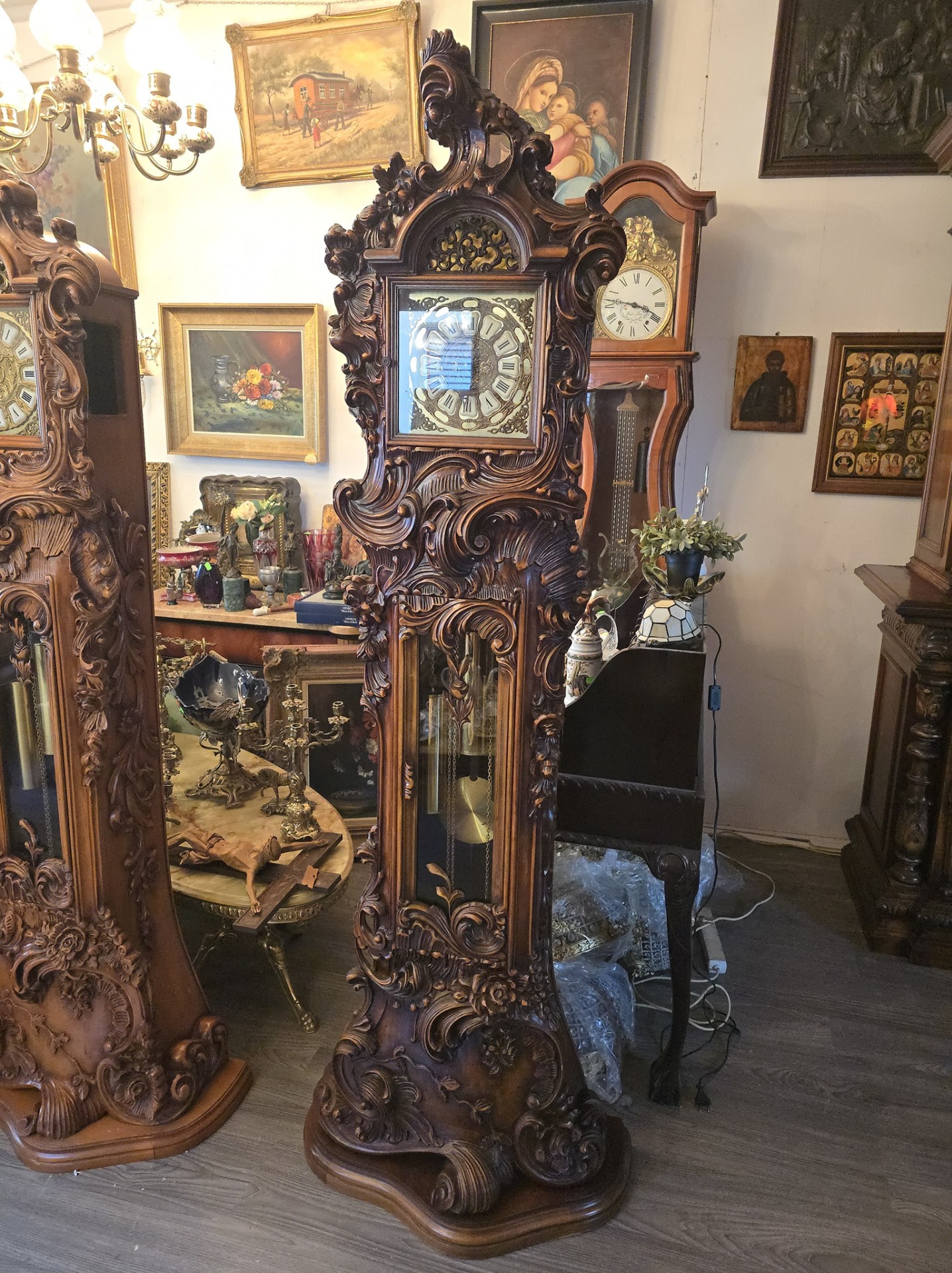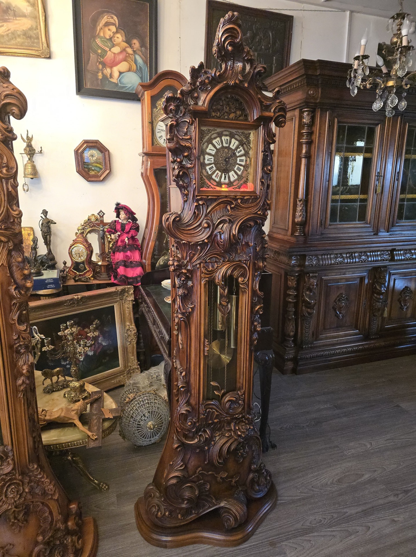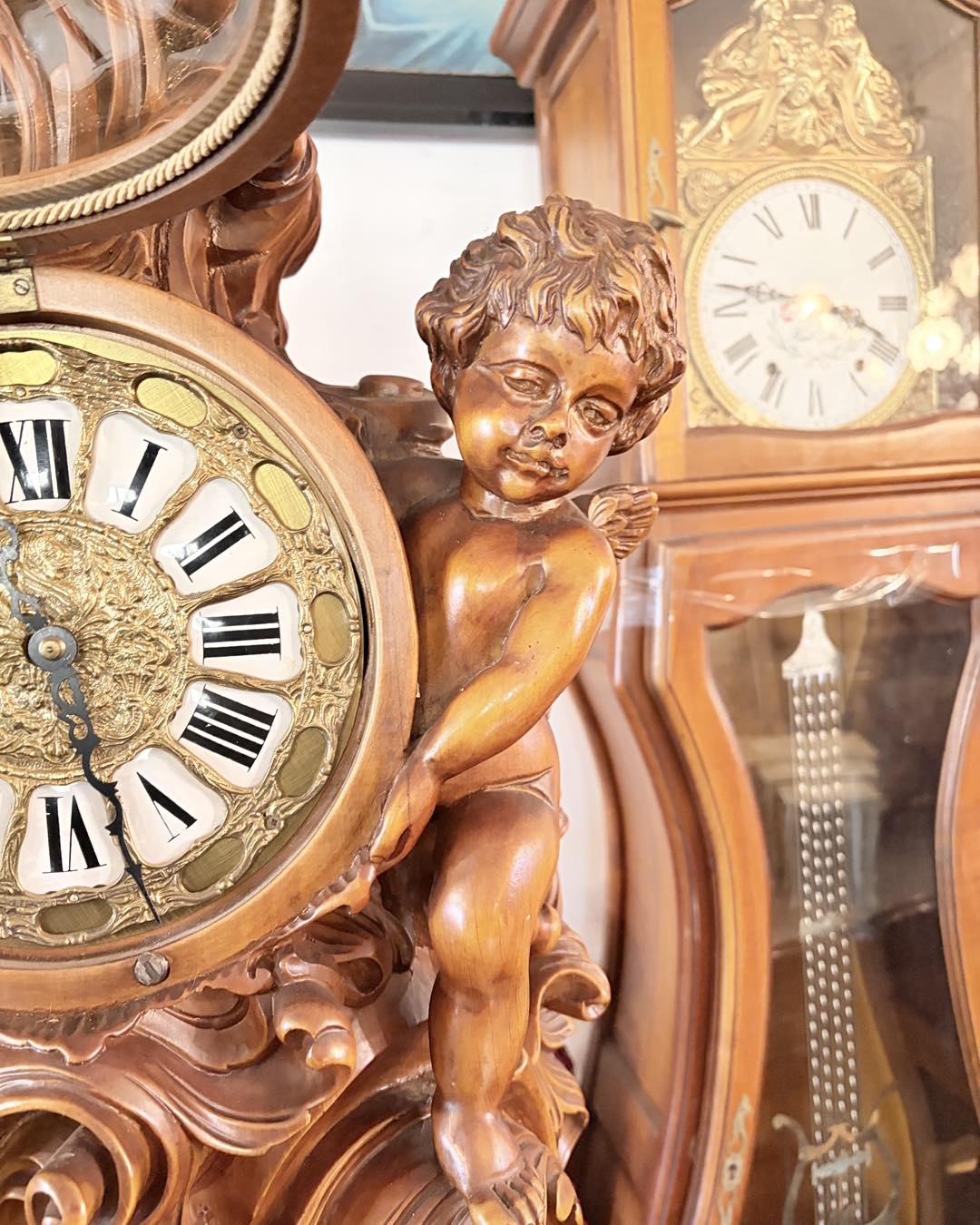 Ceas de podea sculptura deosebită cu amorasi,mecanism westminster (bate ora fixa jumătatea și sfertul)în stare de funcționare.