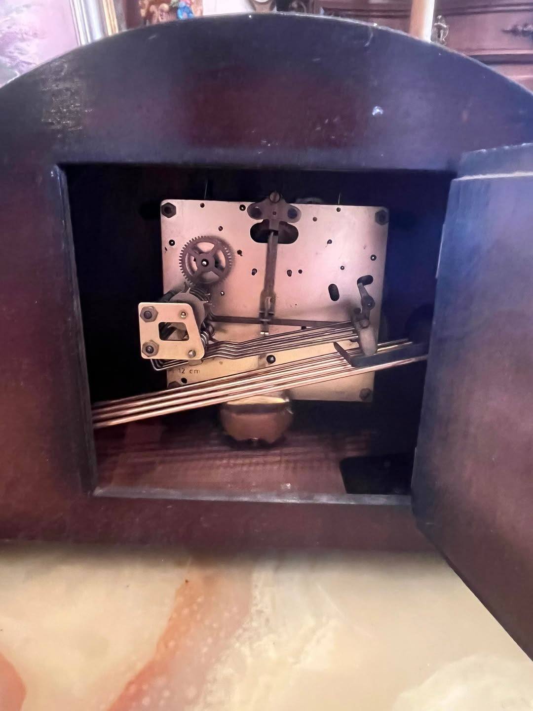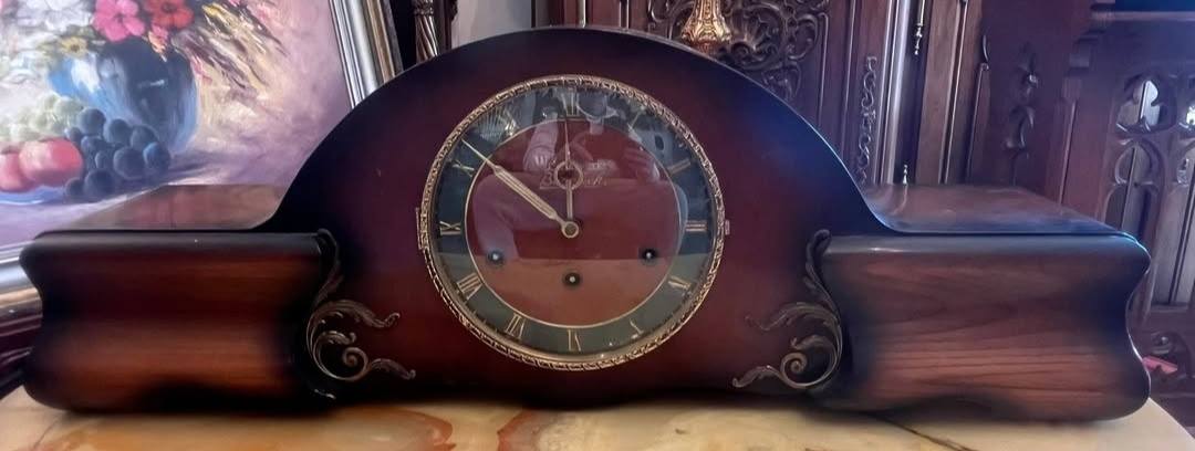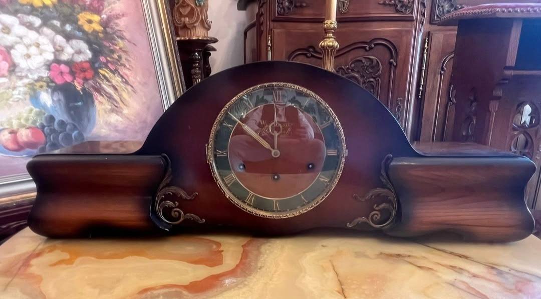 Ceas de șemineu elegant, model vintage Westminster, cu mecanism mecanic original și bătaie melodică.