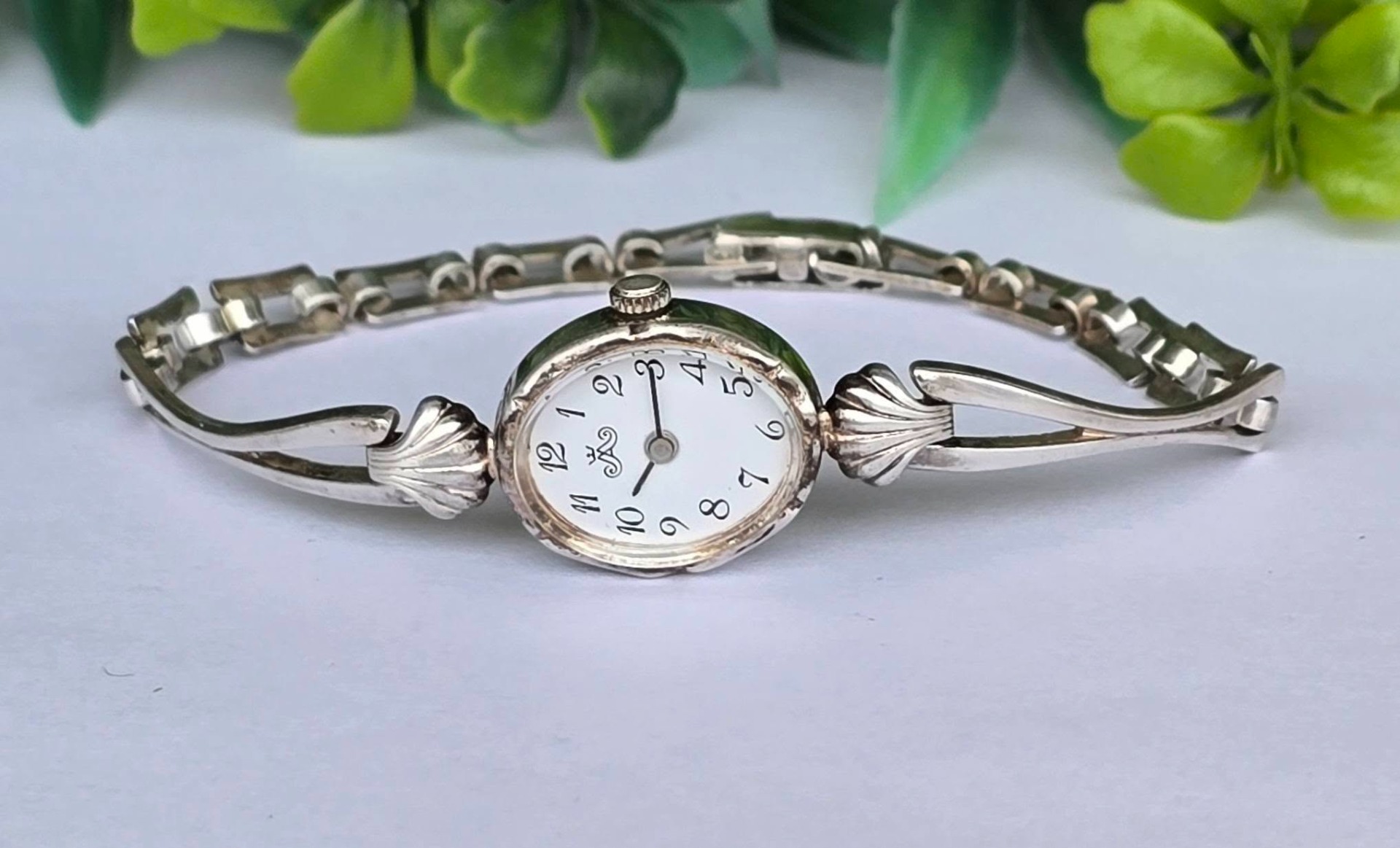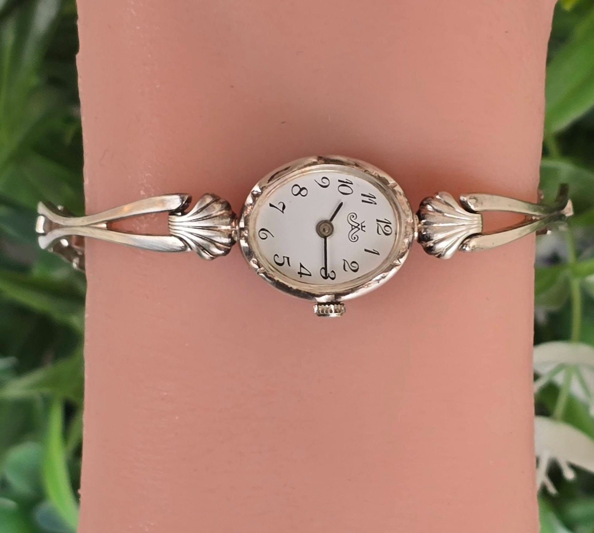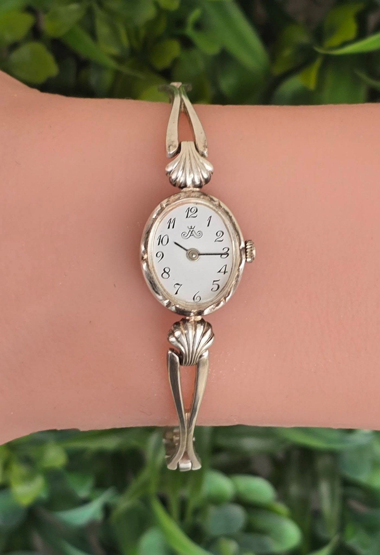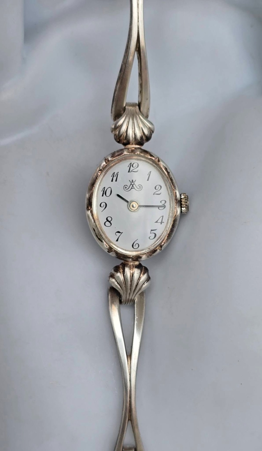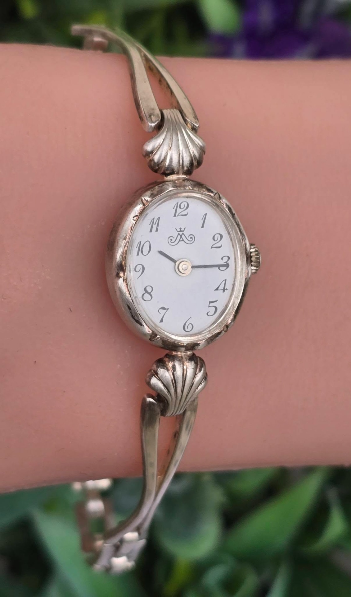 Ceas Meister Anker vechi, din argint, cu mecanism quartz în stare de funcționare și brățară din argint (anii 1980, Germania).